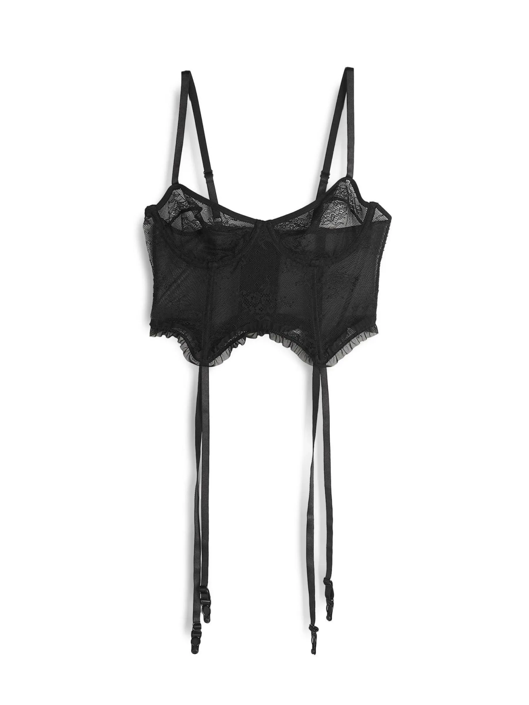 Kolor: czarnyKrój: podstawowyTyp: gorsetPattern style: pojedynczy kolorDetal: z kośćmi, z falbaną, nieusztywnianeMat…