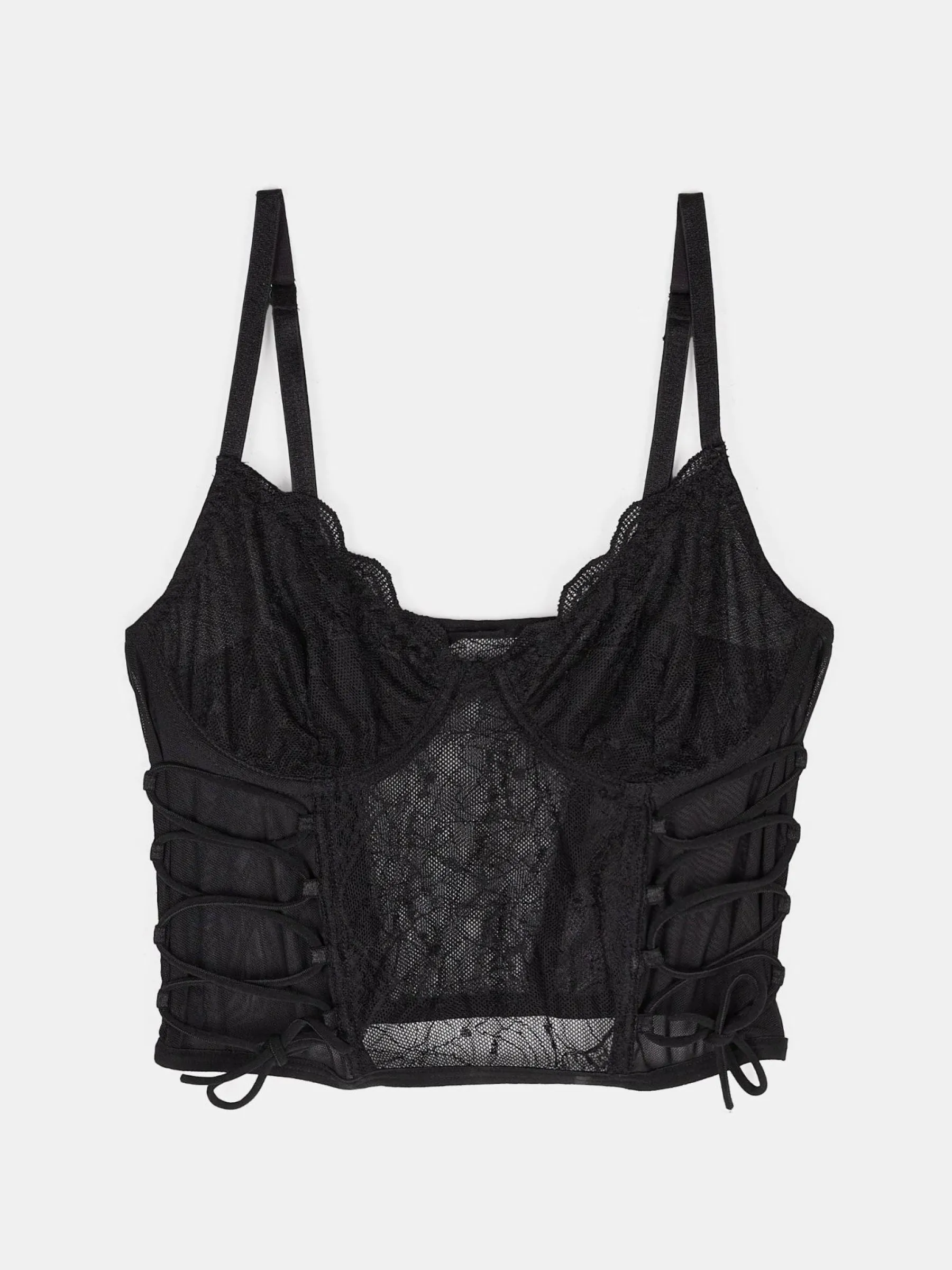 Kolor: czarnyKrój: podstawowyTyp: gorsetPattern style: pojedynczy kolorDetal: z kośćmi, wzmocnionyMateriał: koronkow…