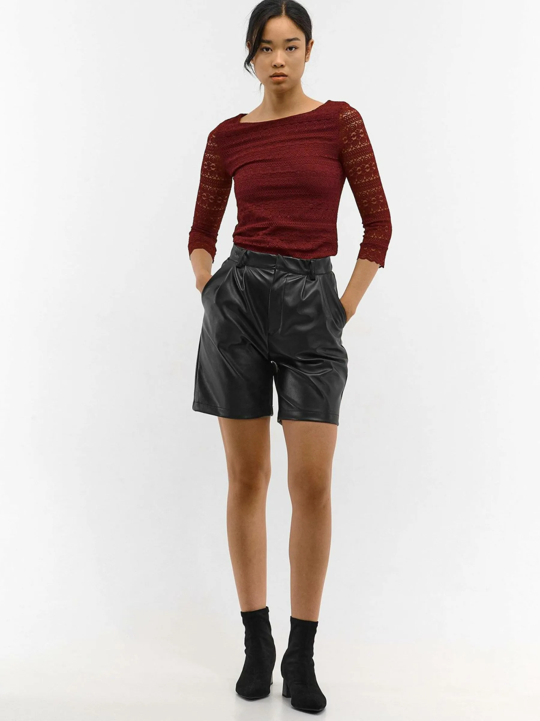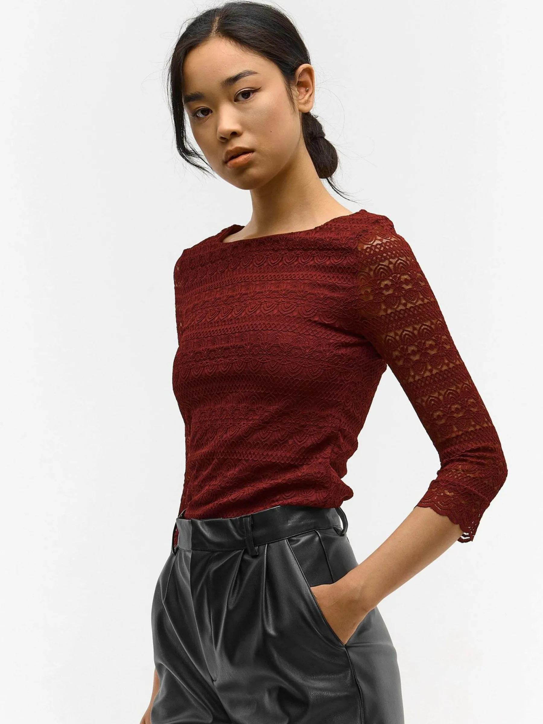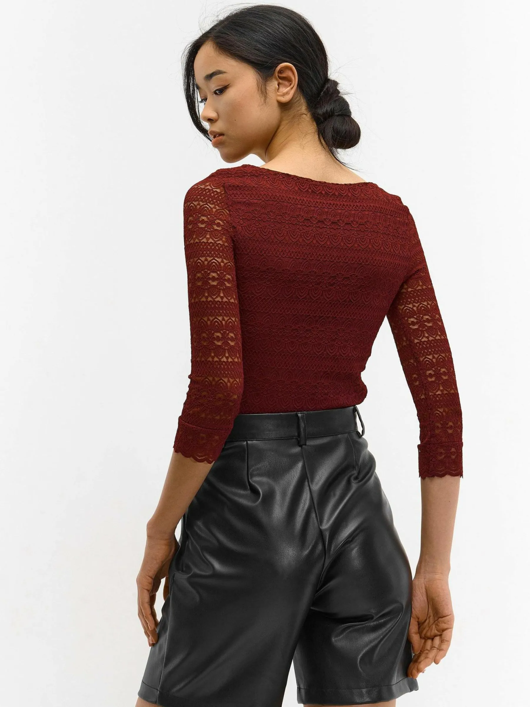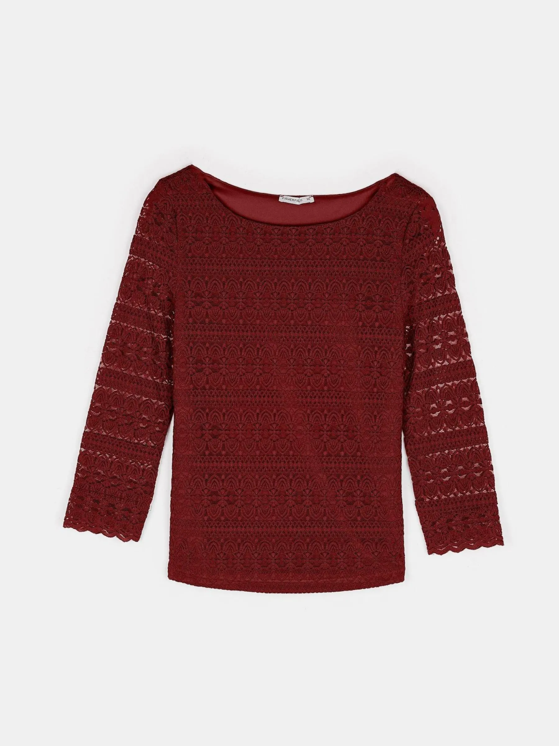 Kolor: burgundyKrój: regularTyp: topRekaw: rękaw 3/4Długość: krótkiPattern style: pojedynczy kolorDetal: nad głow…