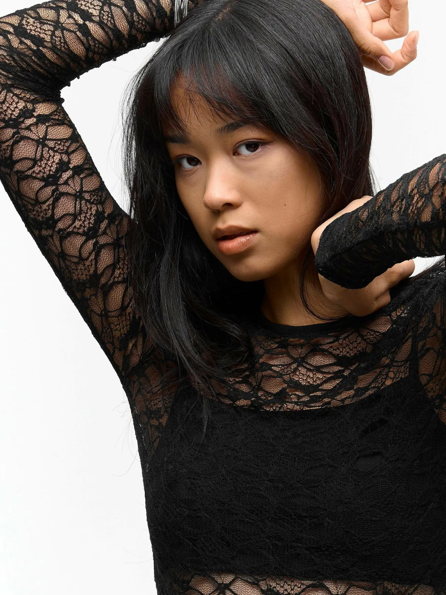 Kolor: czarnyKrój: regularTyp: topRekaw: długi rękawDługość: krótkiPattern style: pojedynczy kolorDetal: nad gło…