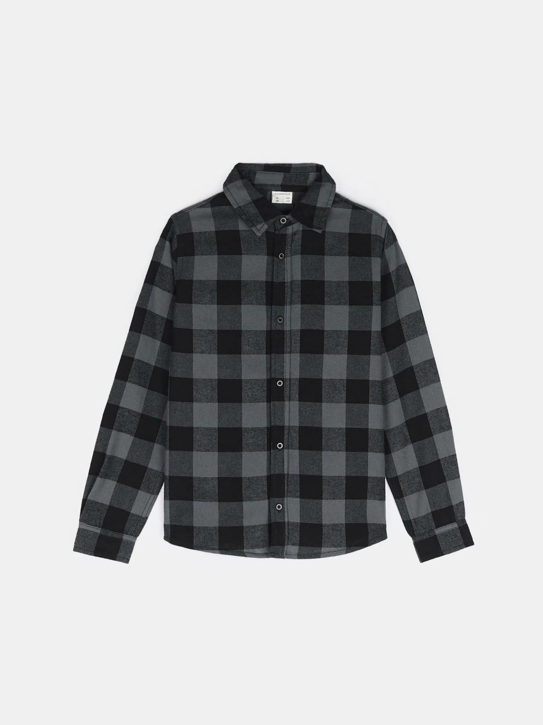Kolor: szaryKrój: podstawowyTyp: koszulaRekaw: długi rękawDługość: krótkiPattern style: w krateDetal: na guzikiMa…