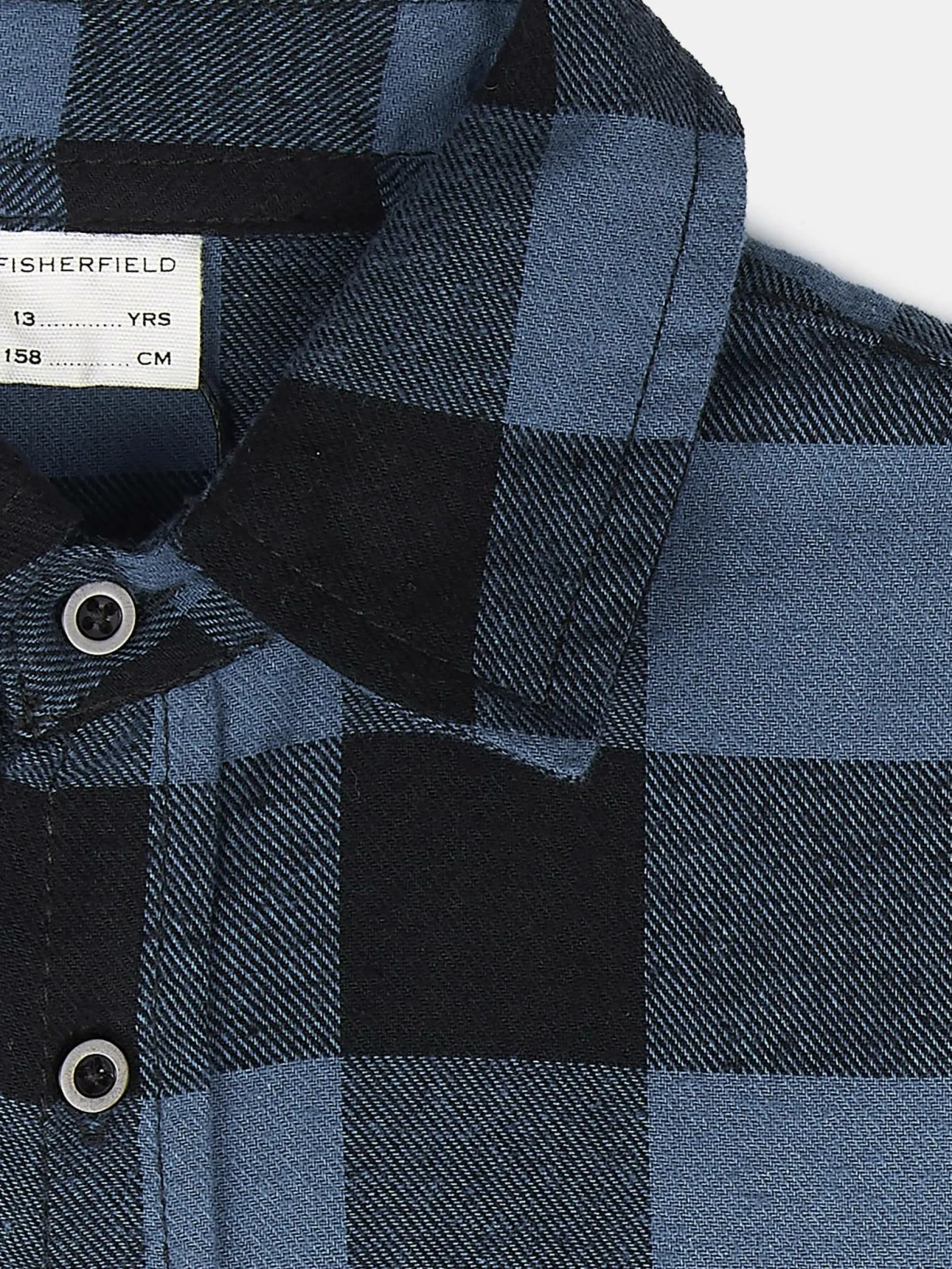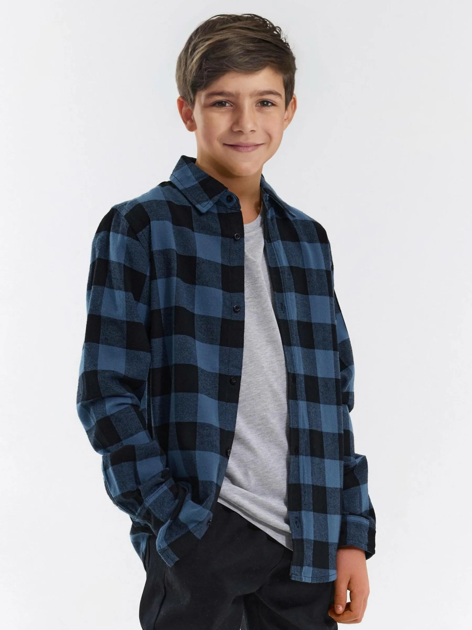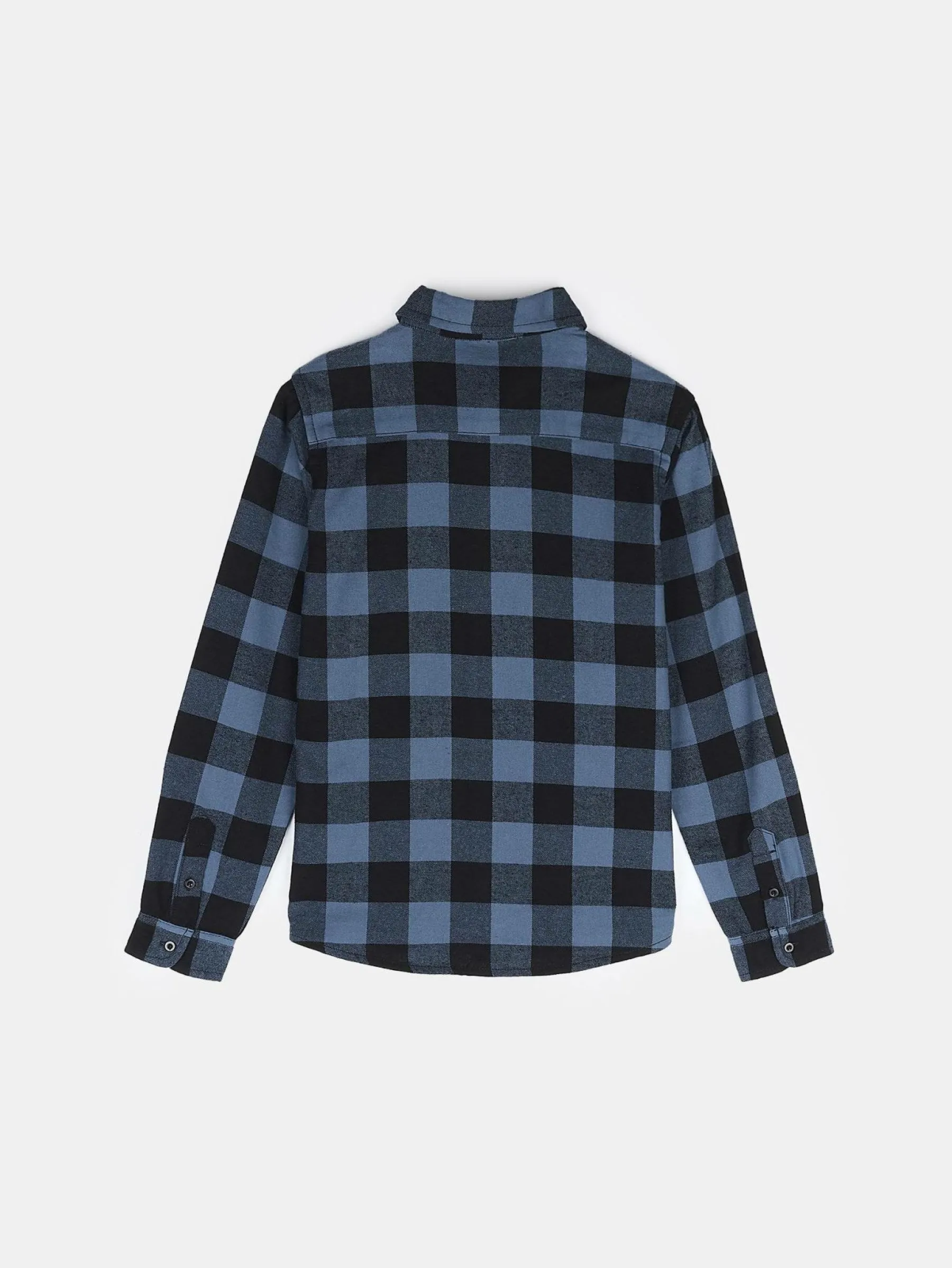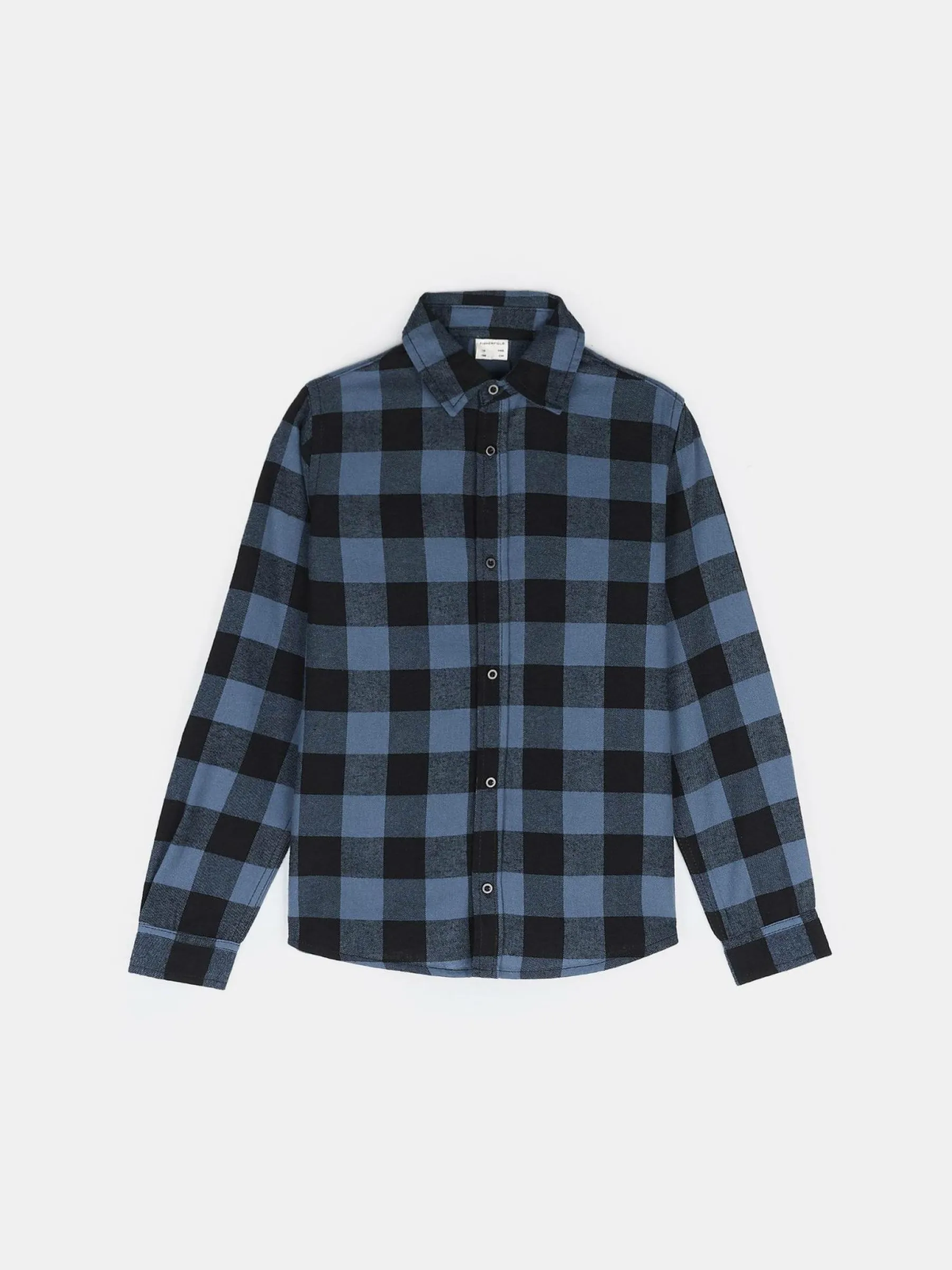 Kolor: niebieskiKrój: podstawowyTyp: koszulaRekaw: długi rękawDługość: krótkiPattern style: w krateDetal: na guzi…