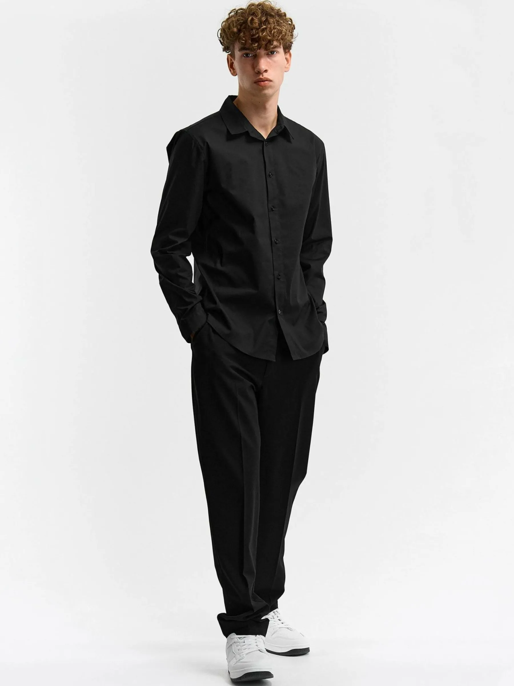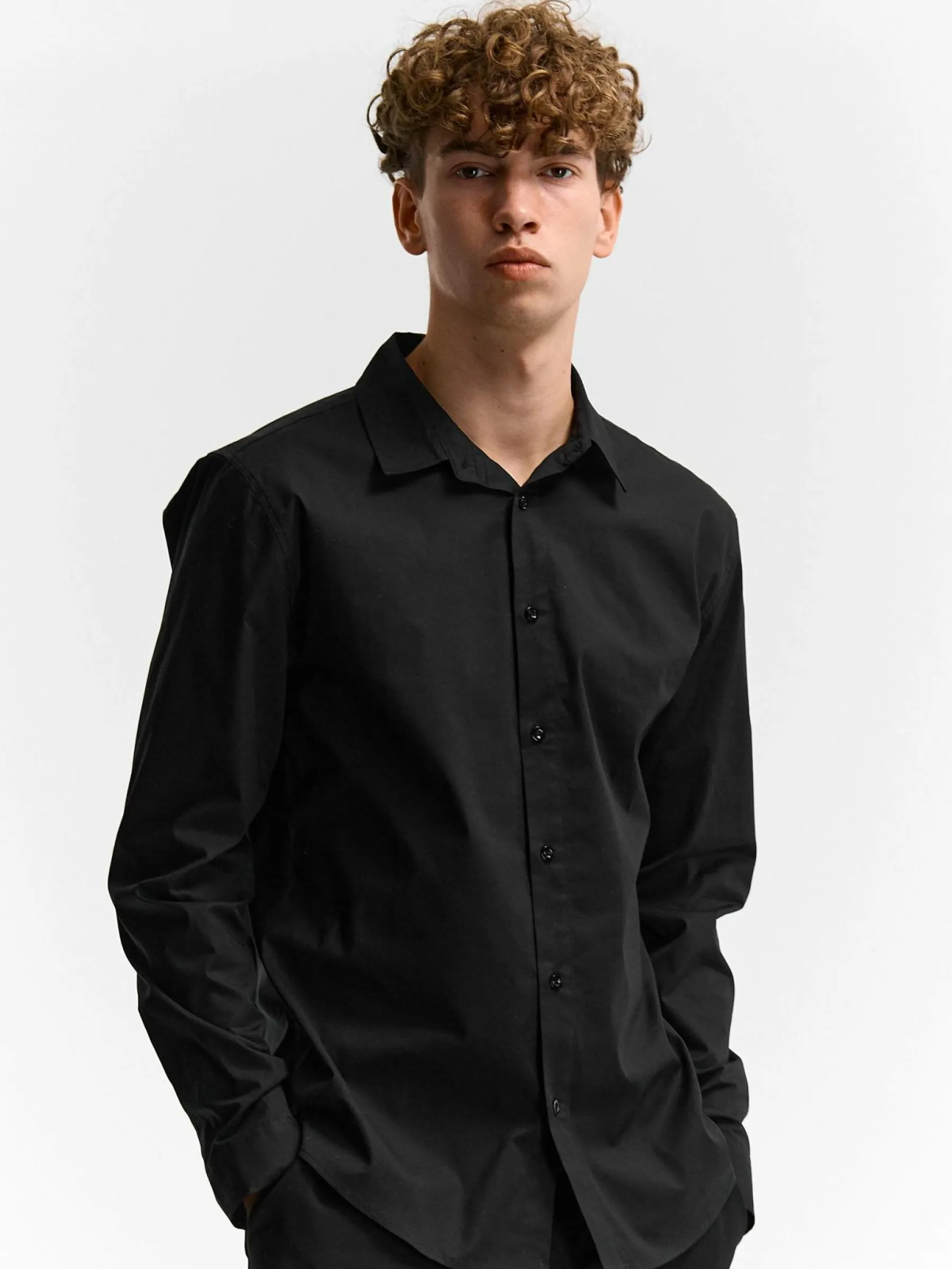 Kolor: czarnyKrój: podstawowyTyp: koszulaRekaw: długi rękawPattern style: pojedynczy kolorDetal: na guzikiMateriał: …
