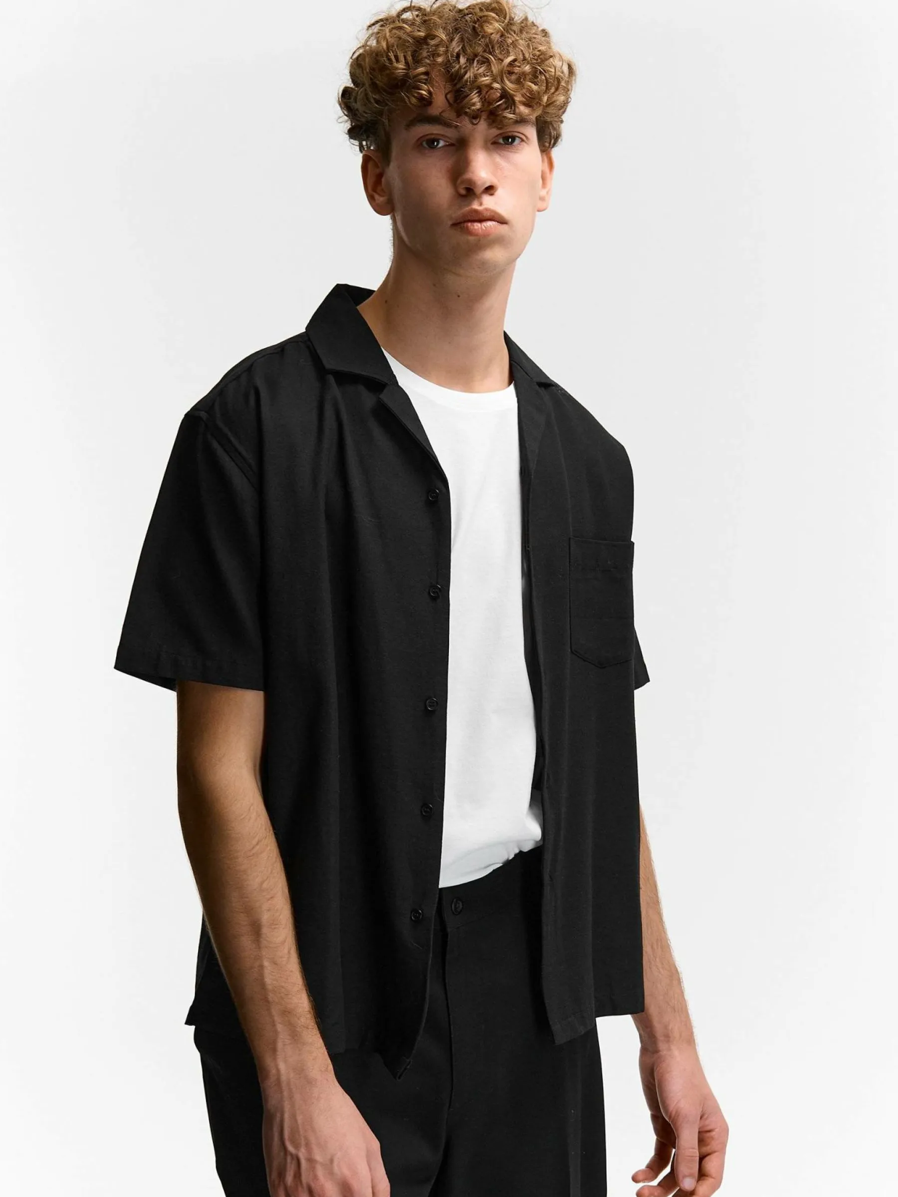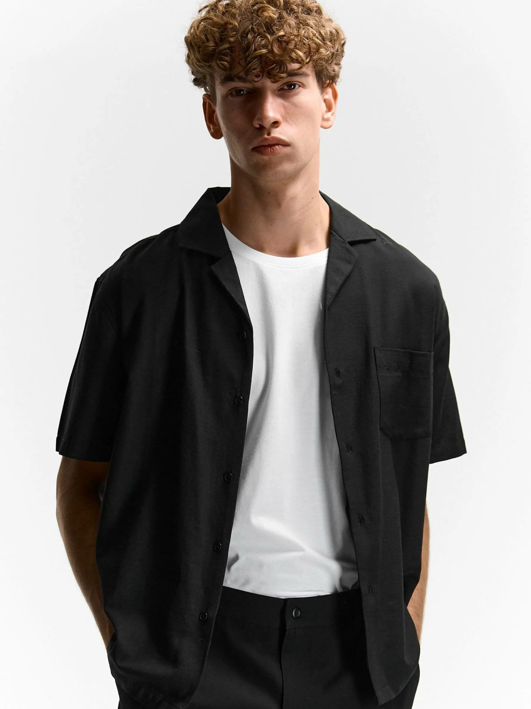 Kolor: czarnyKrój: regularTyp: koszulaRekaw: krótki rękawPattern style: pojedynczy kolorDetal: z kieszenią na piersi…