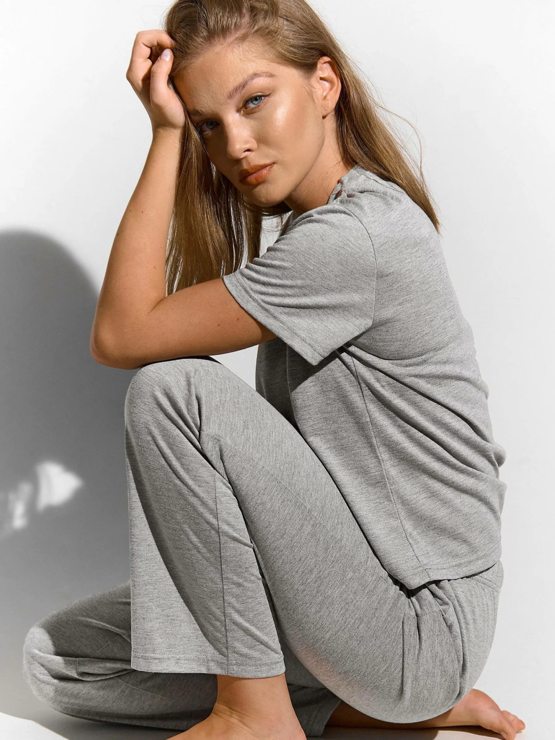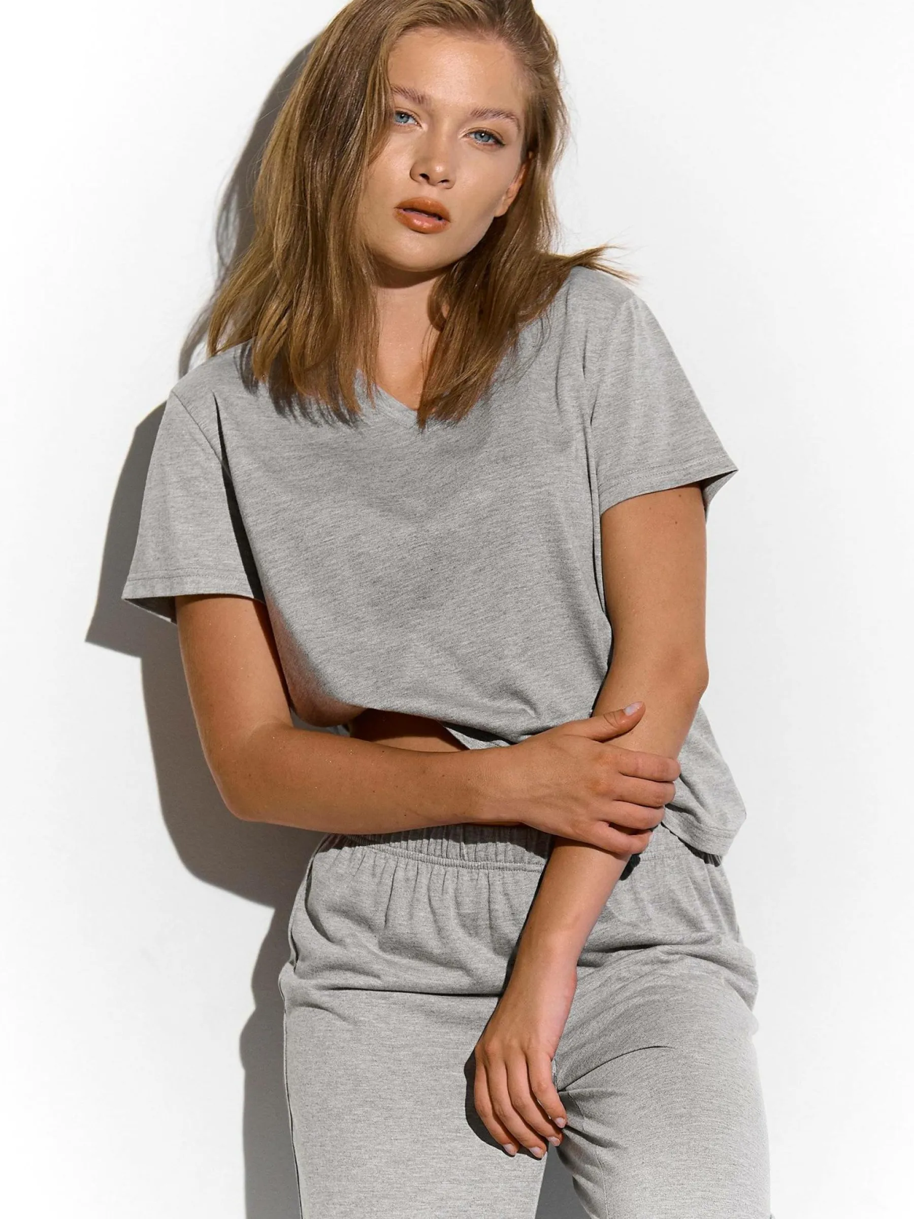 Kolor: szaryKrój: podstawowyTyp: piżamaRekaw: krótki rękawDługość: krótkiPattern style: pojedynczy kolorDetal: v…