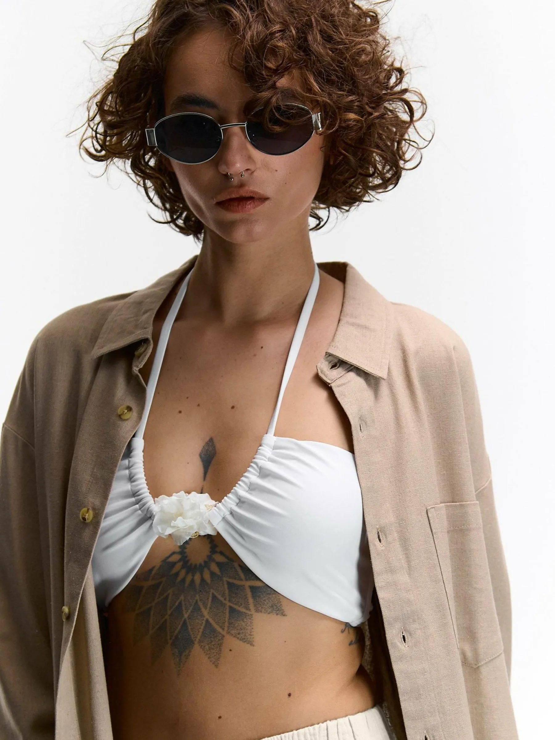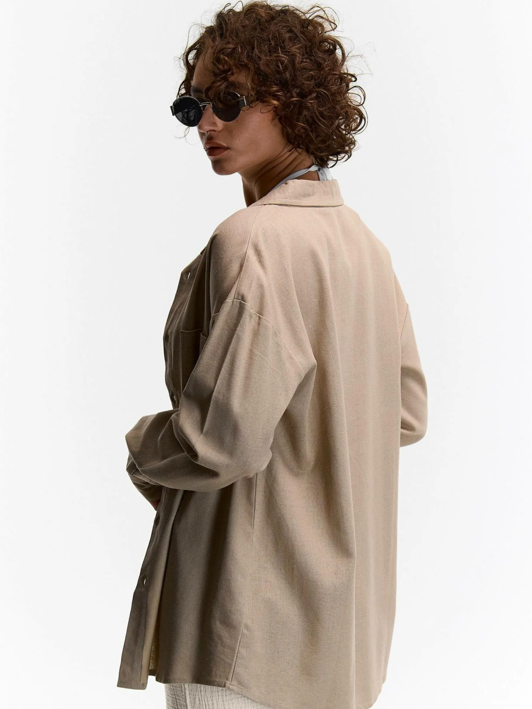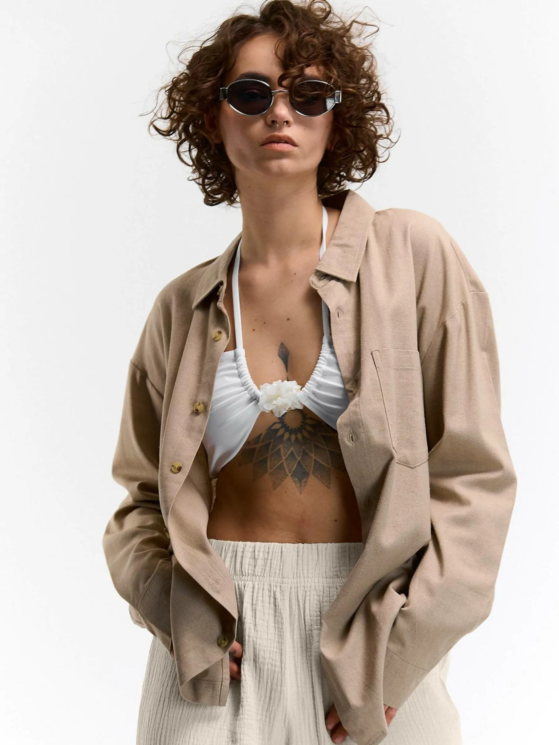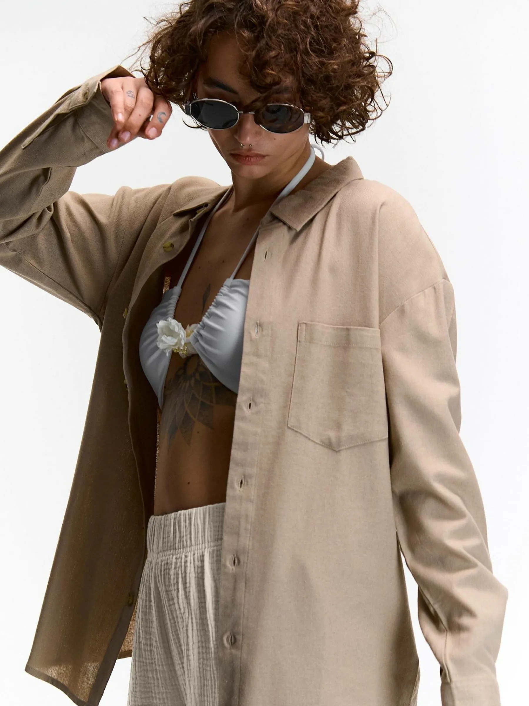 Kolor: beżowyKrój: regularTyp: bluzkaRekaw: długi rękawDługość: krótkiPattern style: pojedynczy kolorDetal: na g…