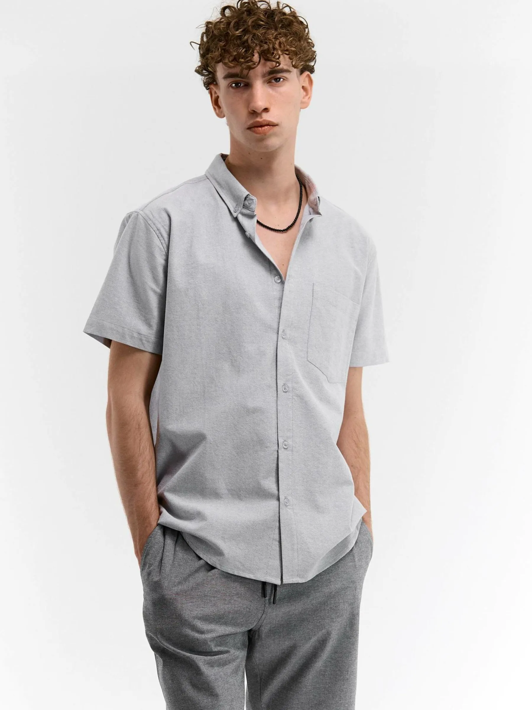 Kolor: szaryKrój: podstawowyTyp: koszulaRekaw: krótki rękawPattern style: pojedynczy kolorDetal: na guziki, z kieszen…