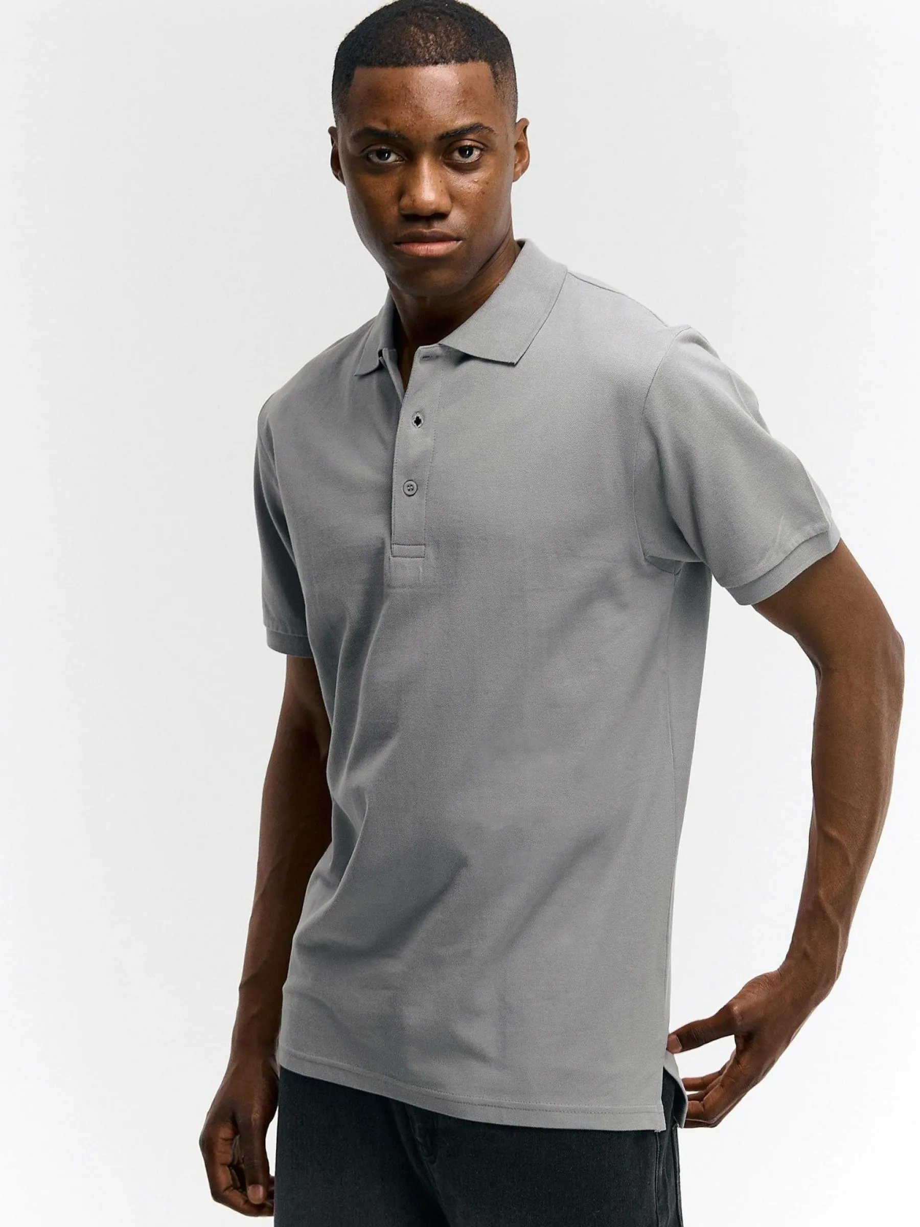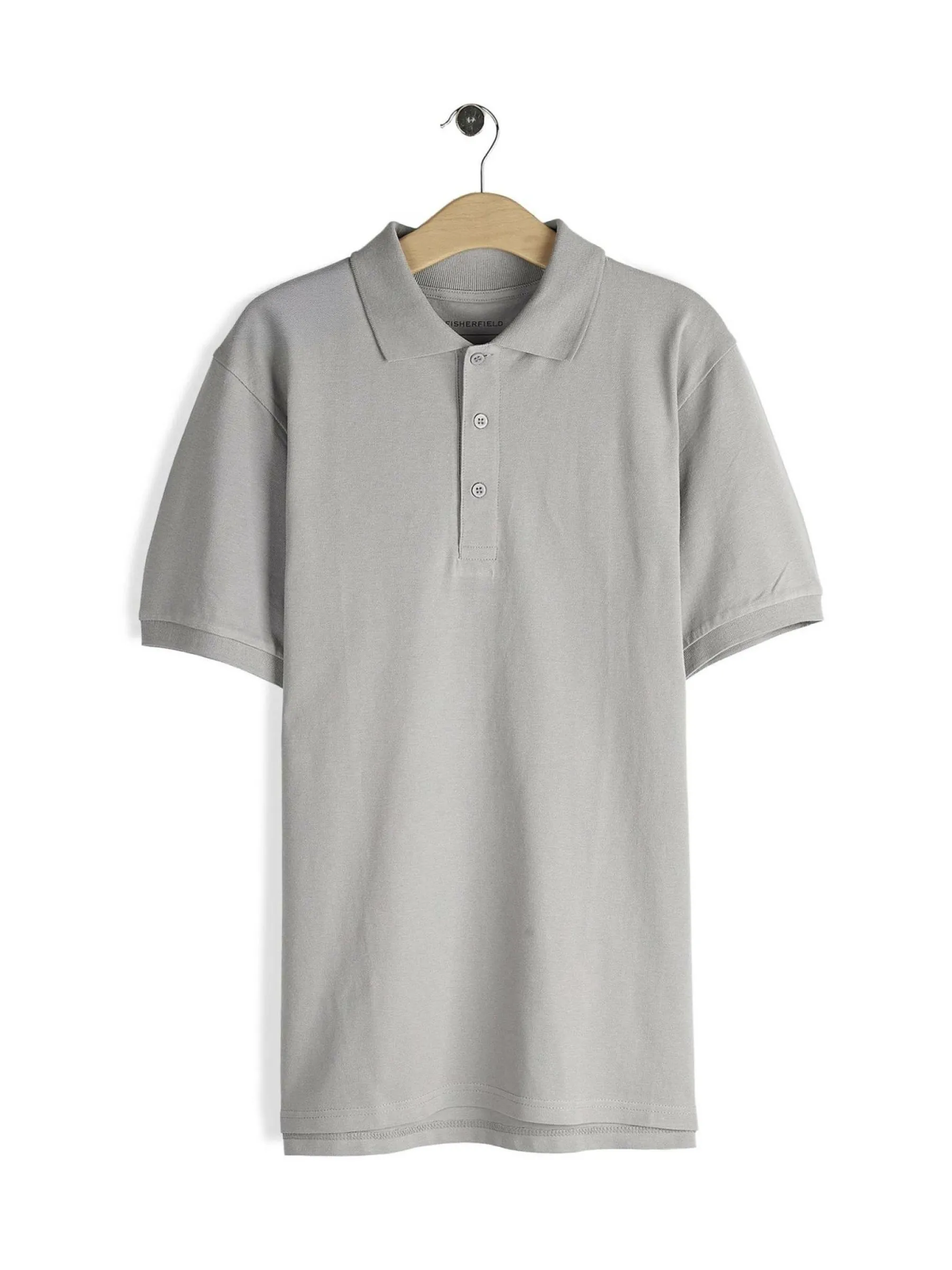 Kolor: szaryKrój: poloTyp: koszulkaRekaw: krótki rękawPattern style: pojedynczy kolorDetal: na guziki, nad głowąMat…
