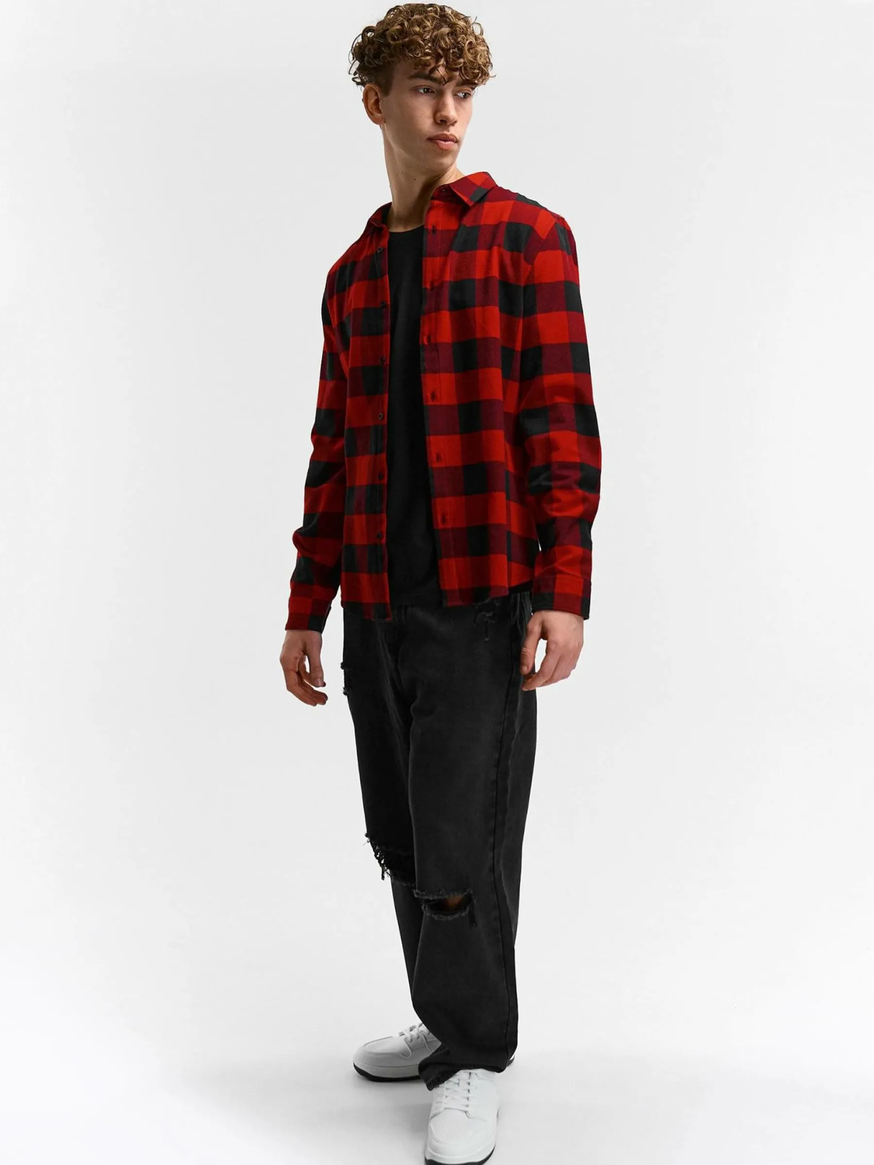 Kolor: czerwonyKrój: podstawowyTyp: koszulaRekaw: długi rękawPattern style: w krateDetal: na guzikiMateriał: bawełn…