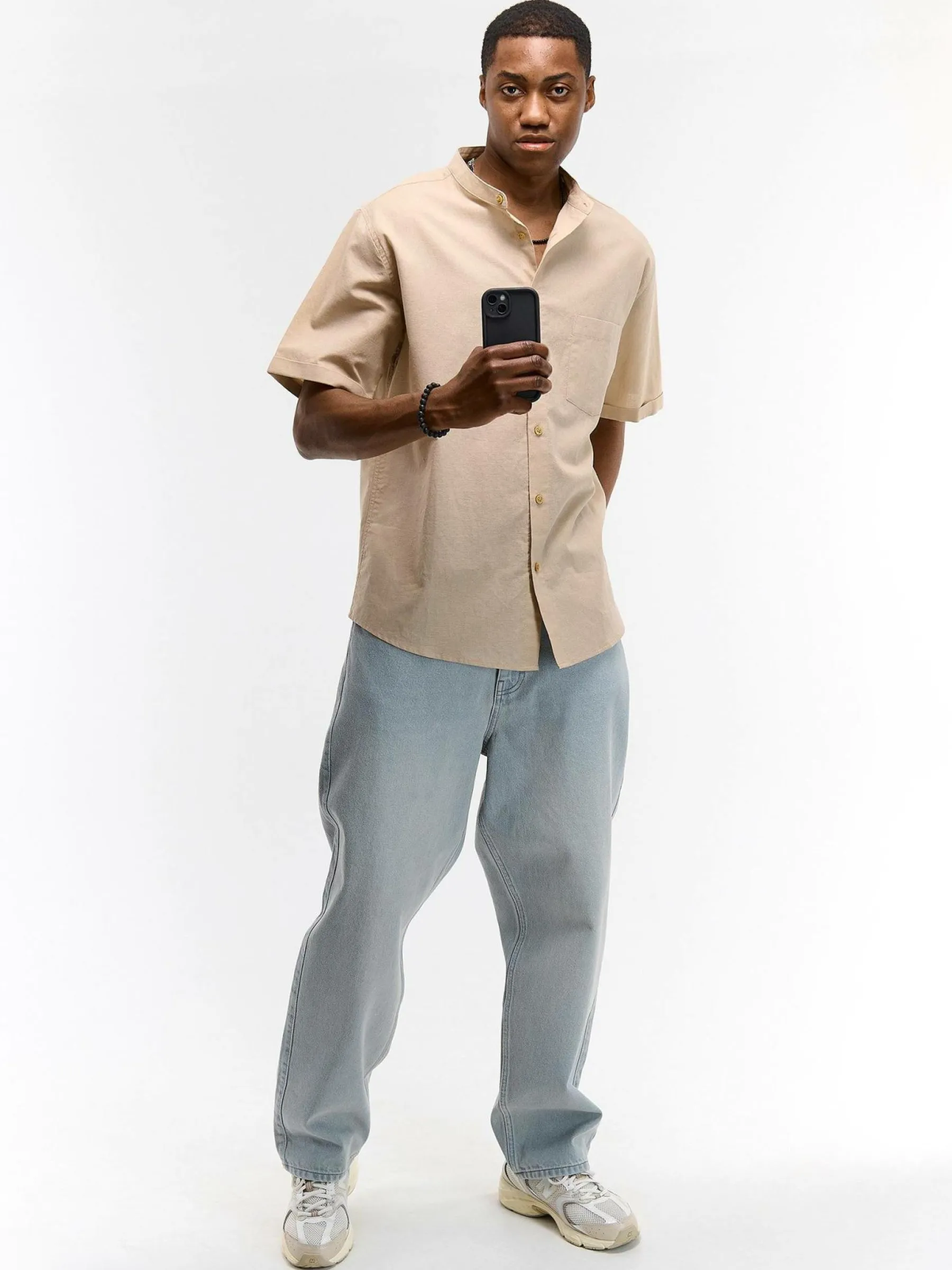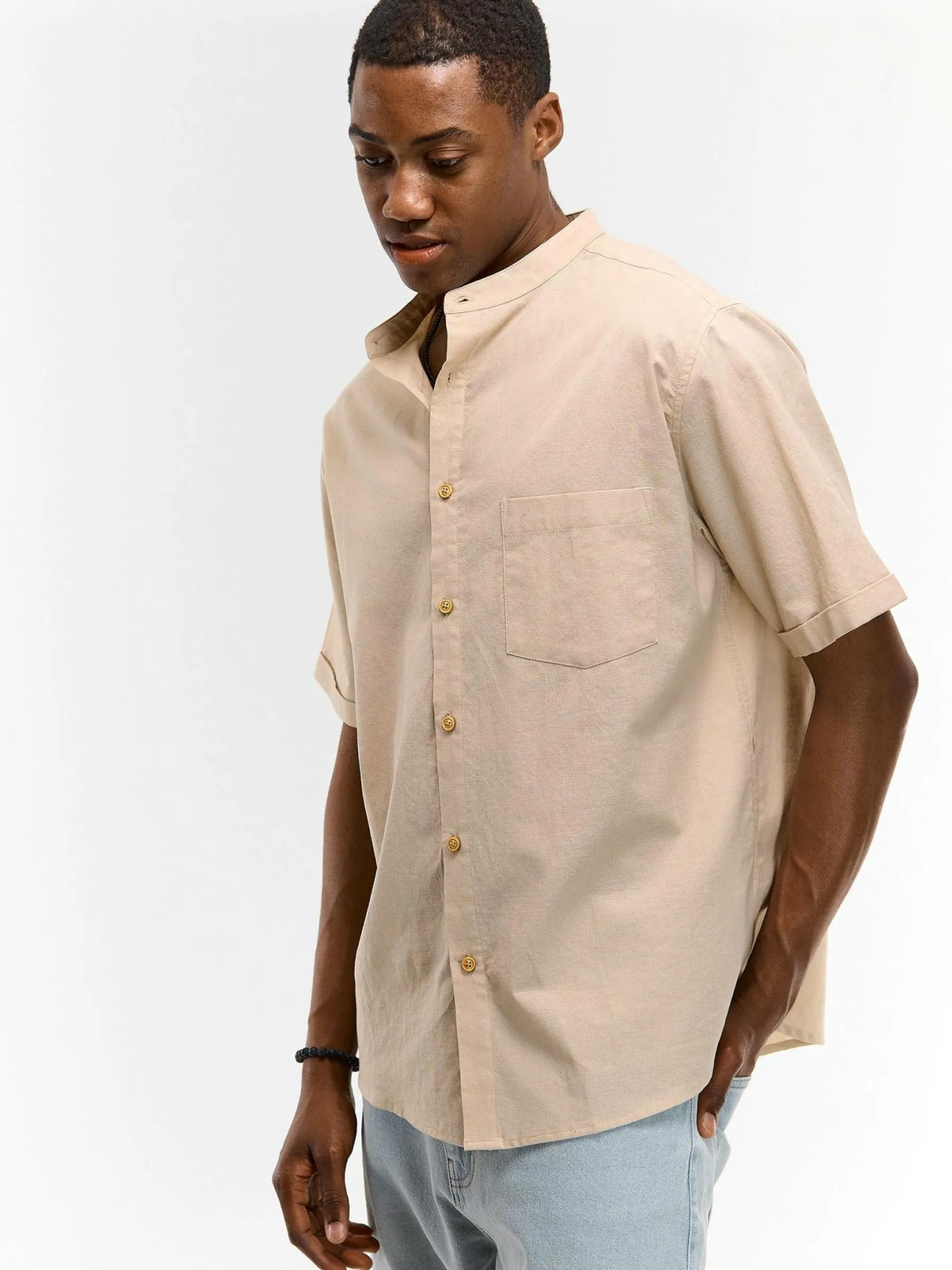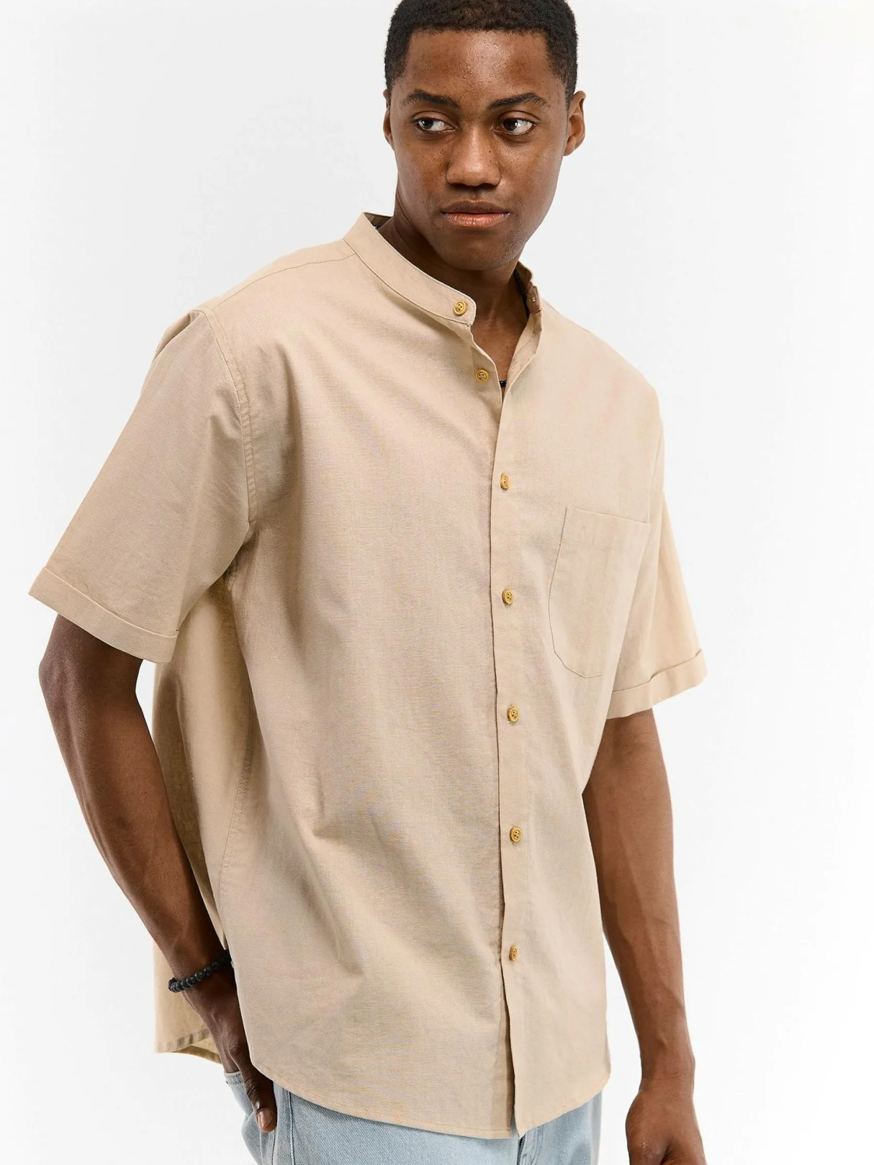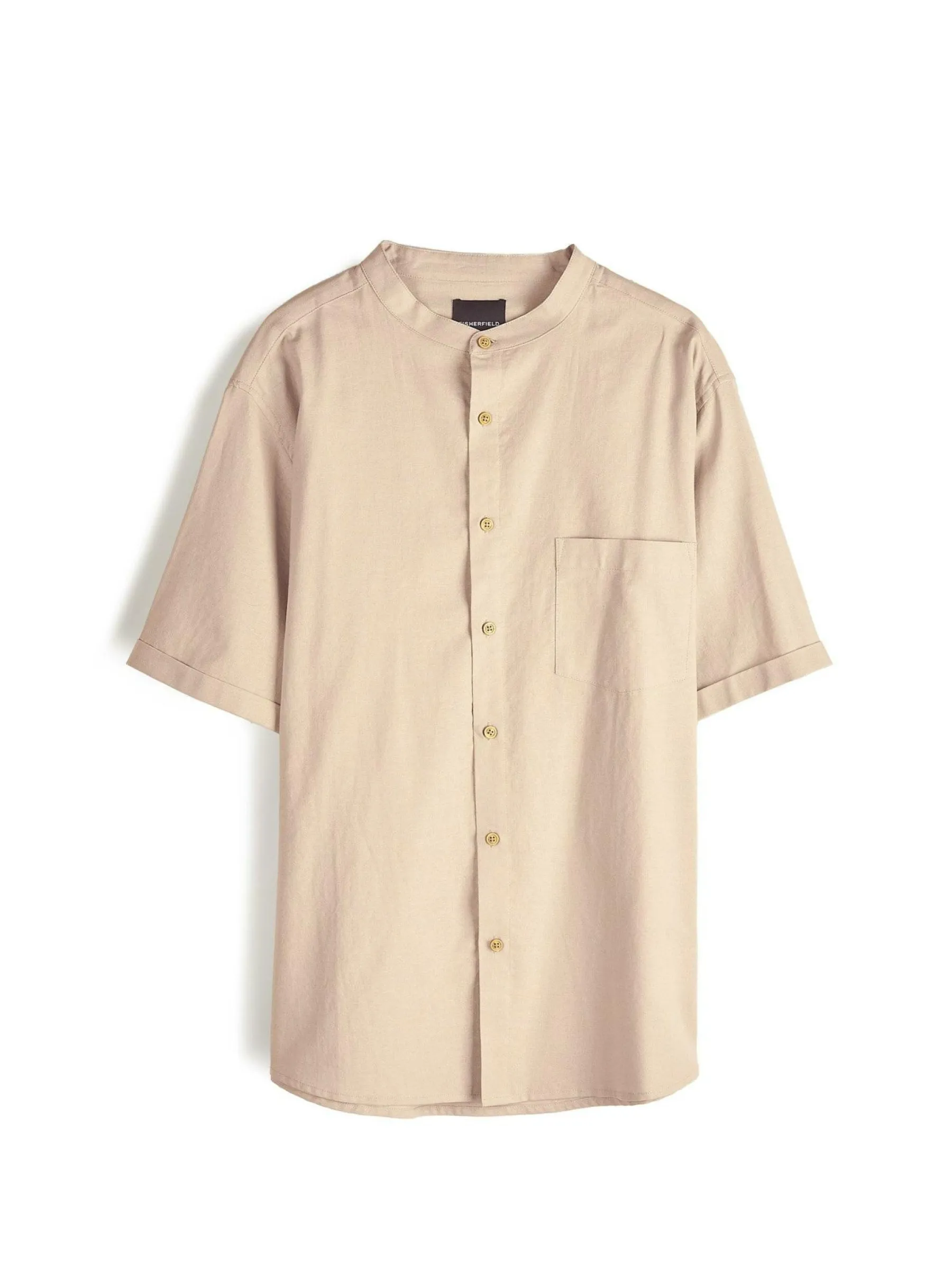 Kolor: beżowyKrój: podstawowyTyp: koszulaRekaw: krótki rękawPattern style: pojedynczy kolorDetal: na guziki, z kiesz…
