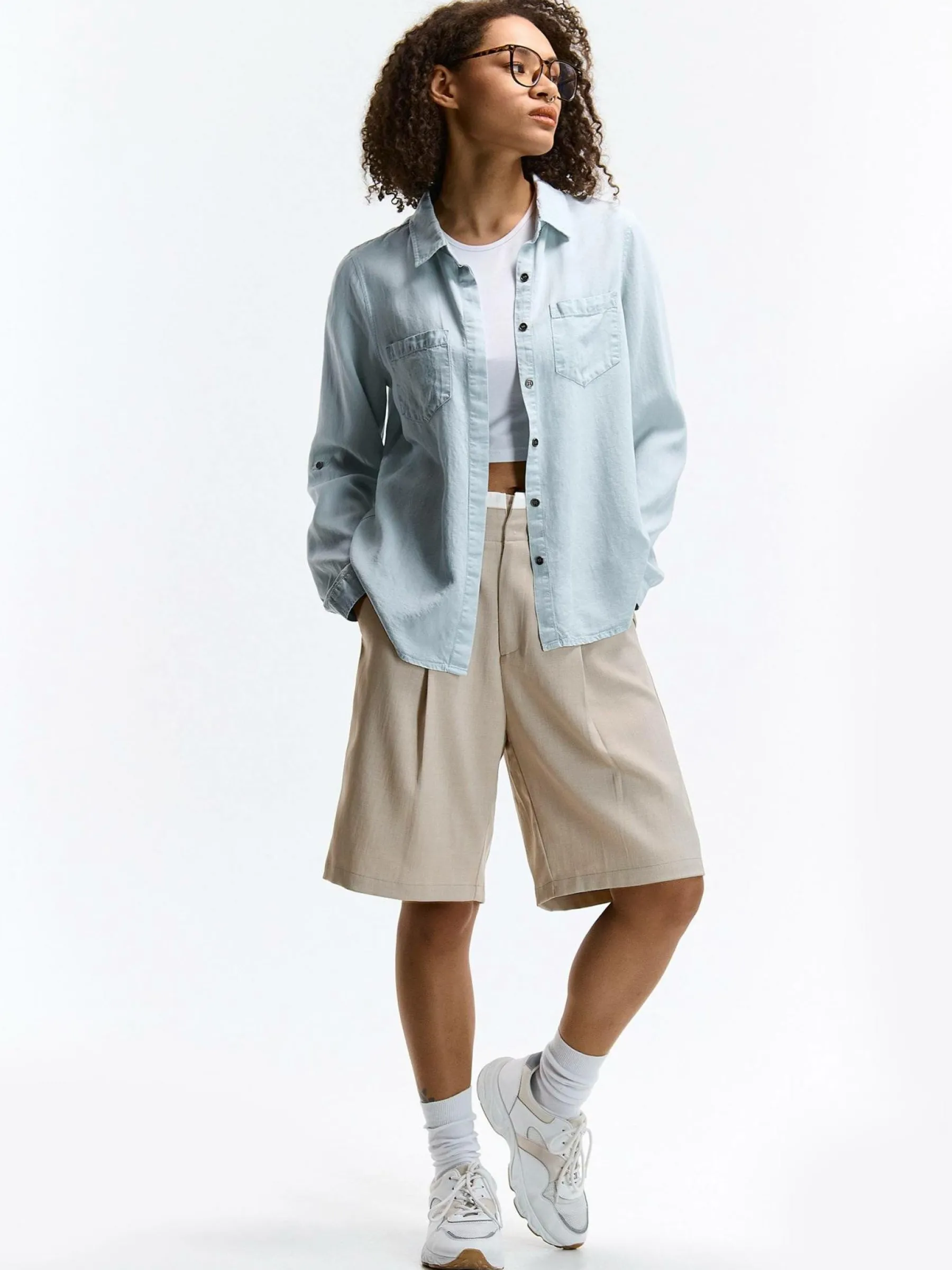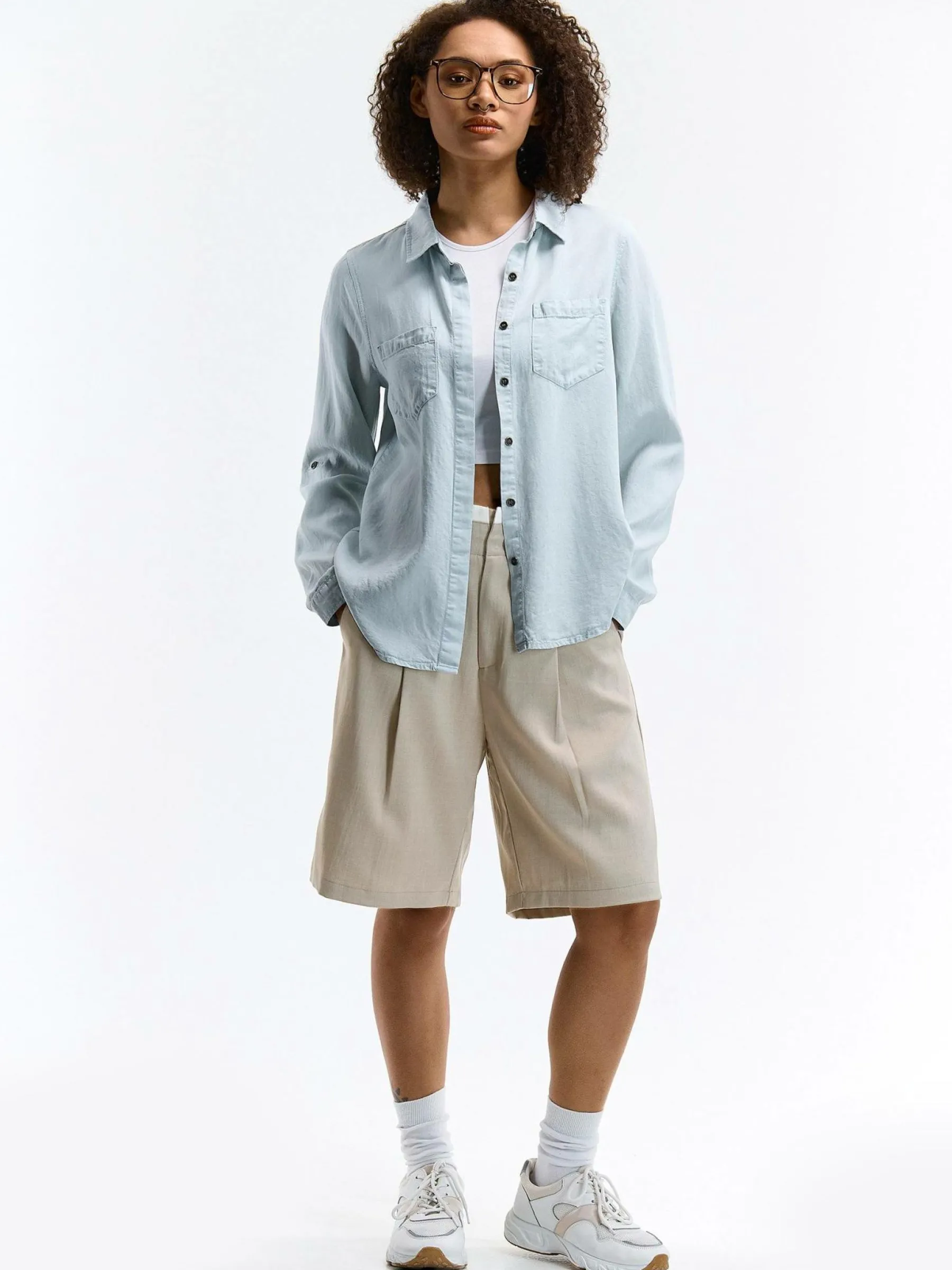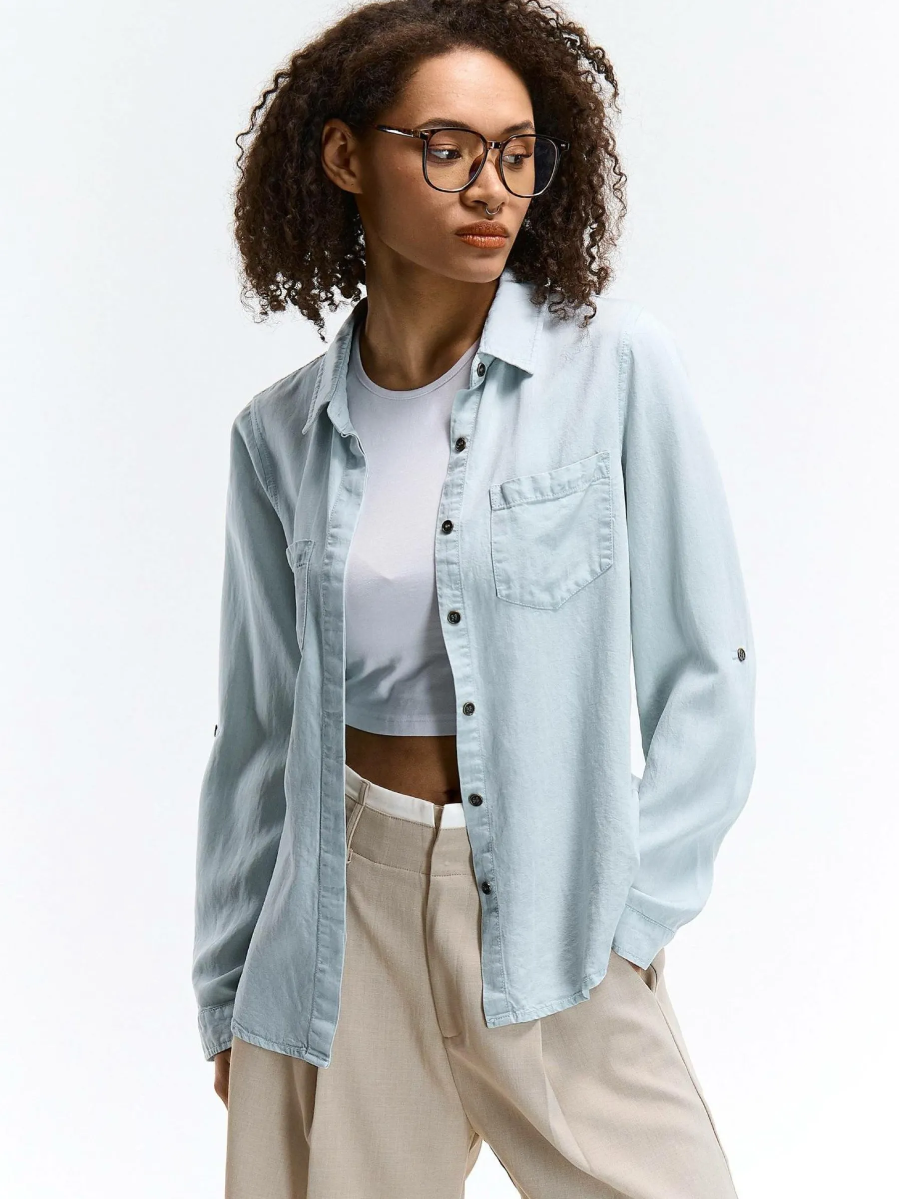 Kolor: niebieskiKrój: podstawowyTyp: koszulaRekaw: długi rękawDługość: krótkiPattern style: pojedynczy kolorDetal…