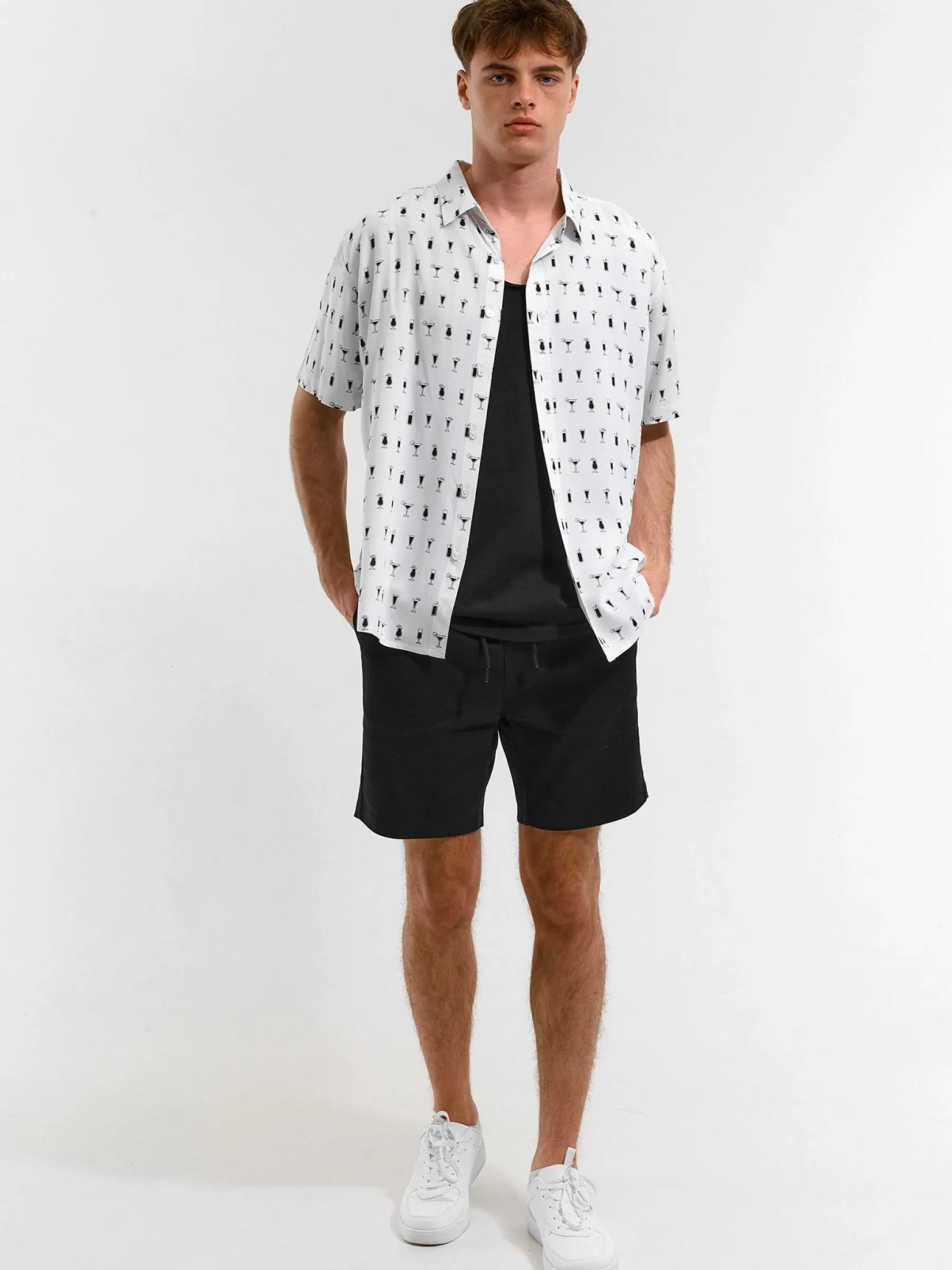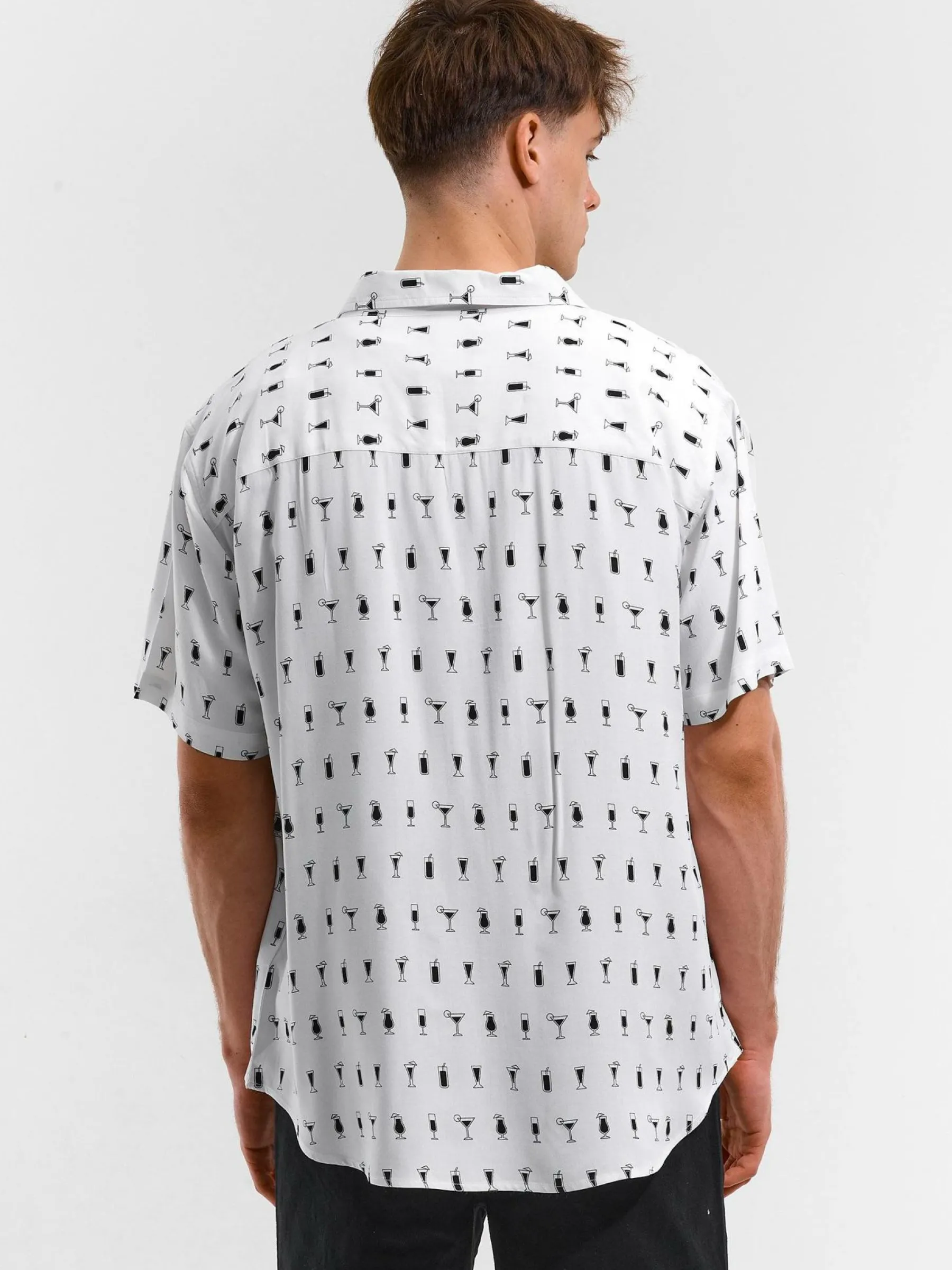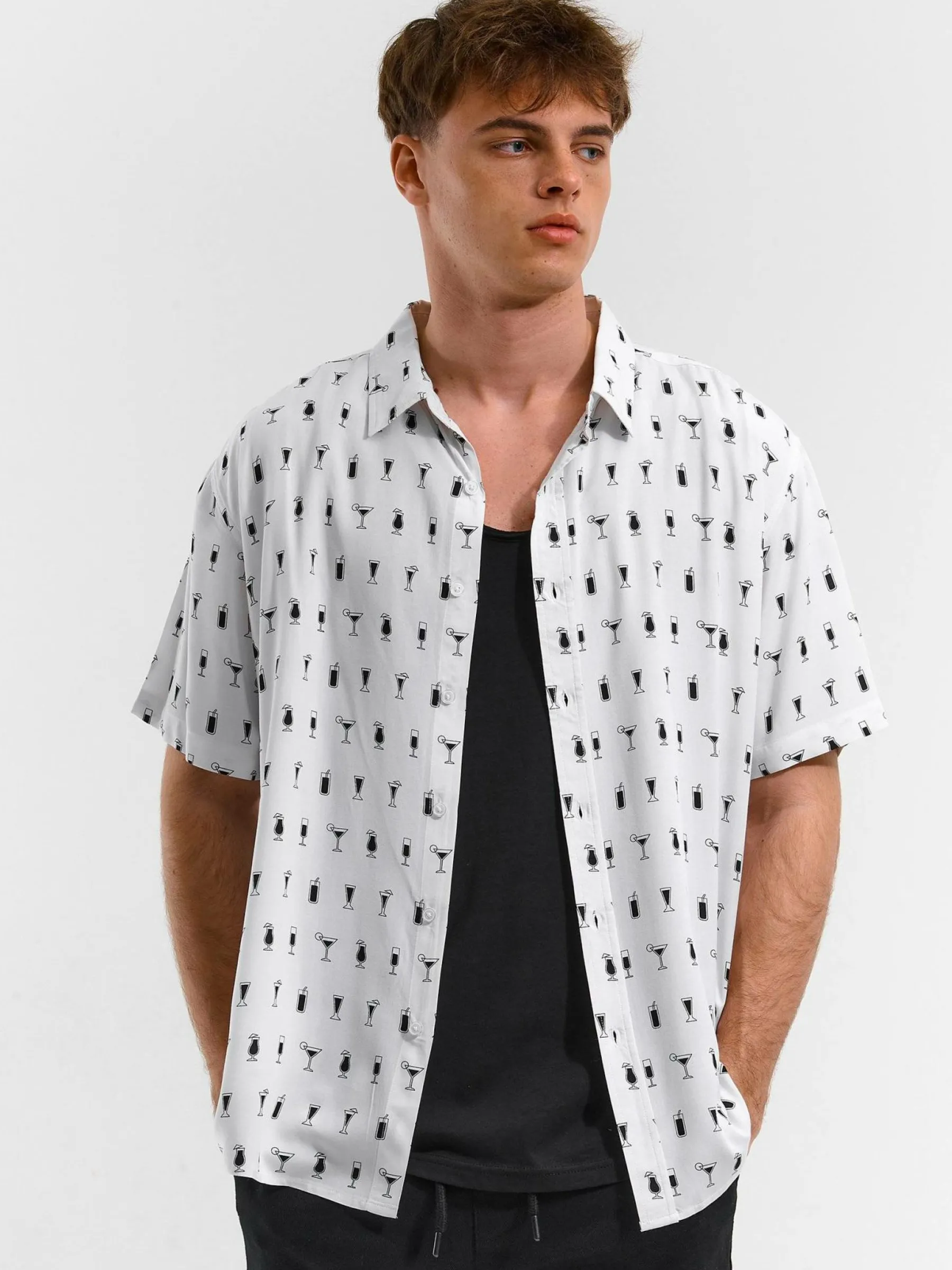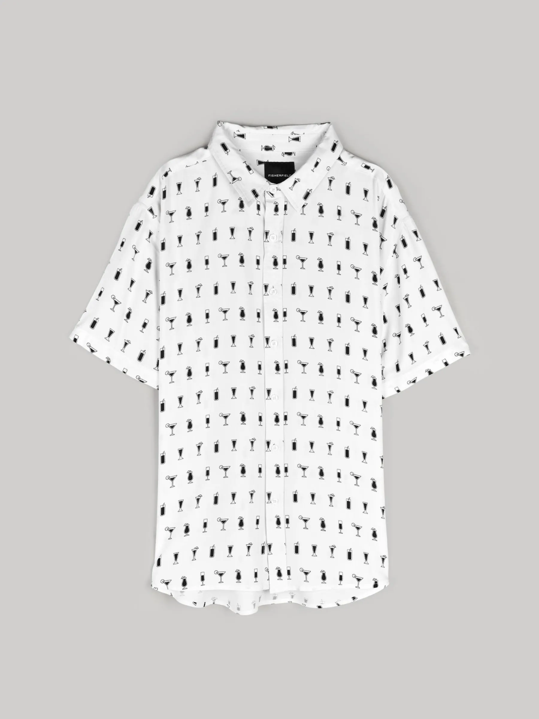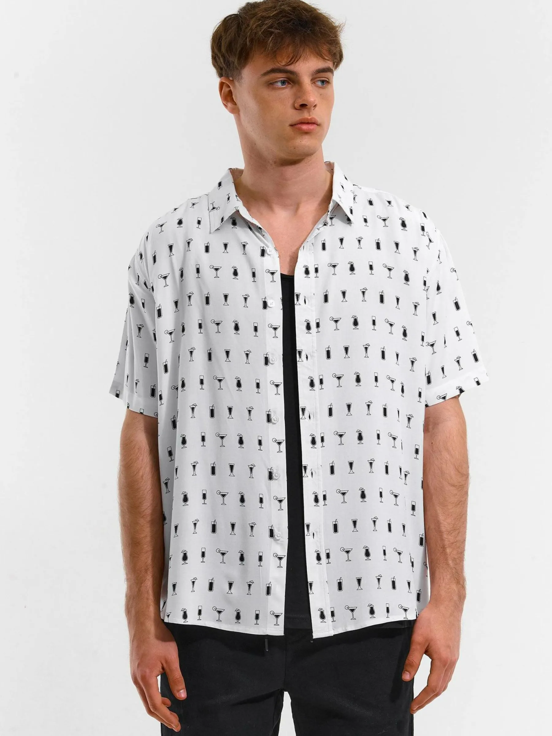 Kolor: białyKrój: regularTyp: koszulaRekaw: krótki rękawPattern style: z nadrukiemDetal: na guzikiMateriał: wiskoza…