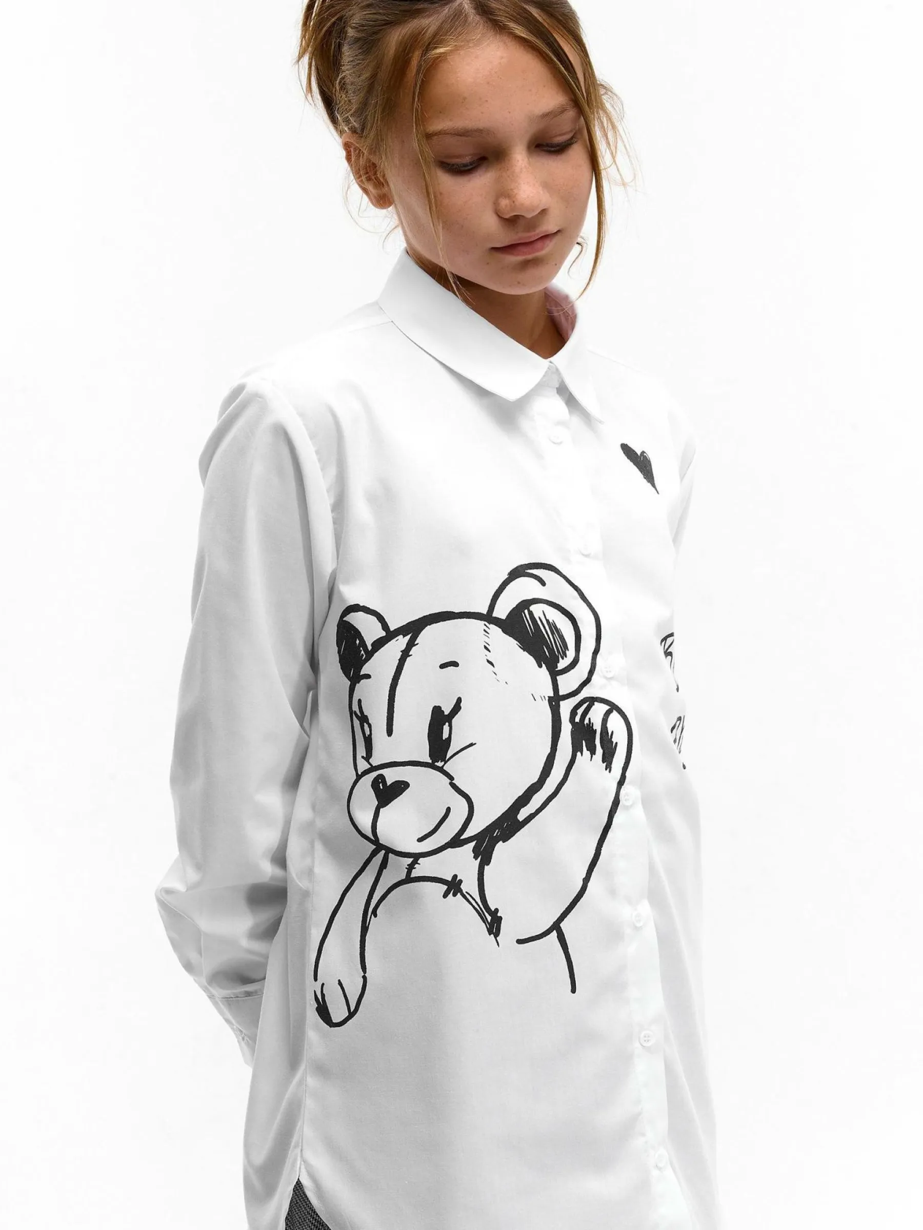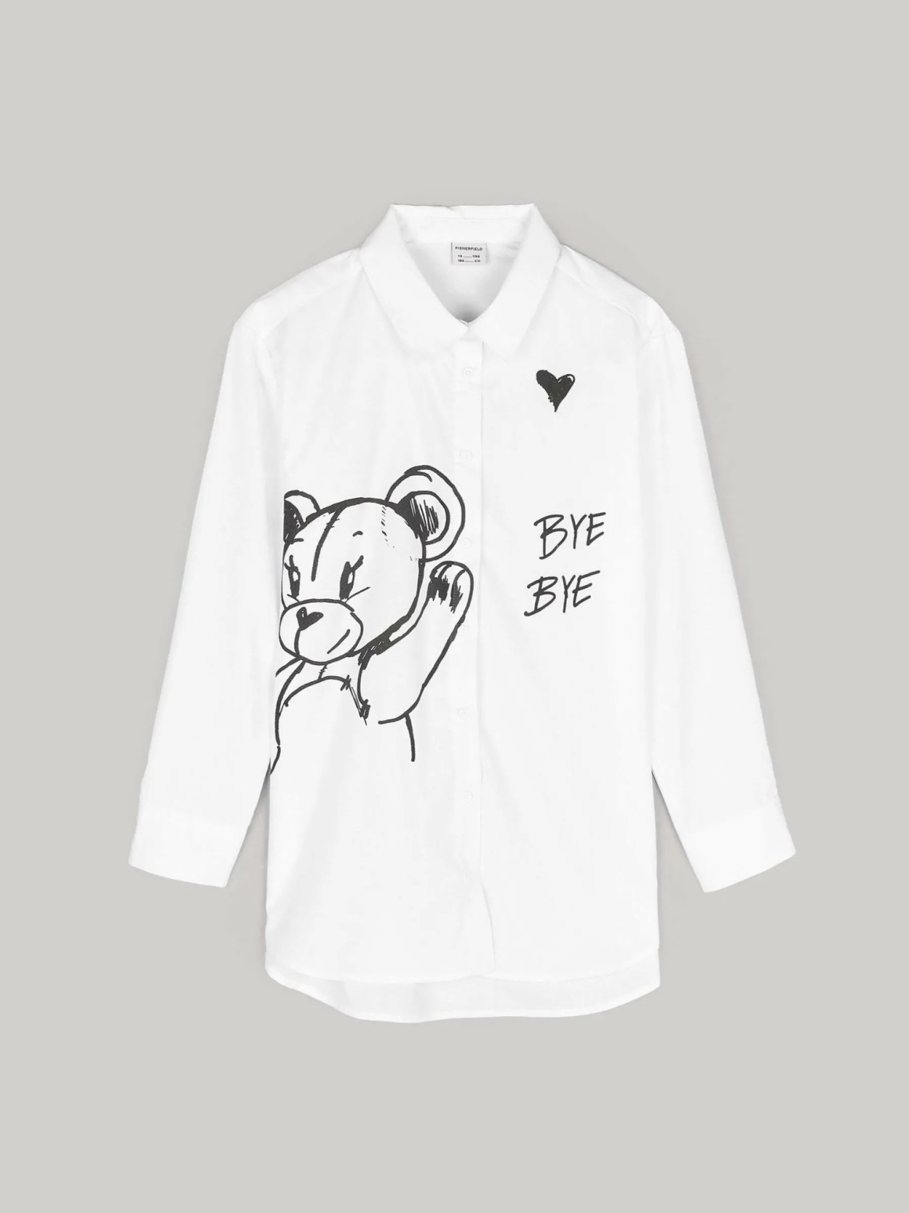 Kolor: białyKrój: podstawowyTyp: koszulaRekaw: długi rękawDługość: dlugiePattern style: z nadrukiemDetal: na guzi…