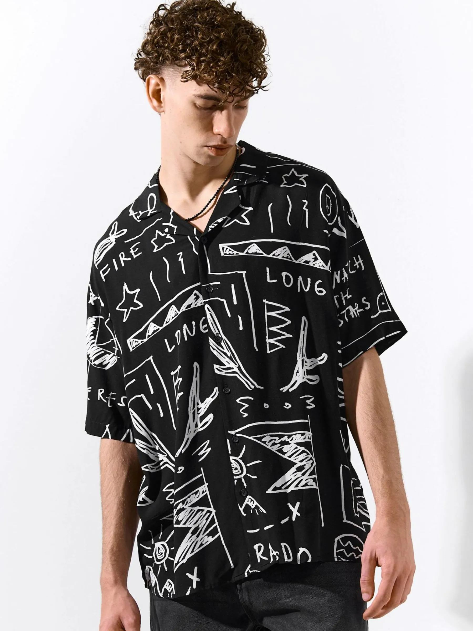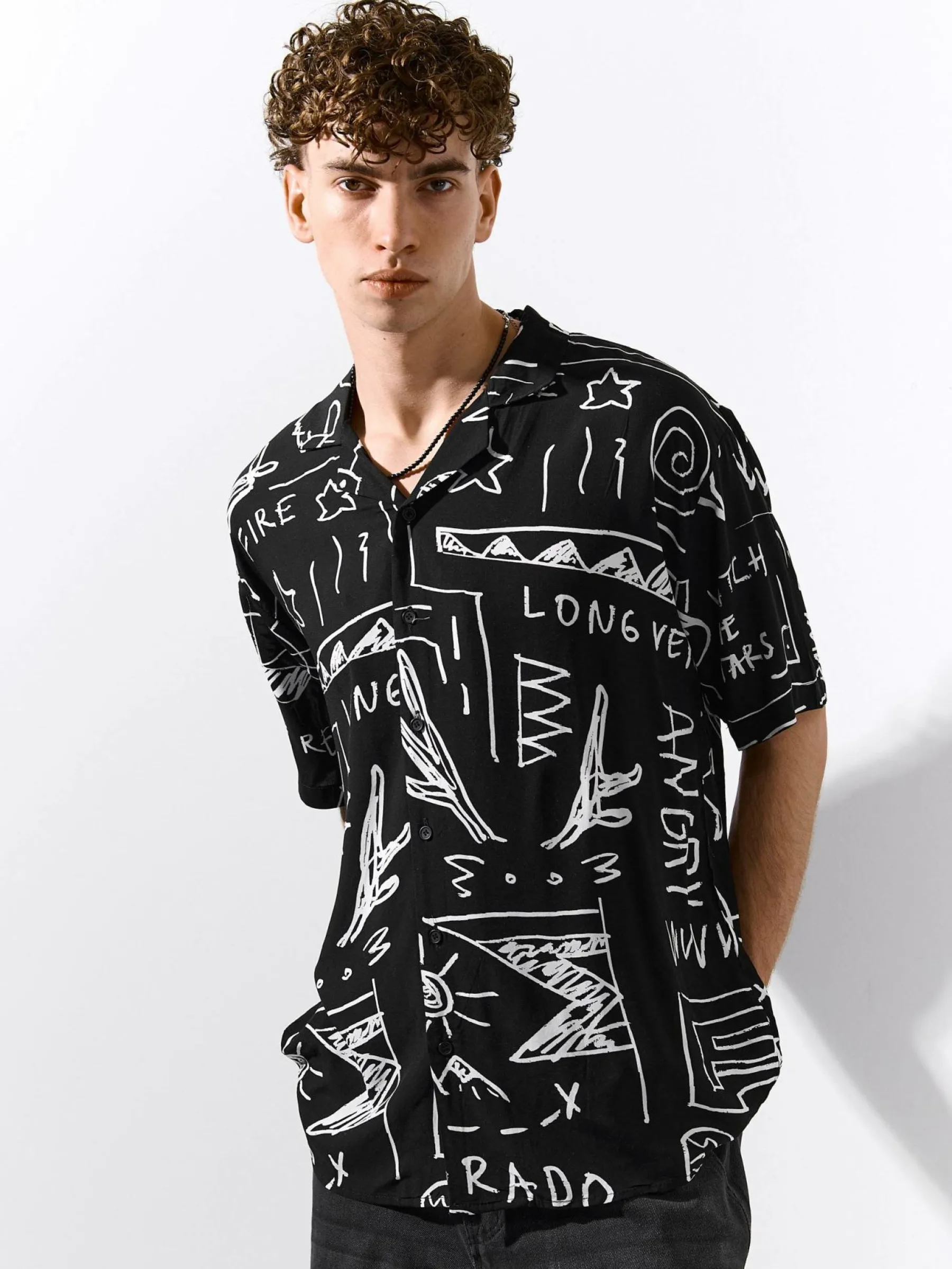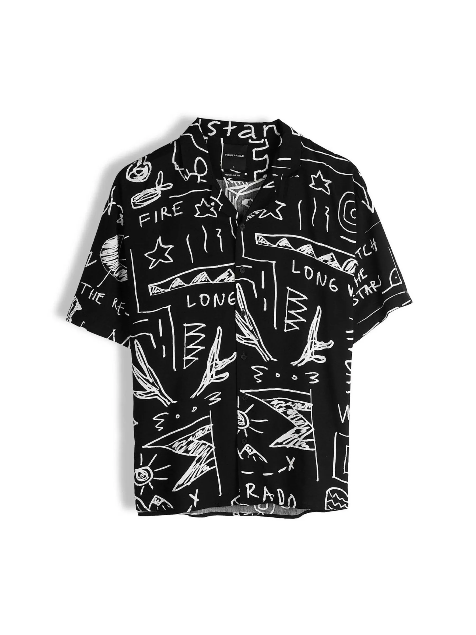 Kolor: czarnyKrój: podstawowyTyp: koszulaRekaw: krótki rękawPattern style: z nadrukiemDetal: na guzikiMateriał: wisk…