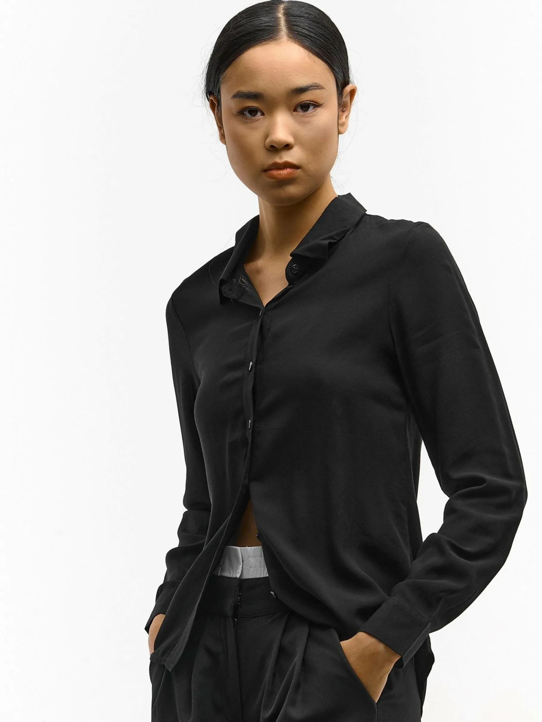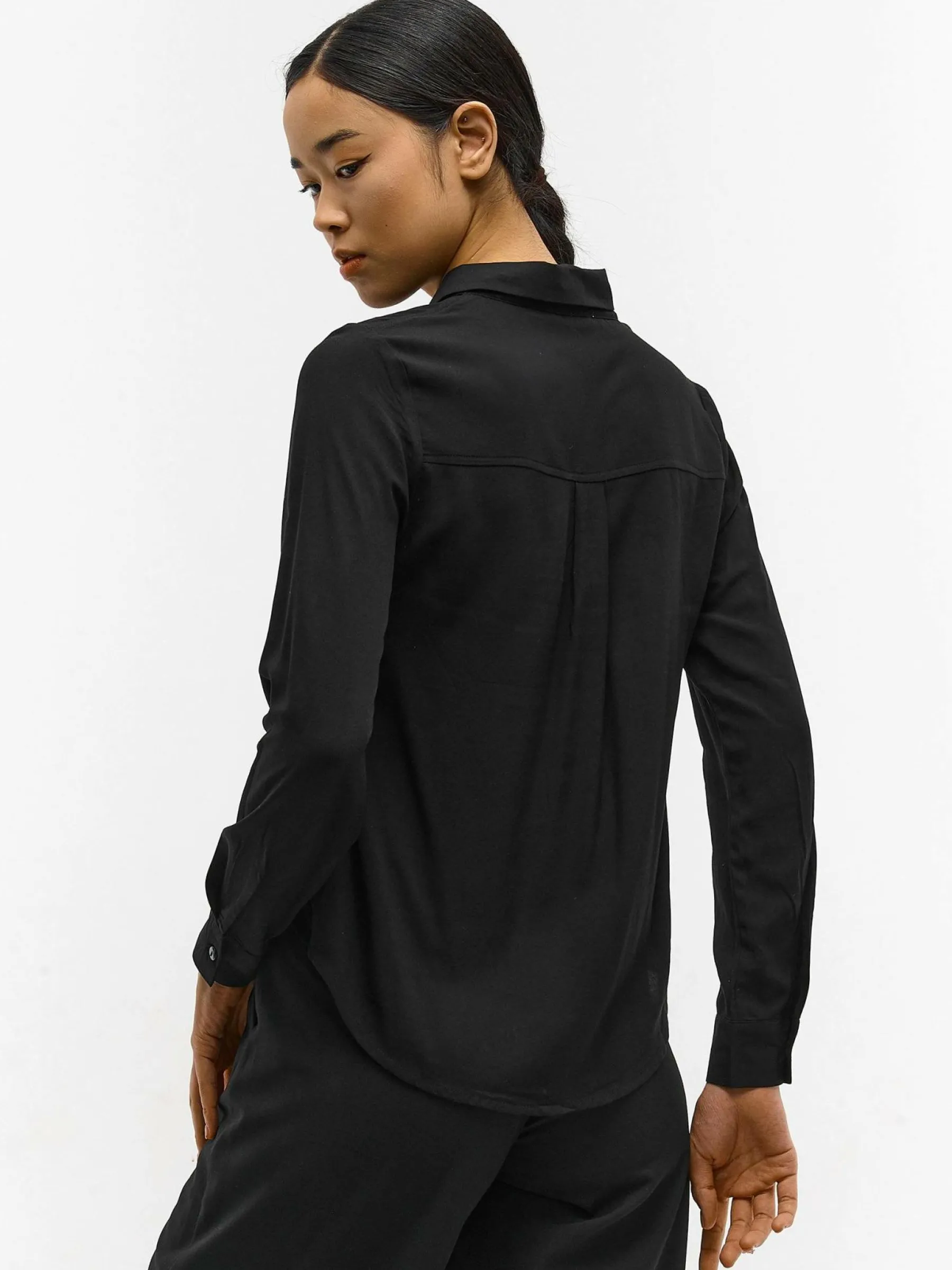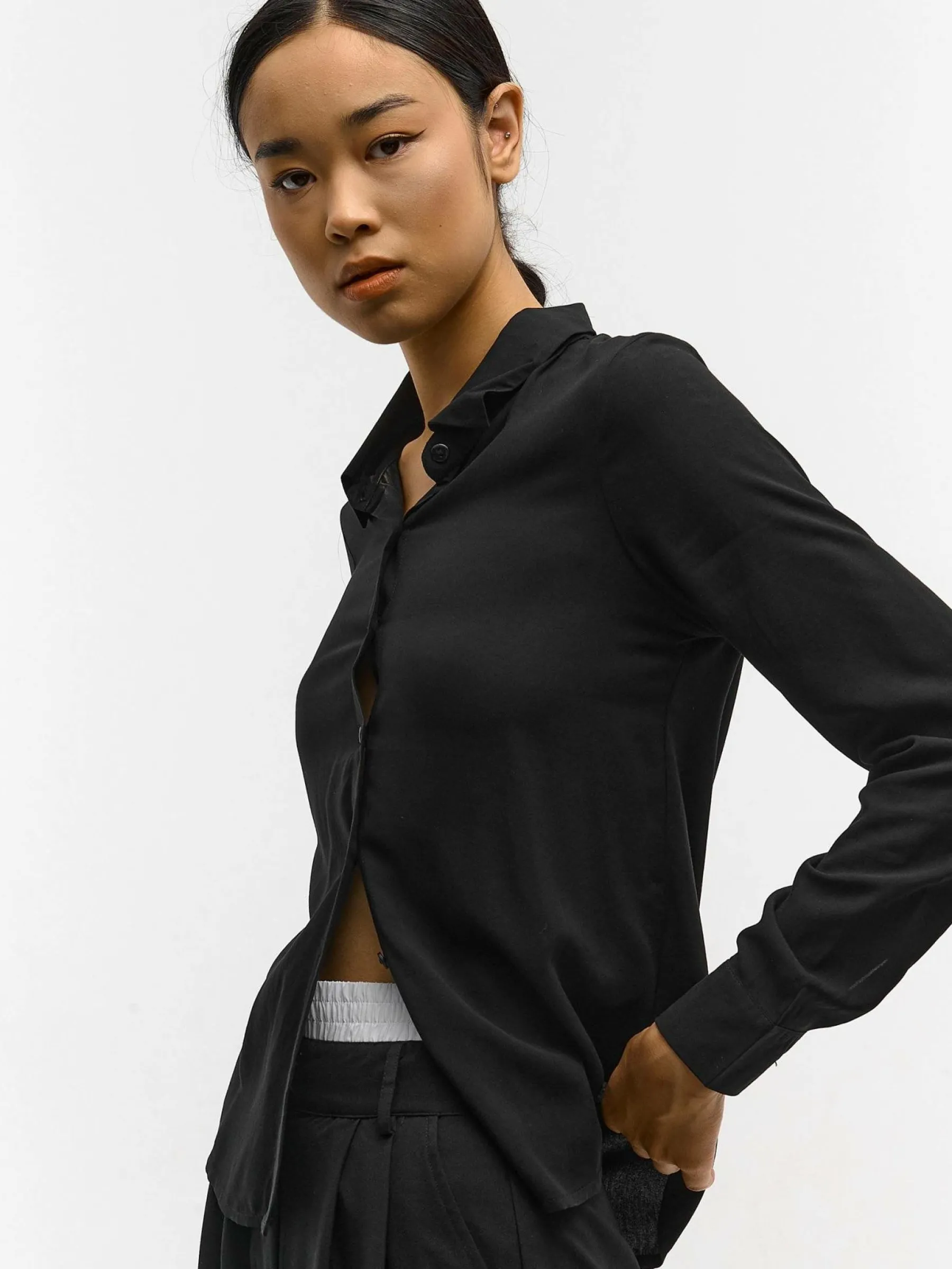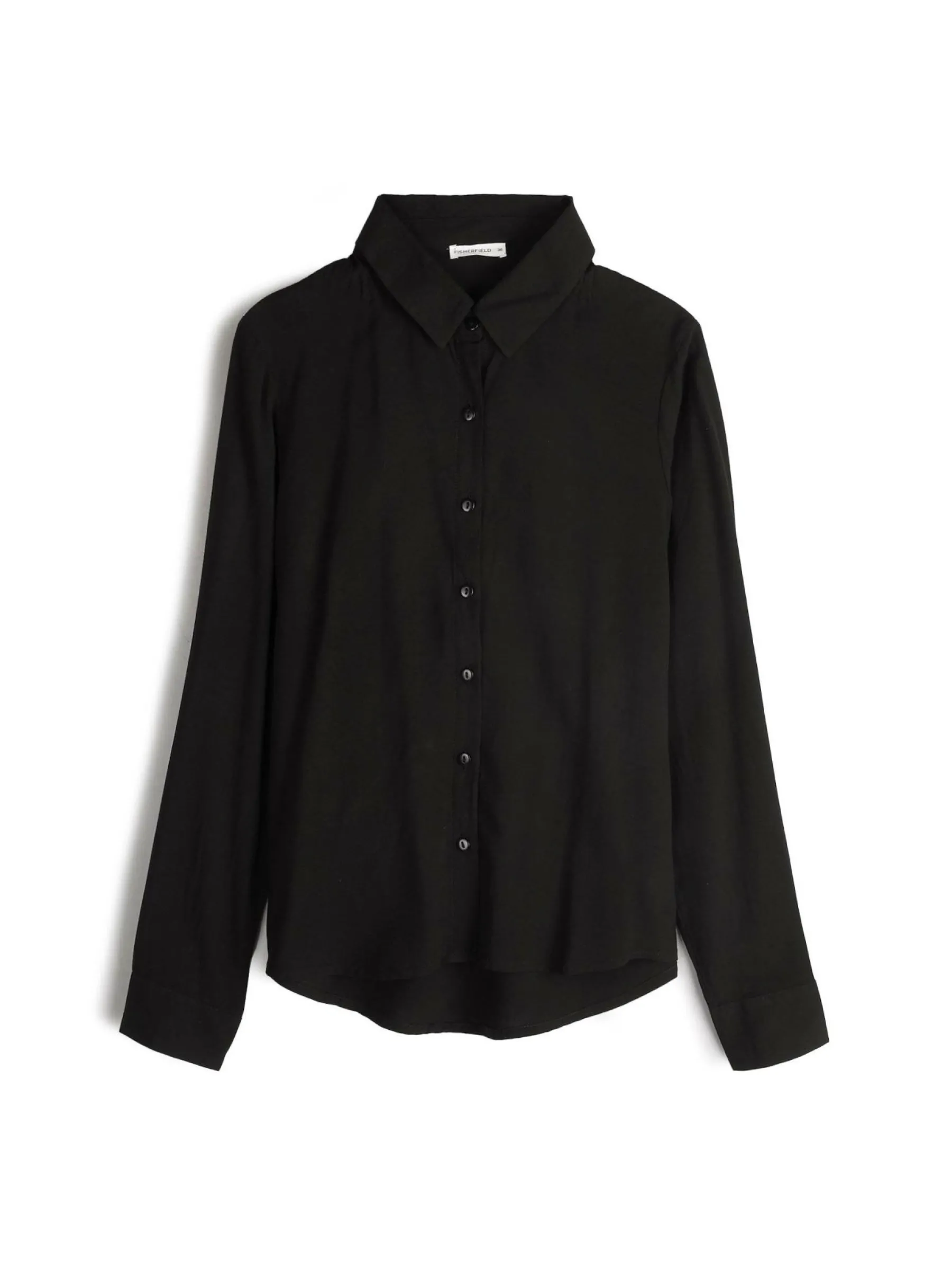 Kolor: czarnyKrój: podstawowyTyp: koszulaRekaw: długi rękawDługość: krótkiPattern style: pojedynczy kolorDetal: n…