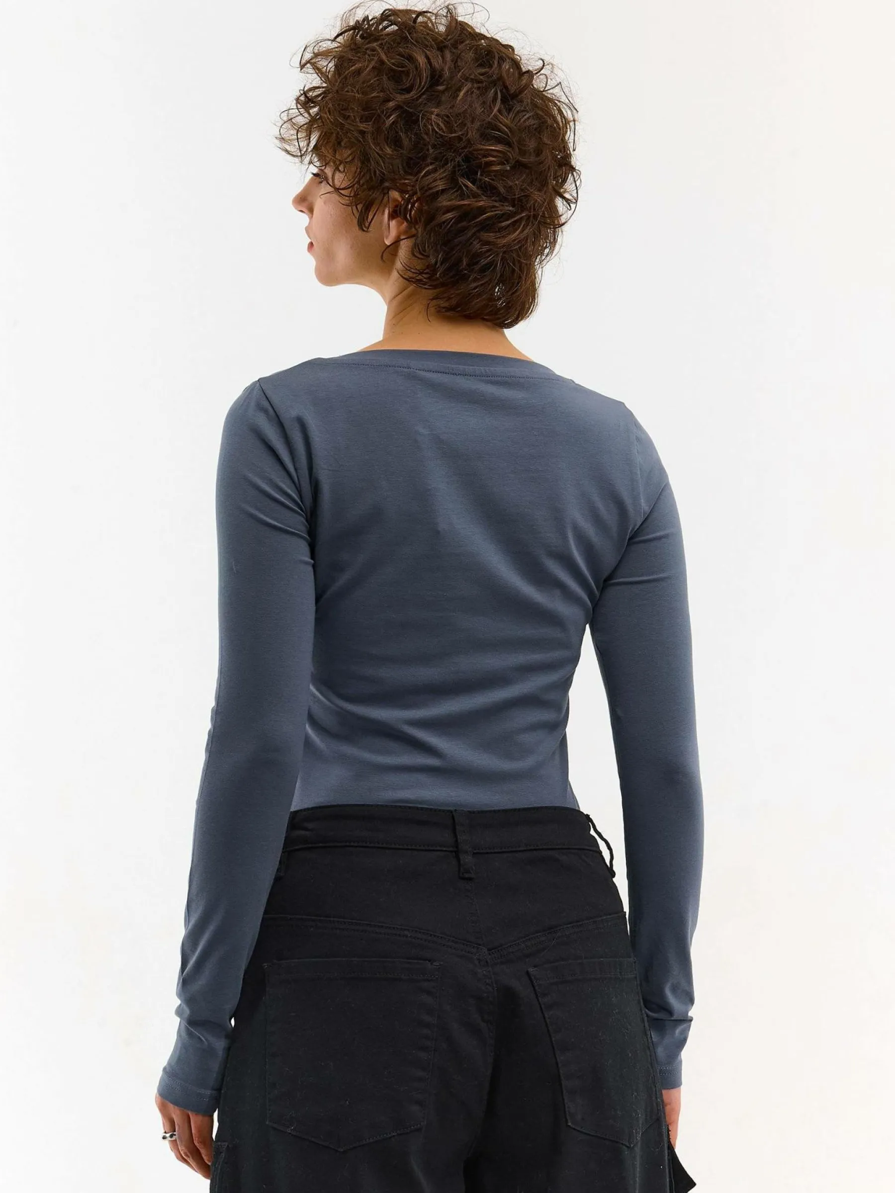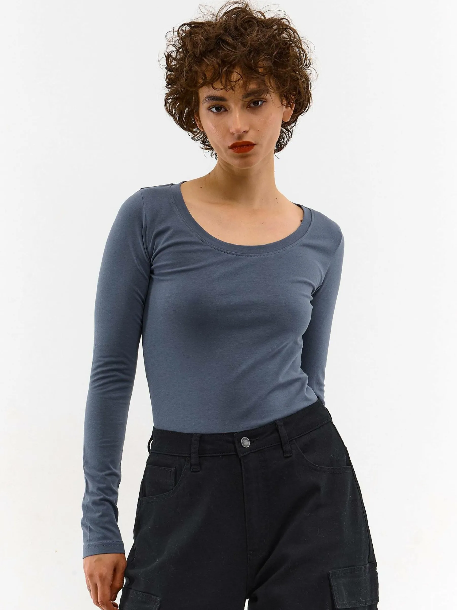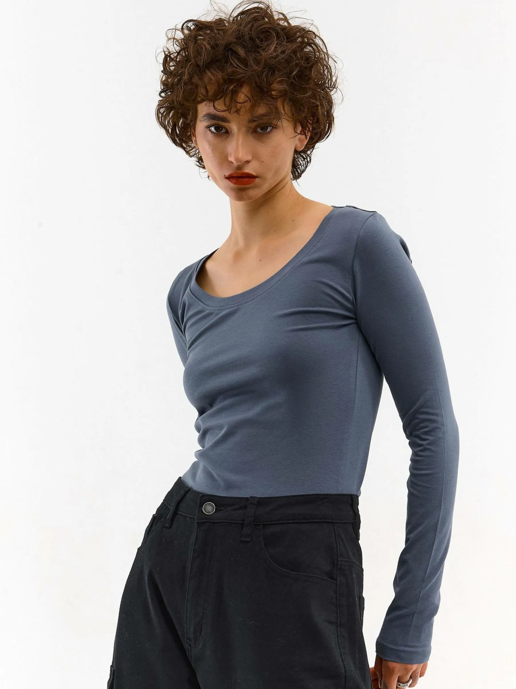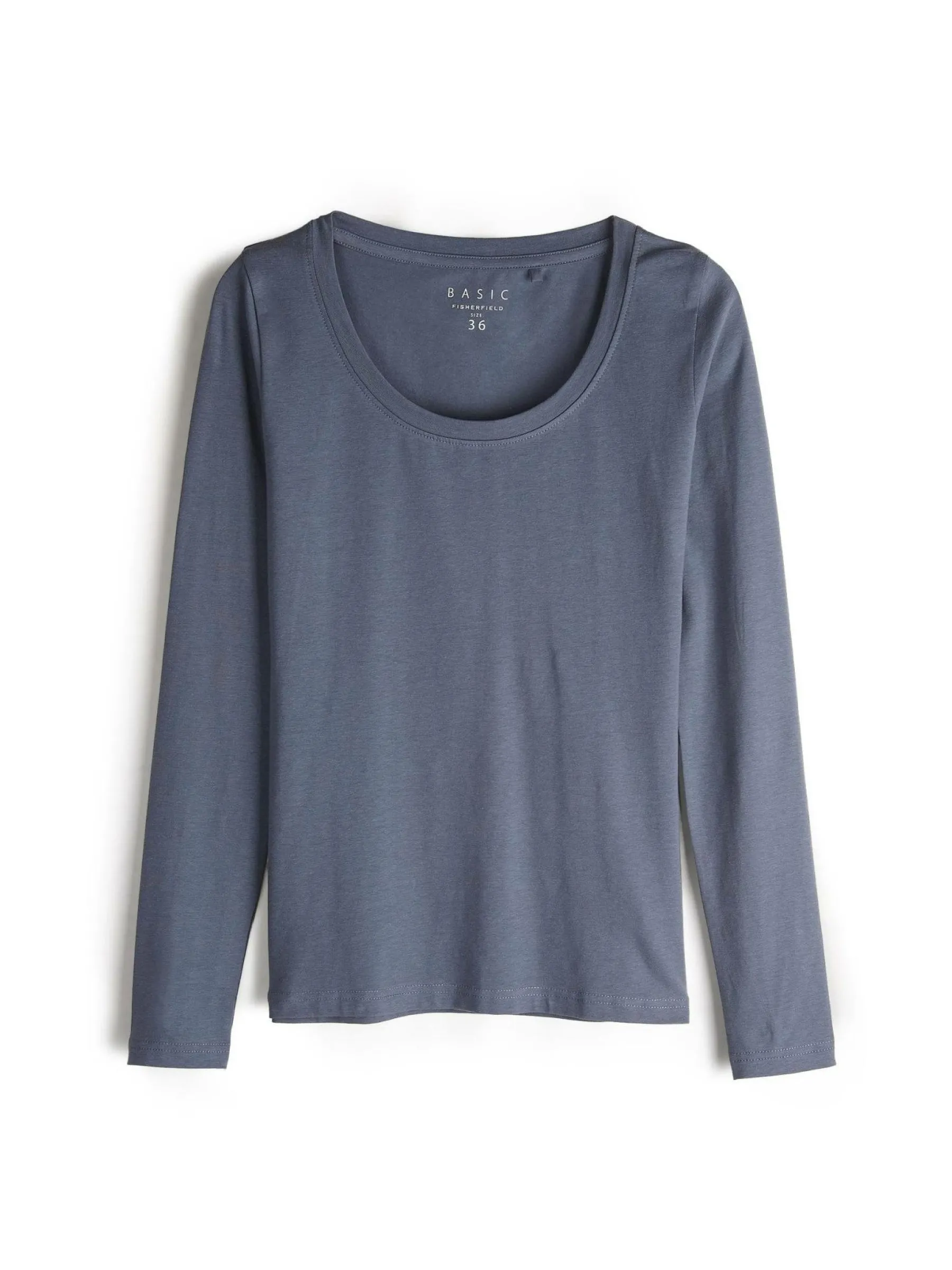 Kolor: niebieskiKrój: podstawowyTyp: koszulkaRekaw: długi rękawDługość: krótkiPattern style: pojedynczy kolorDeta…