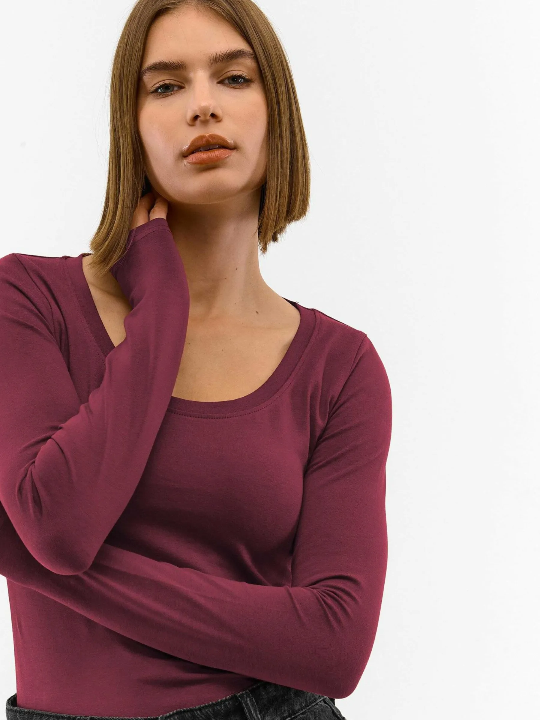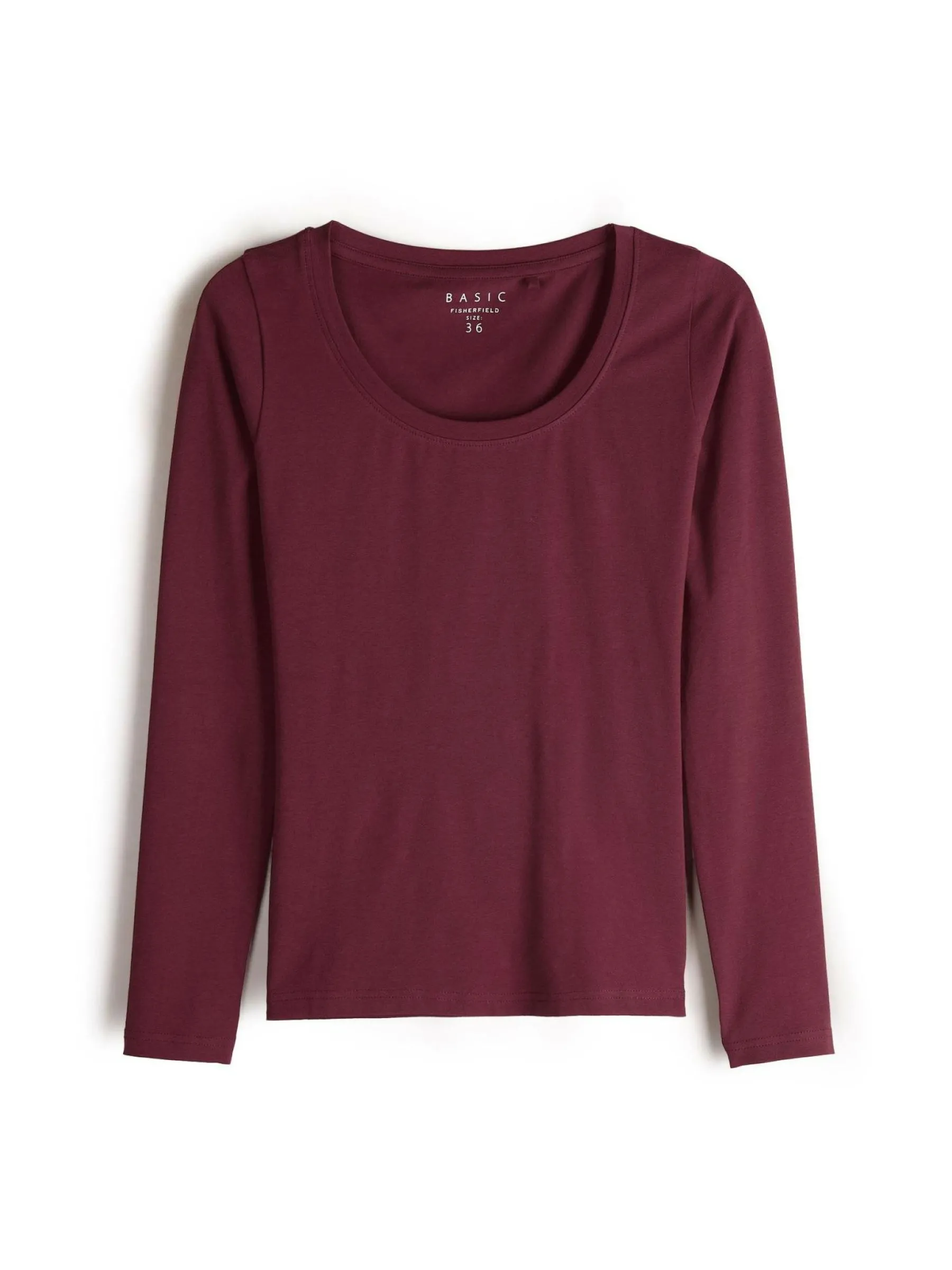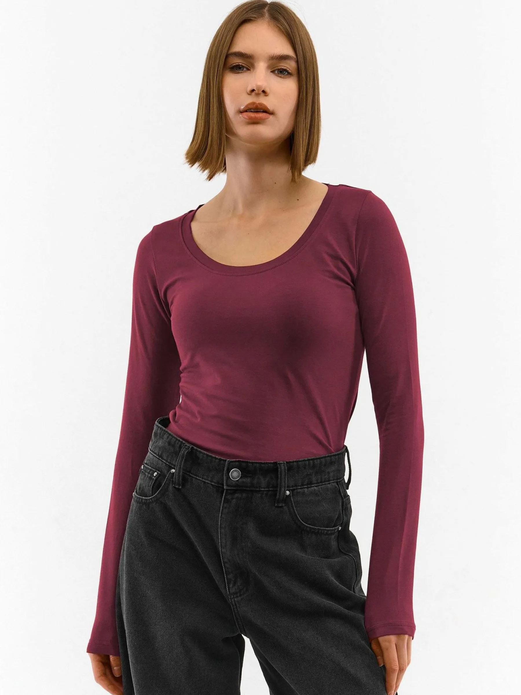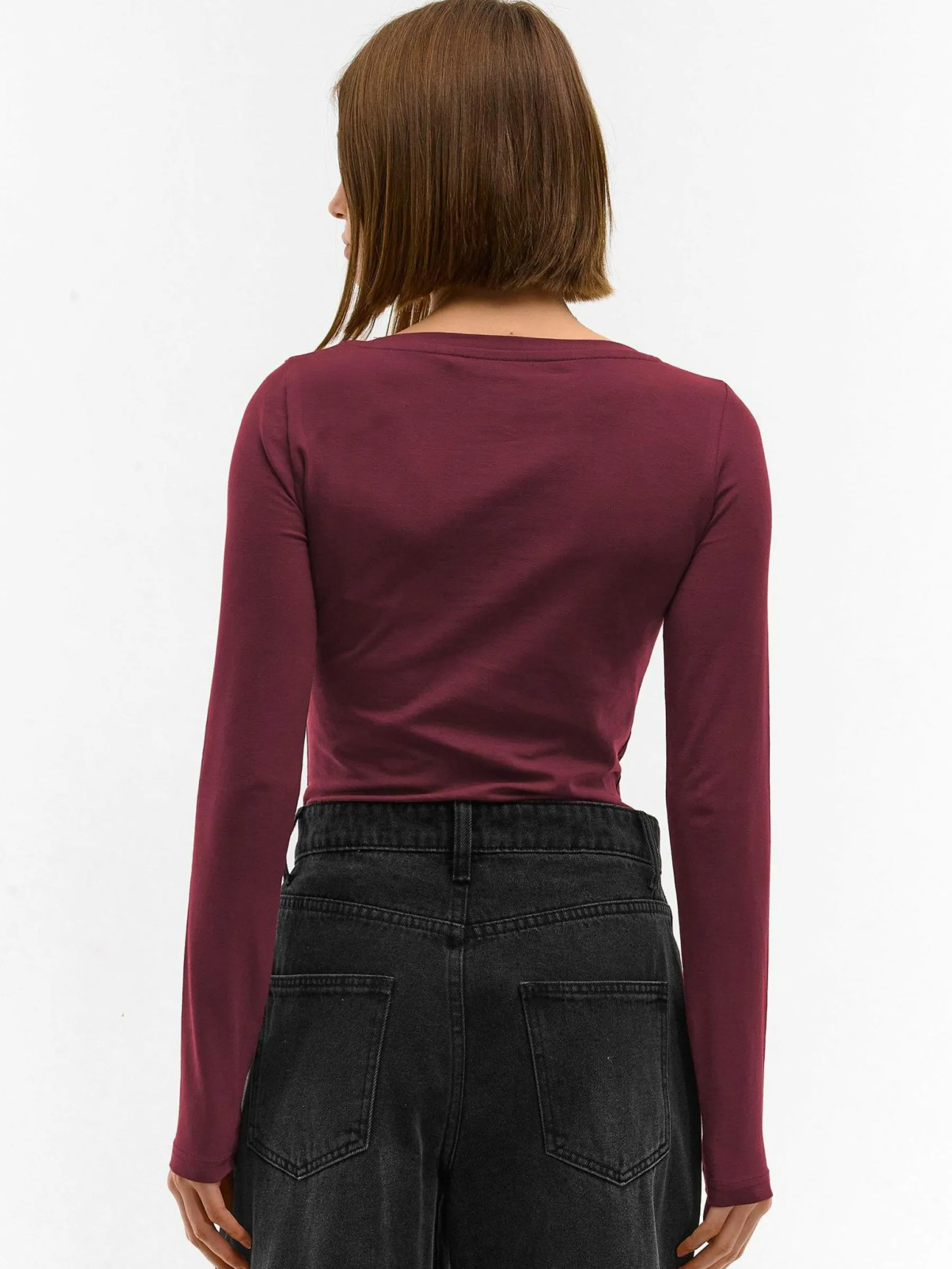 Kolor: burgundyKrój: regularTyp: koszulkaRekaw: długi rękawDługość: krótkiPattern style: pojedynczy kolorDetal: n…