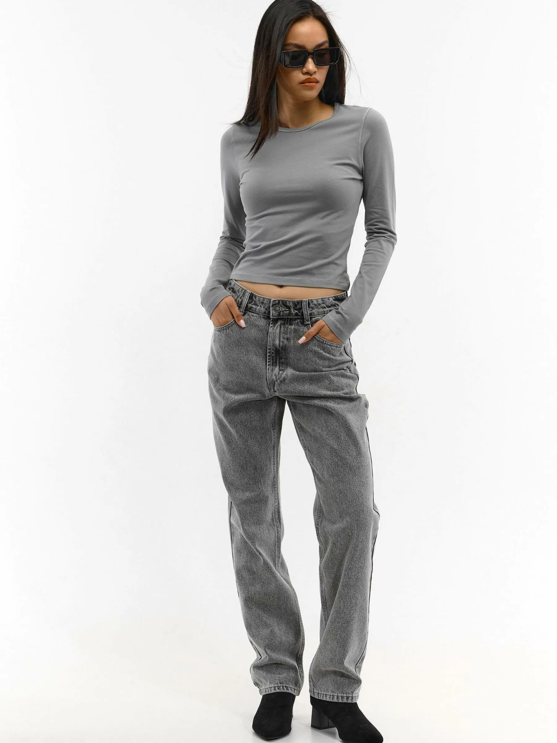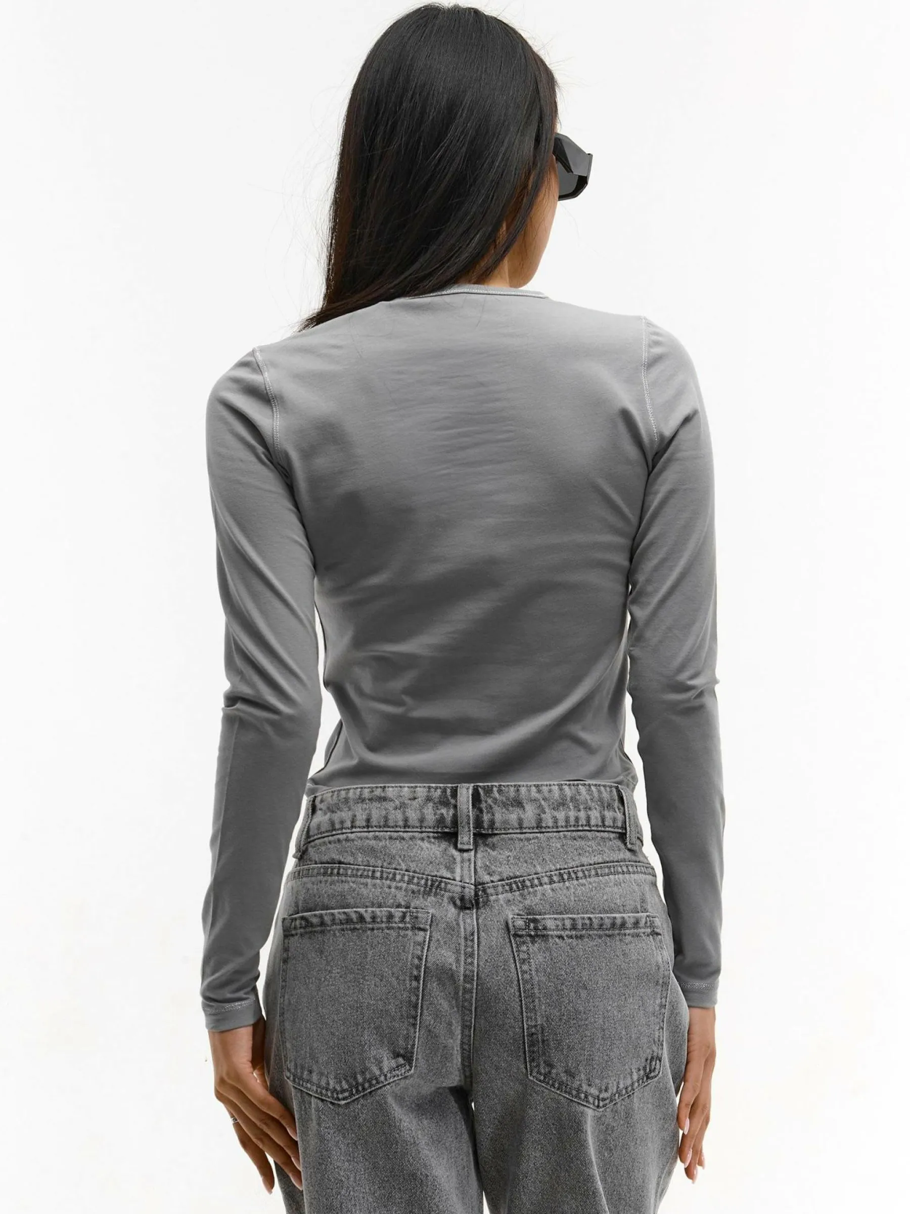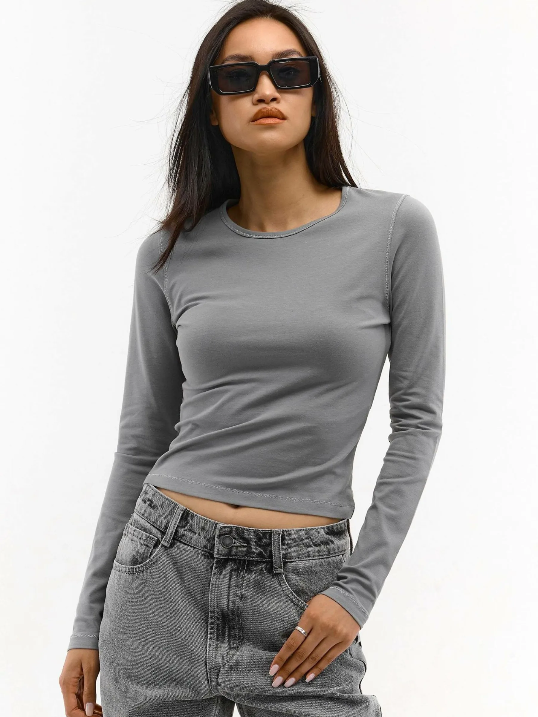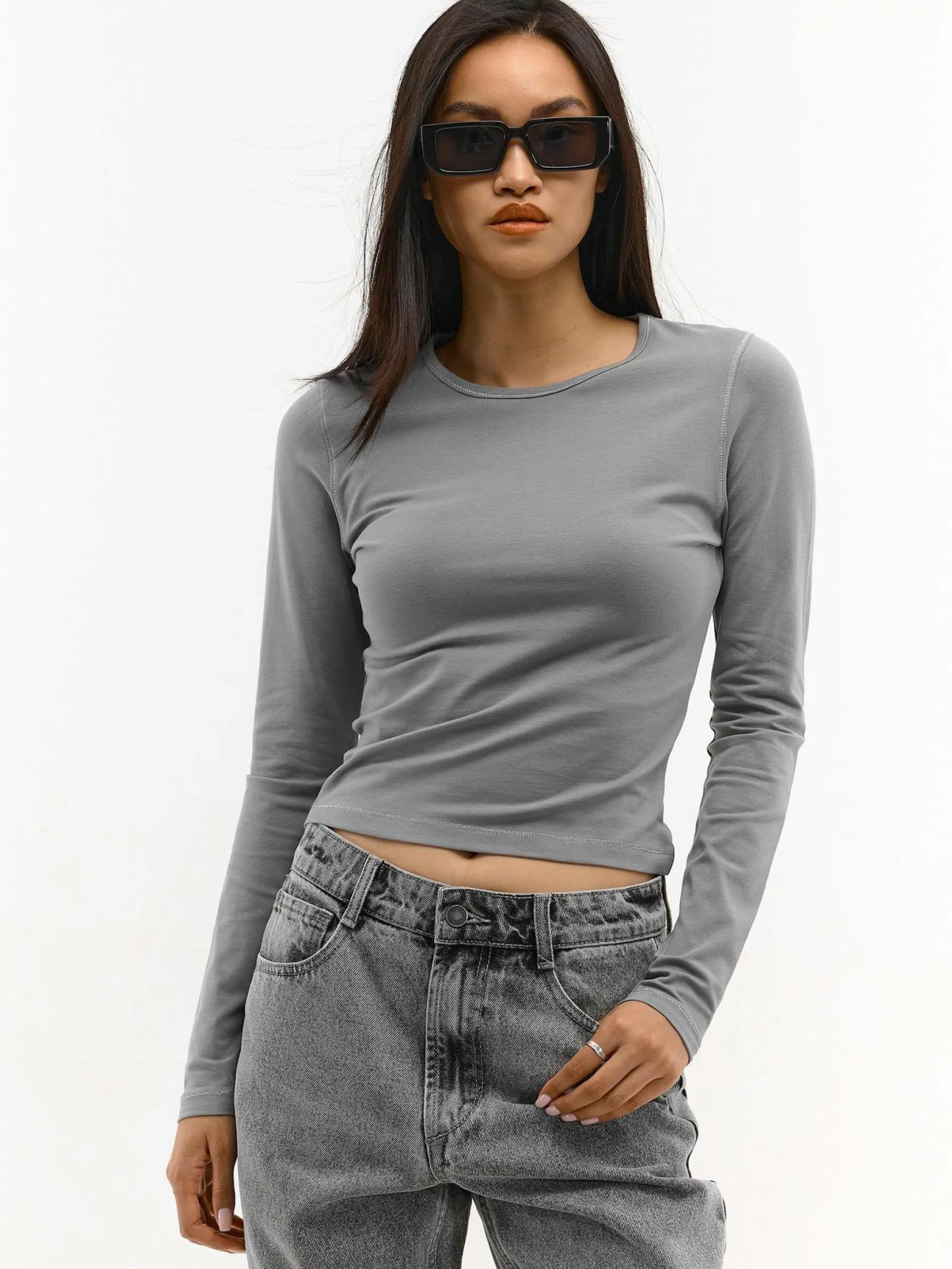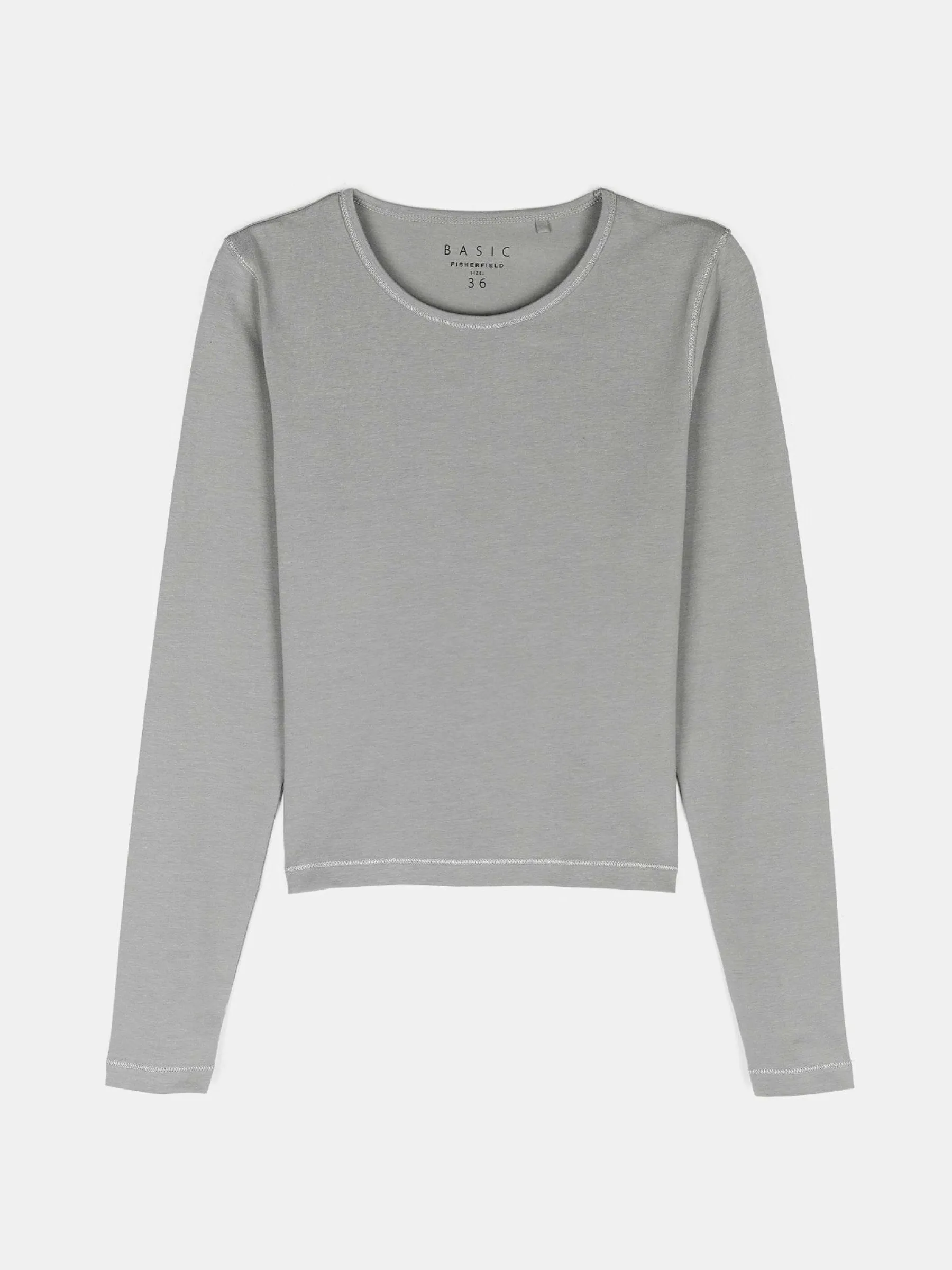Kolor: szaryKrój: podstawowyTyp: koszulkaRekaw: długi rękawDługość: krótkiPattern style: pojedynczy kolorDetal: n…