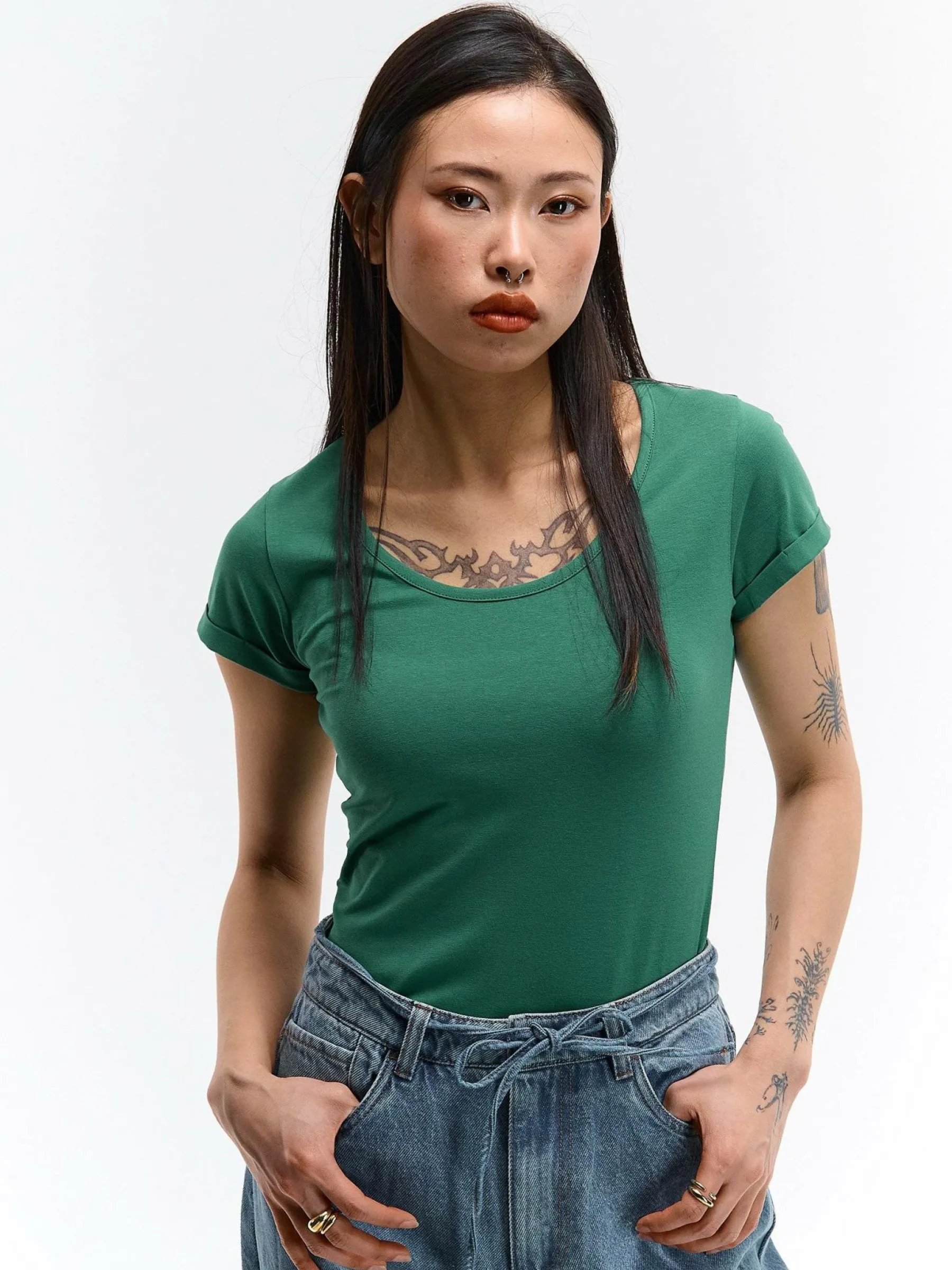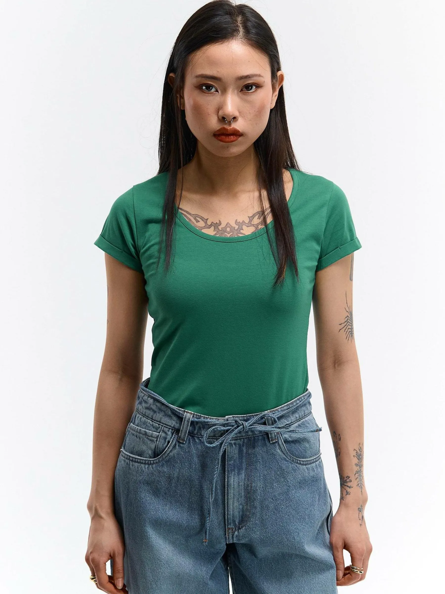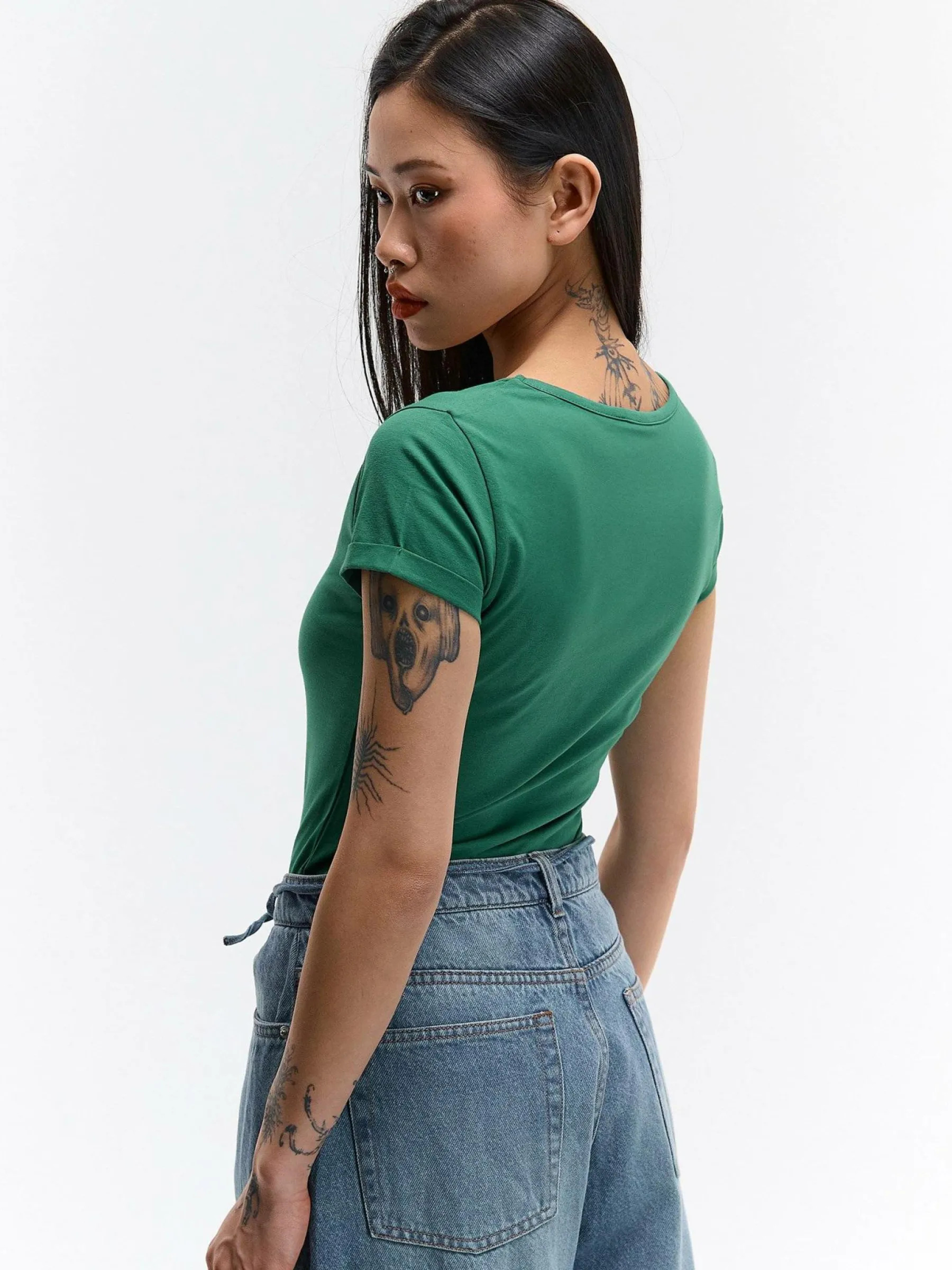 Kolor: zielonyKrój: regularTyp: koszulkaRekaw: krótki rękawDługość: krótkiPattern style: pojedynczy kolorDetal: n…
