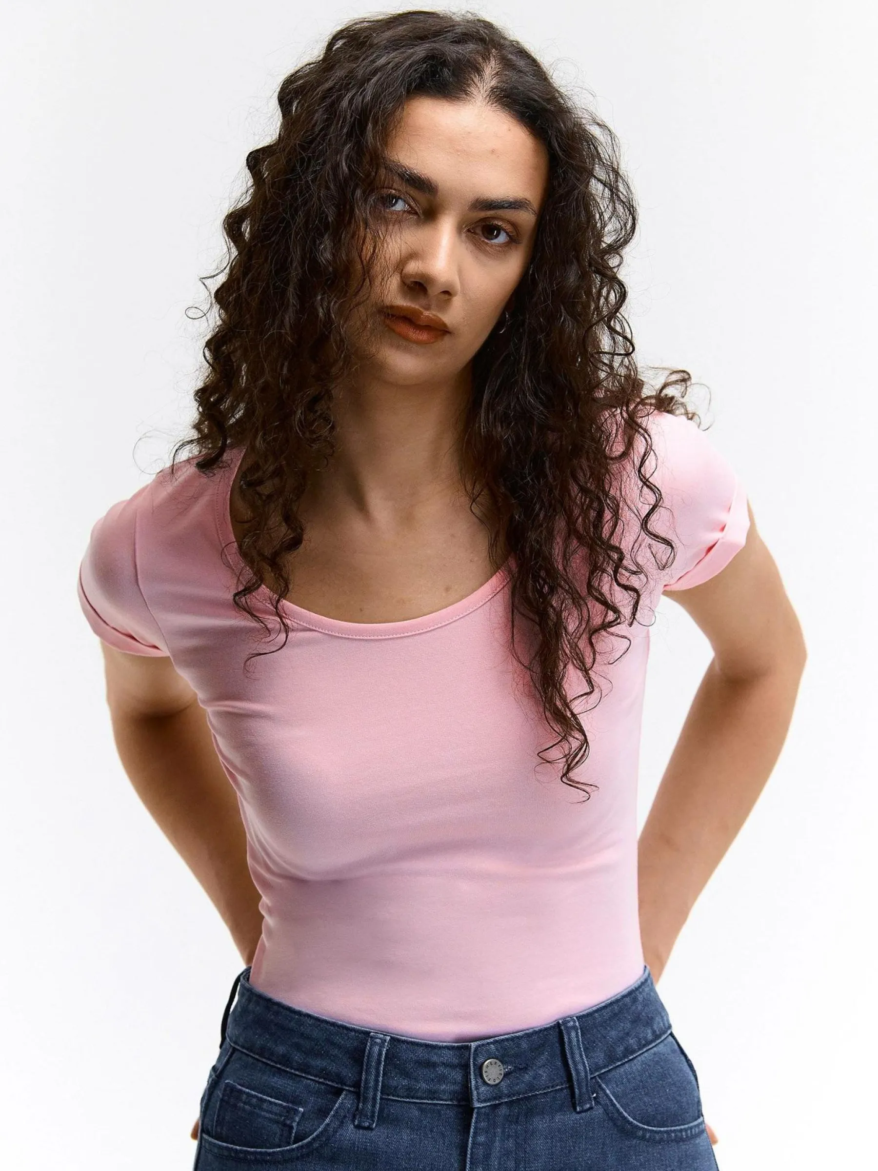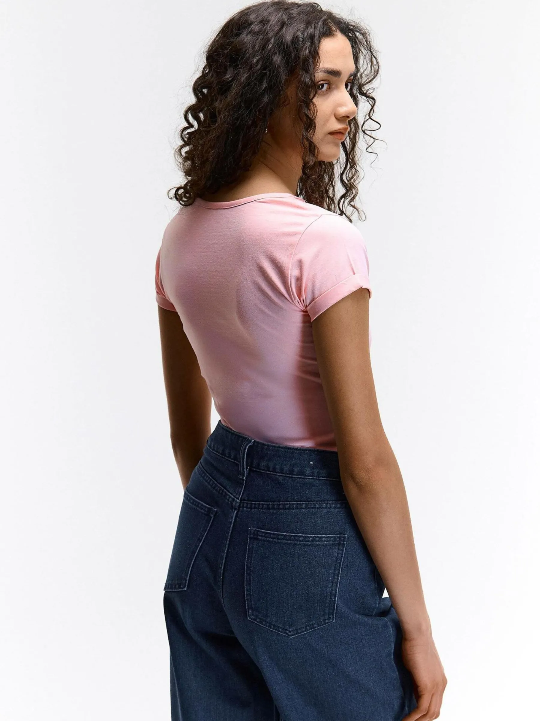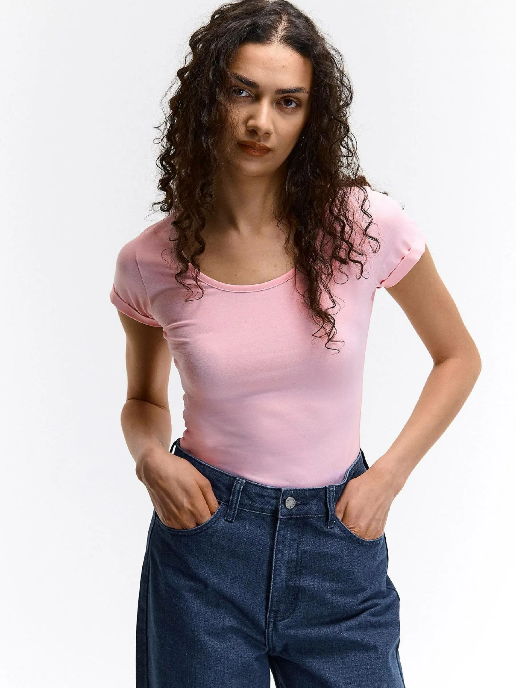 Kolor: różowyKrój: regularTyp: koszulkaRekaw: krótki rękawDługość: krótkiPattern style: pojedynczy kolorDetal: …