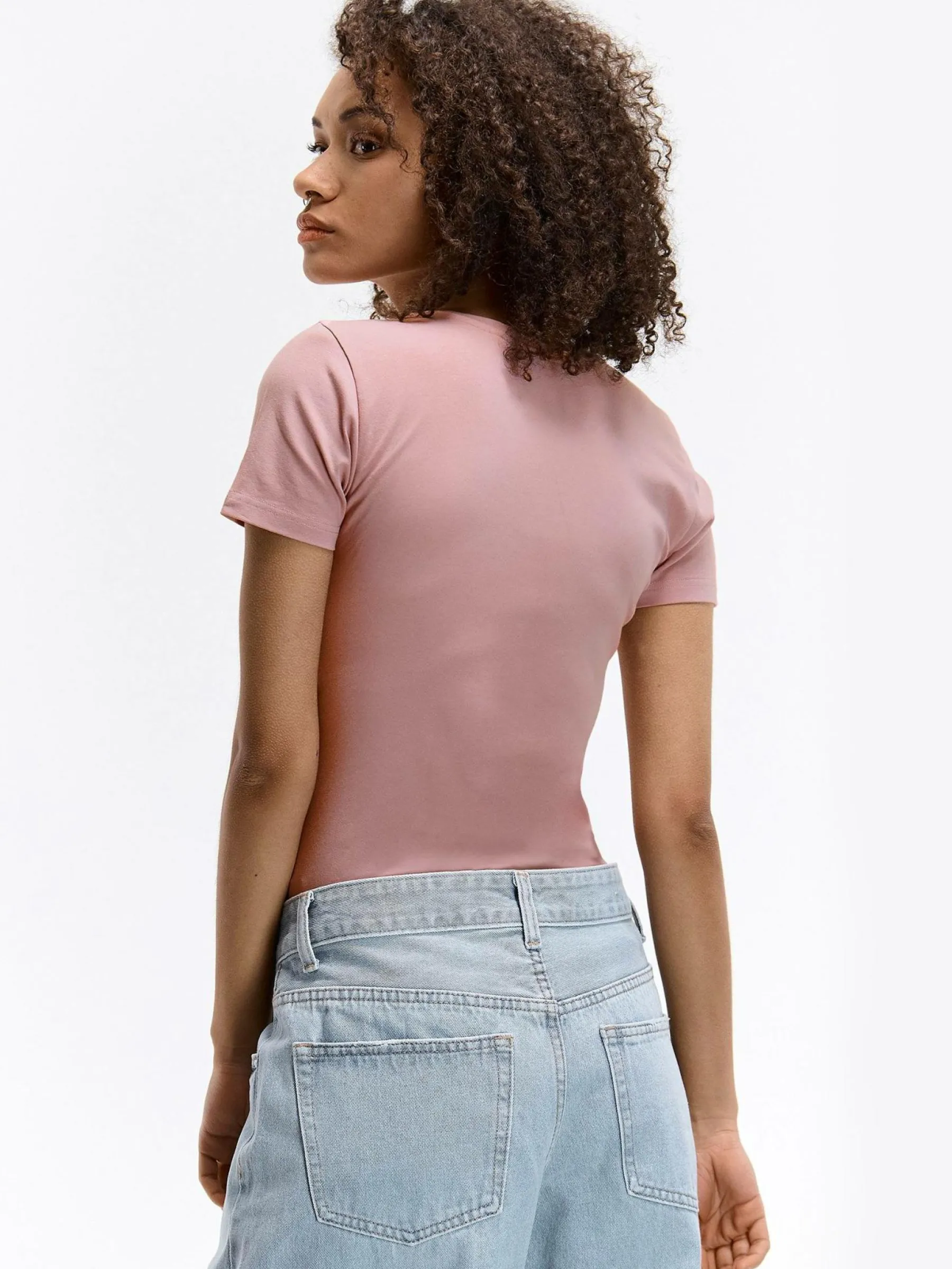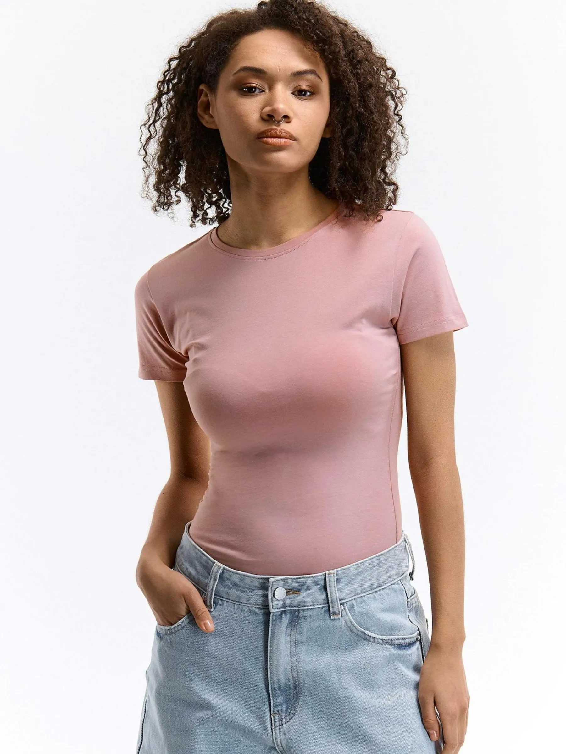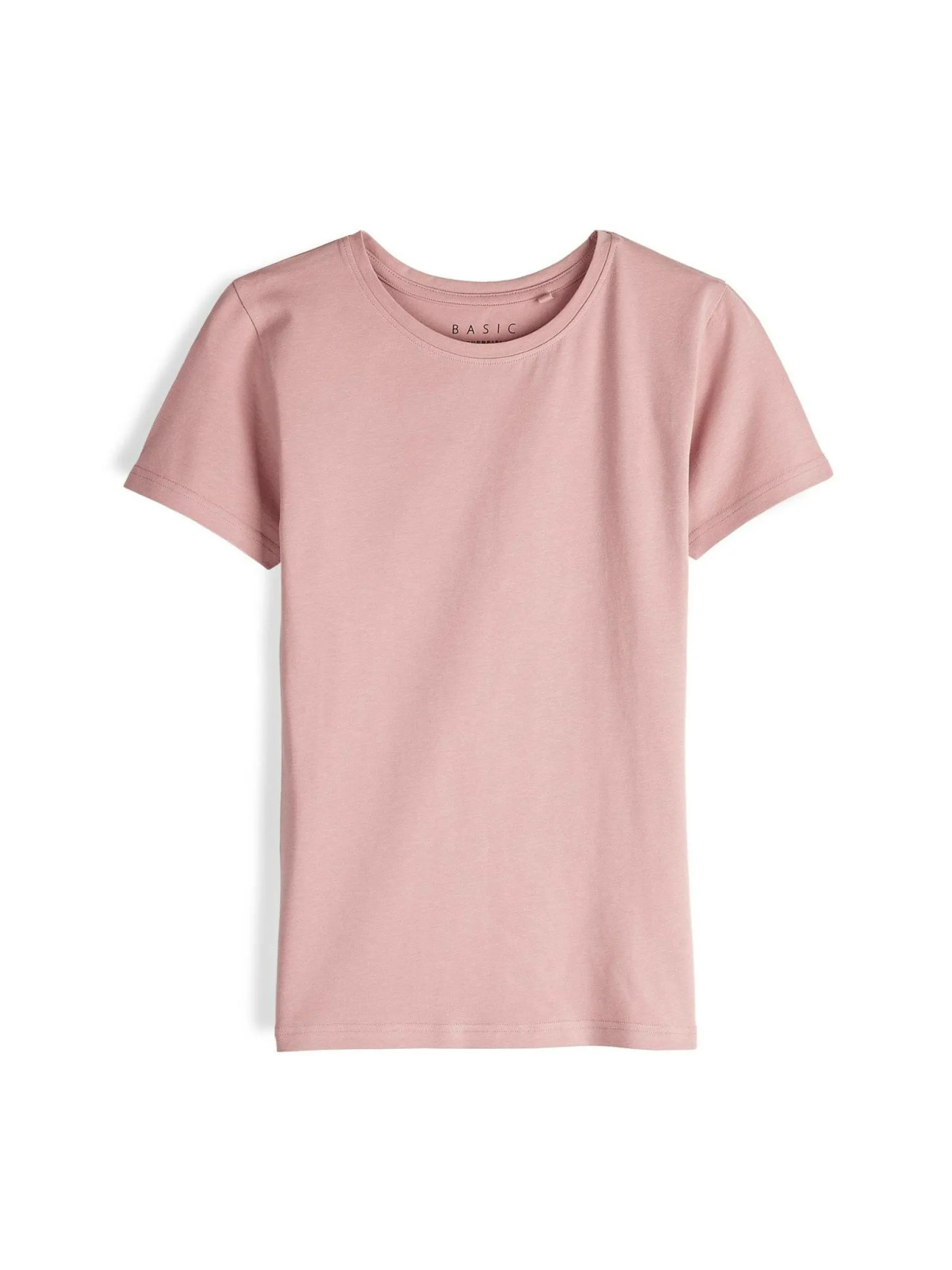 Kolor: różowyKrój: podstawowyTyp: koszulkaRekaw: krótki rękawDługość: krótkiPattern style: pojedynczy kolorDeta…