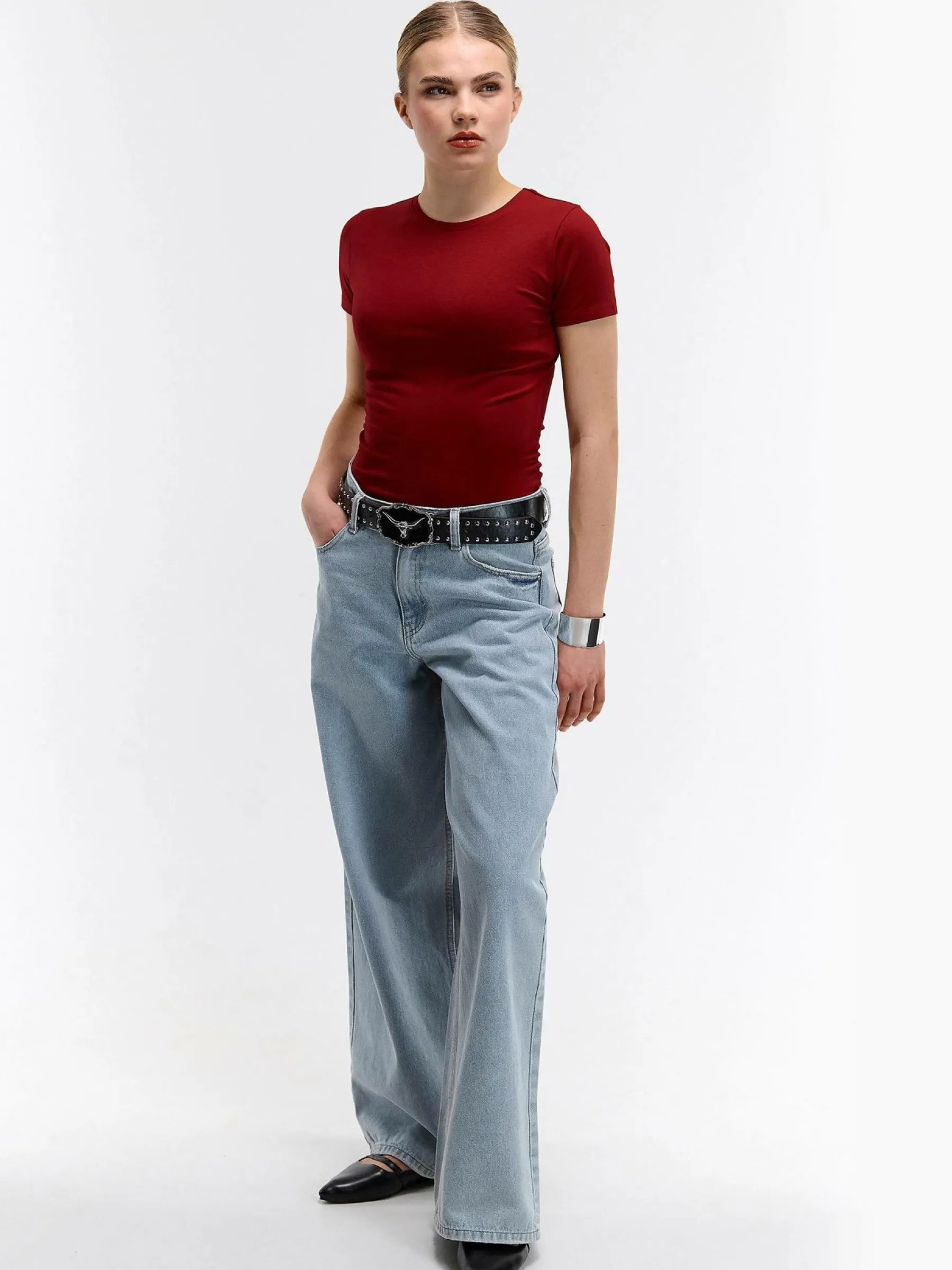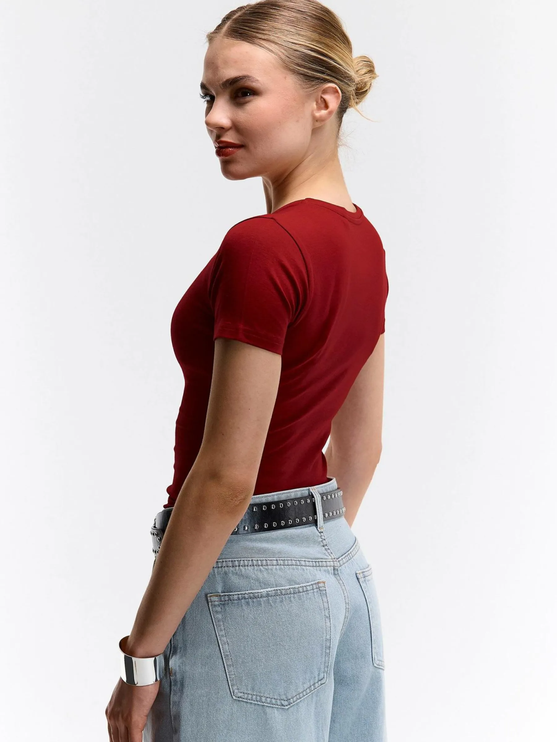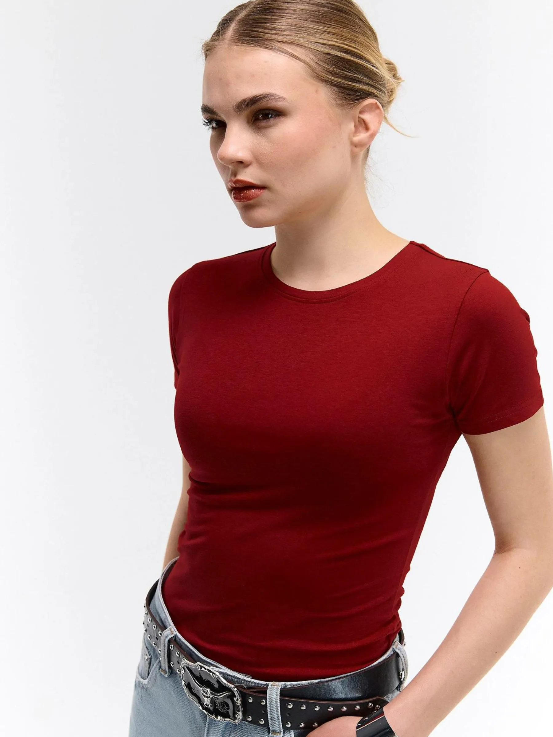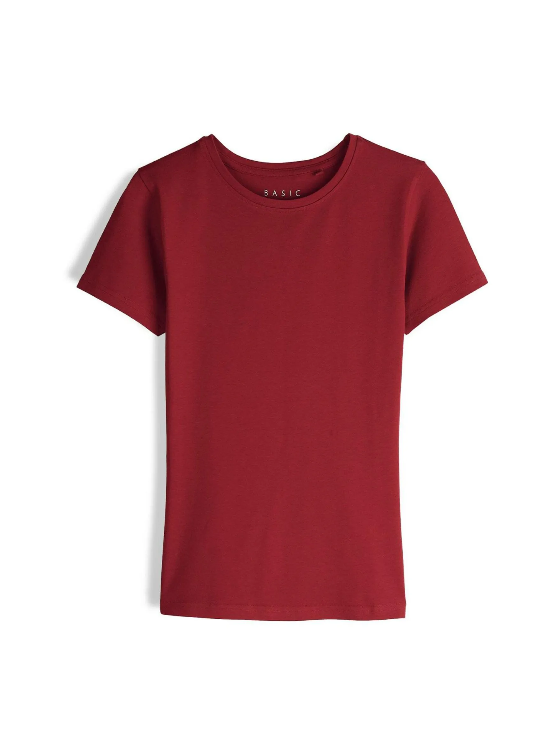 Kolor: czerwonyKrój: podstawowyTyp: koszulkaRekaw: krótki rękawDługość: krótkiPattern style: pojedynczy kolorDeta…