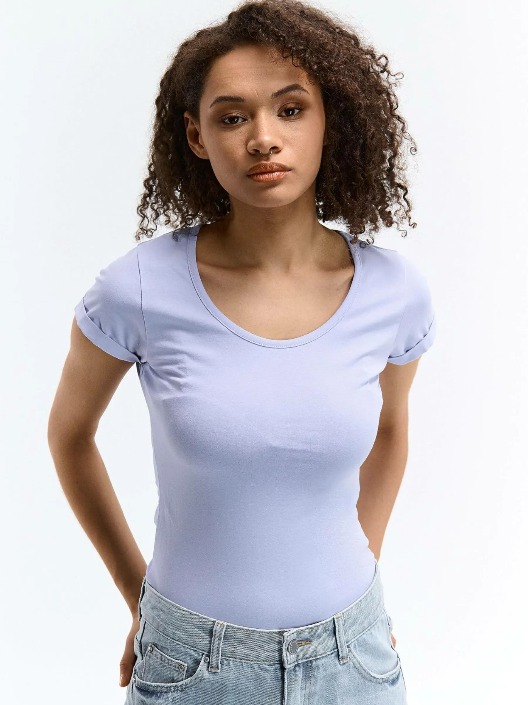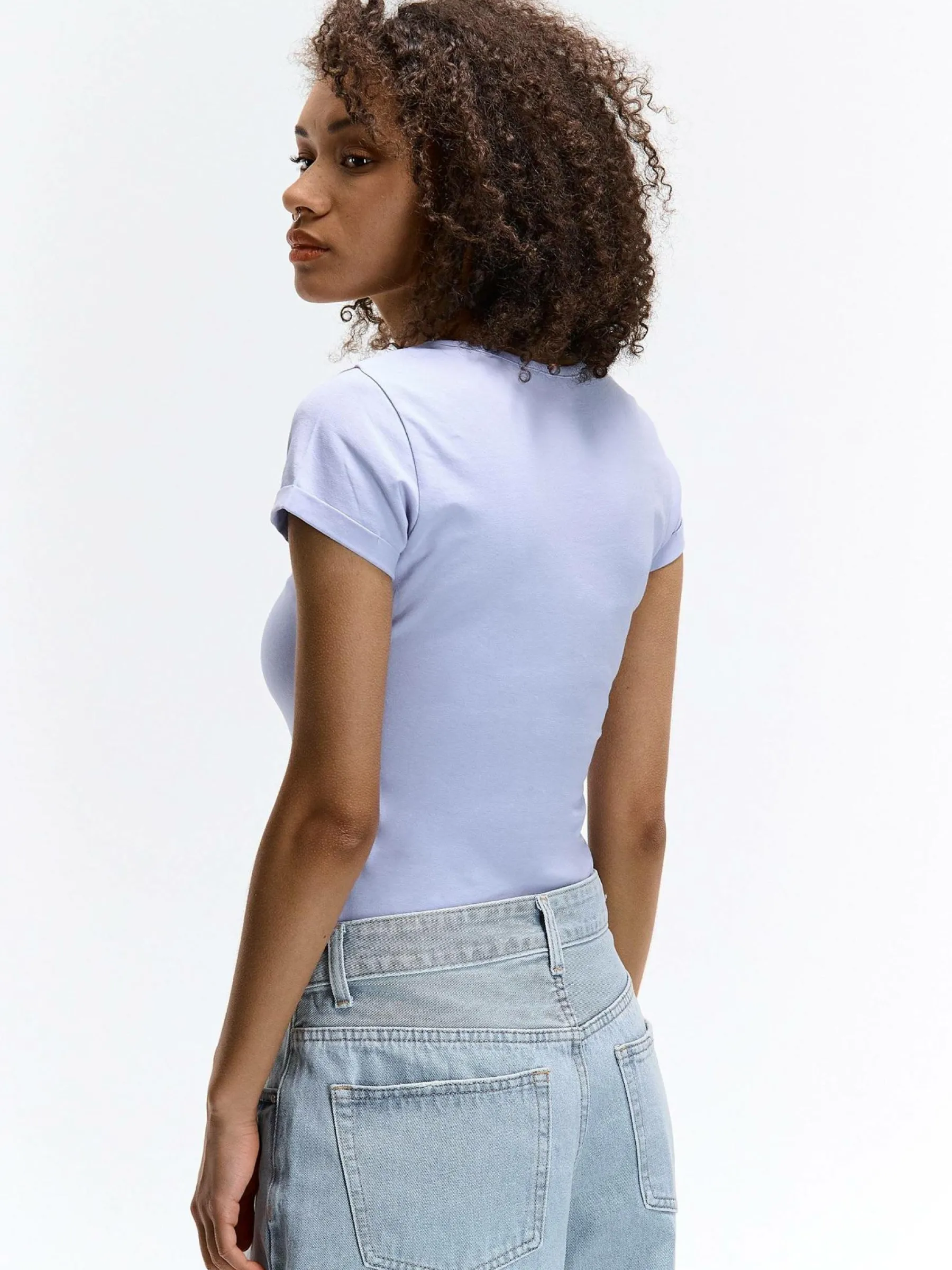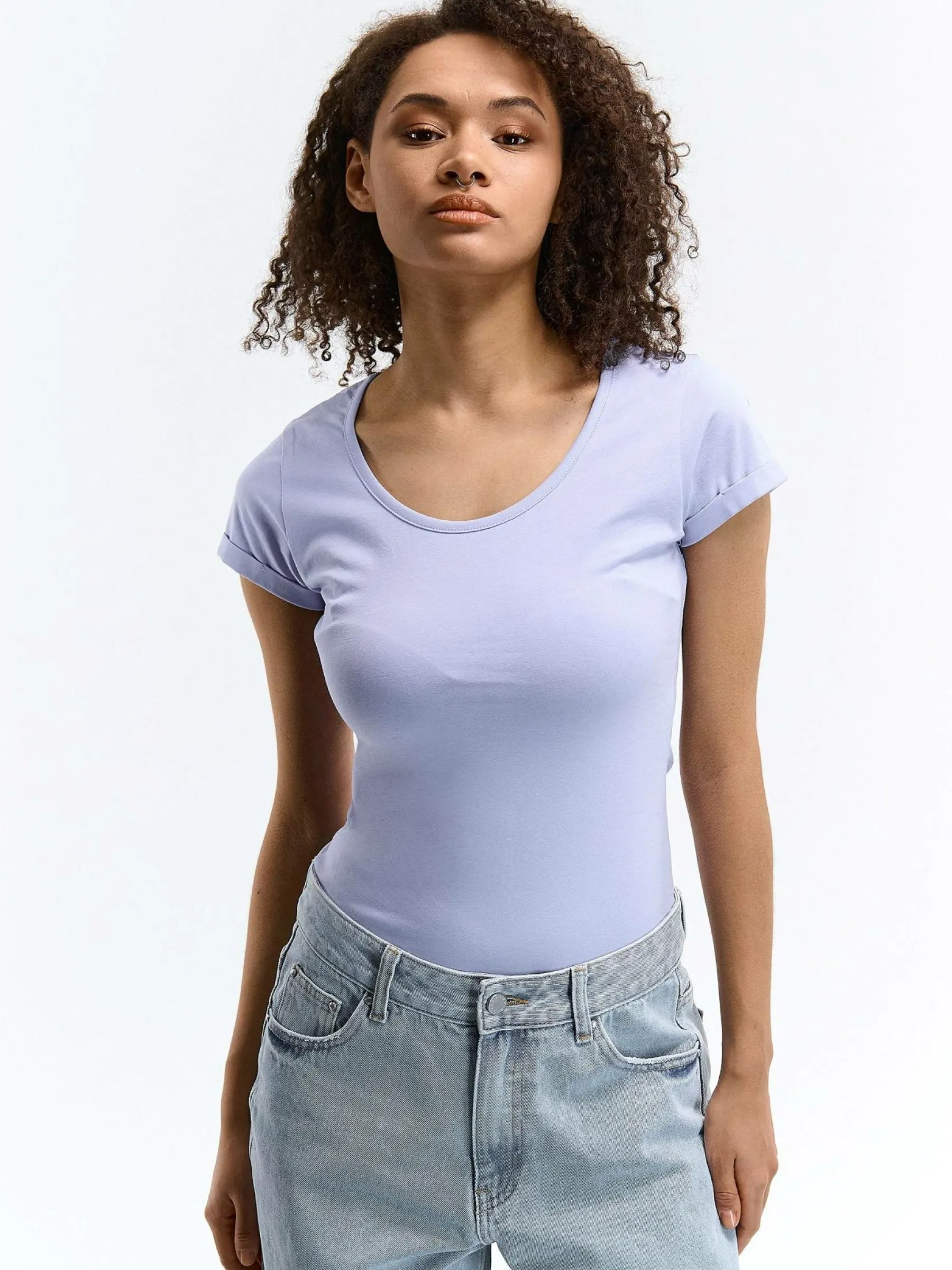 Kolor: purpurowyKrój: regularTyp: koszulkaRekaw: krótki rękawDługość: krótkiPattern style: pojedynczy kolorDetal:…