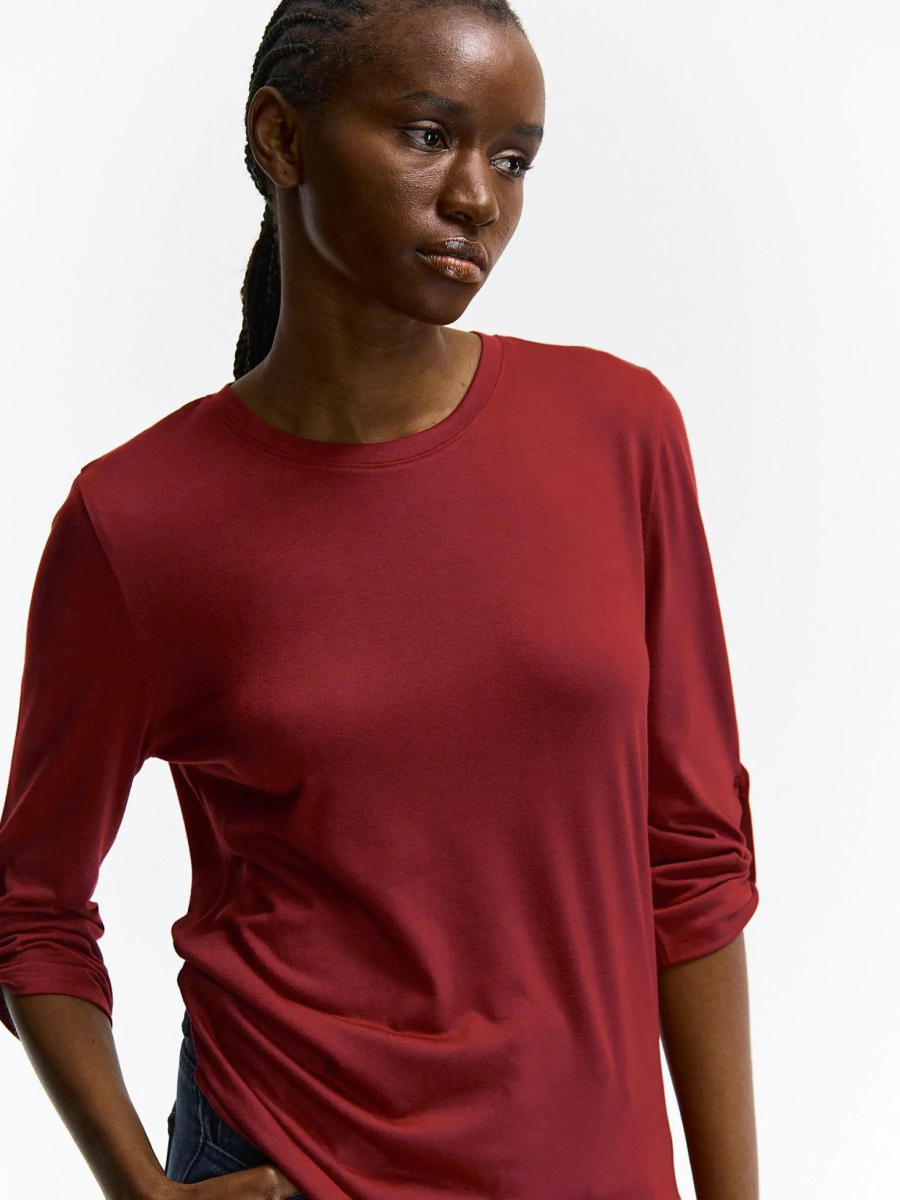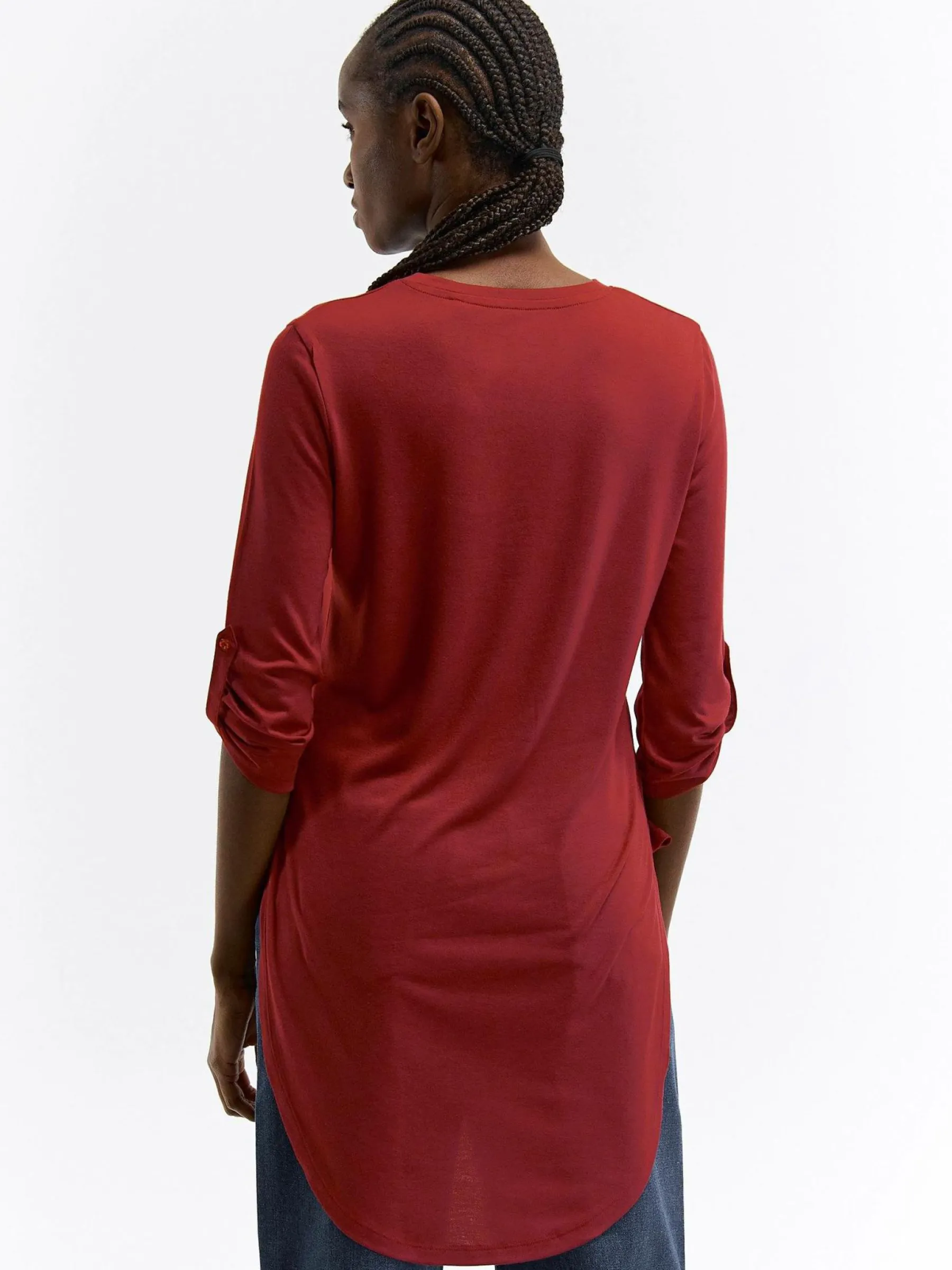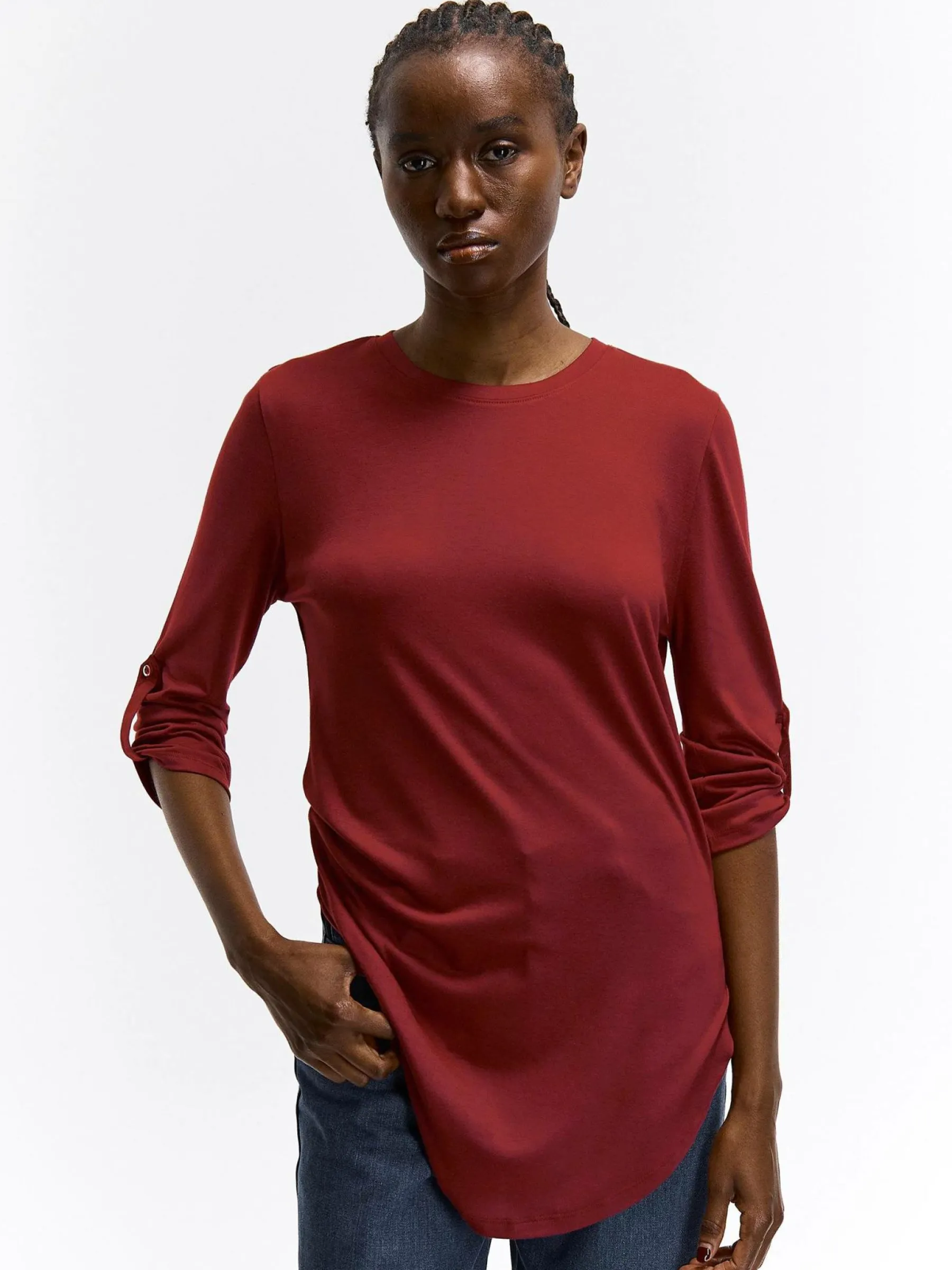Kolor: burgundyKrój: asymetryczneTyp: koszulkaRekaw: rękaw 3/4Długość: dlugiePattern style: pojedynczy kolorDetal: …