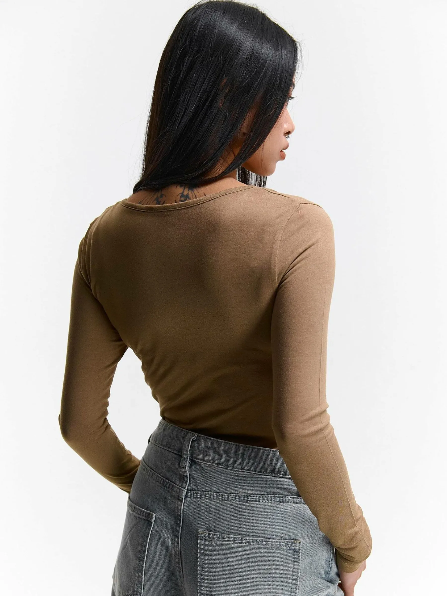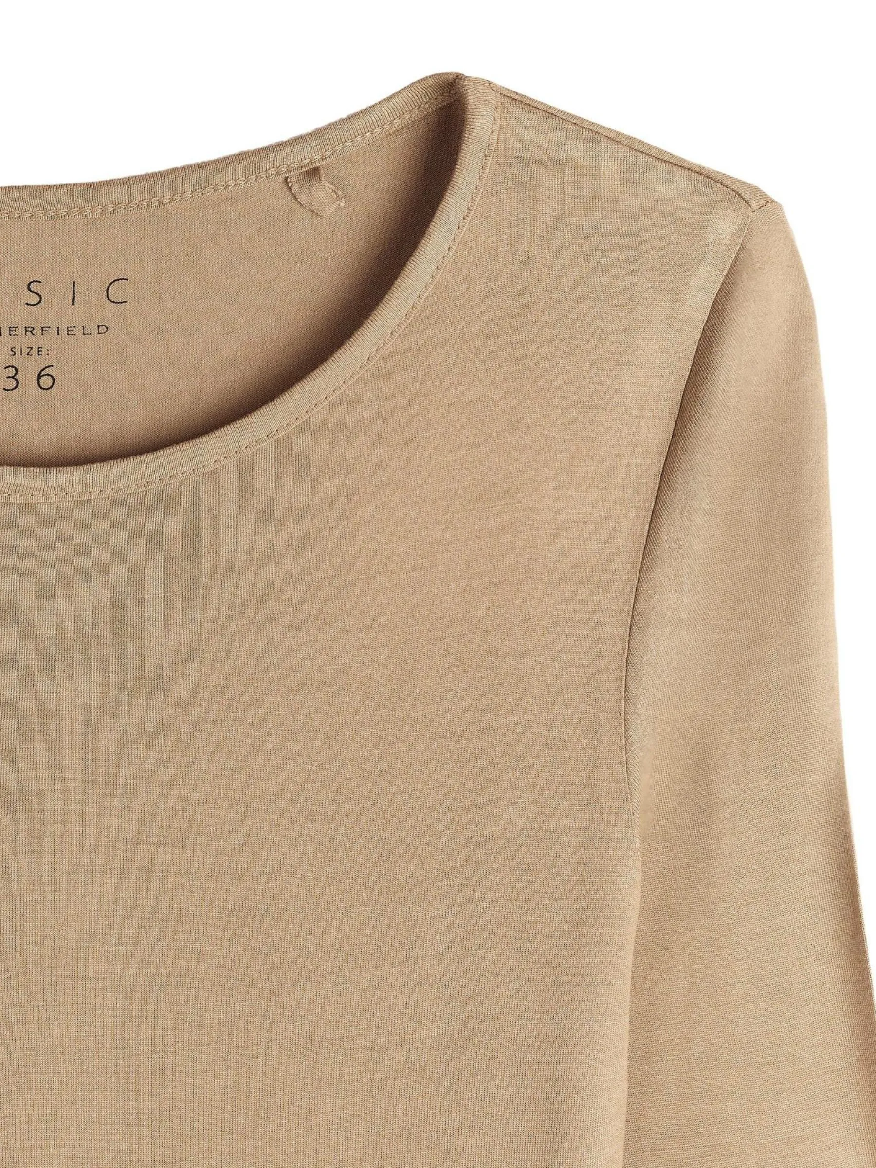 Kolor: beżowy, brązowyKrój: podstawowyTyp: koszulkaRekaw: długi rękawDługość: krótkiPattern style: pojedynczy k…