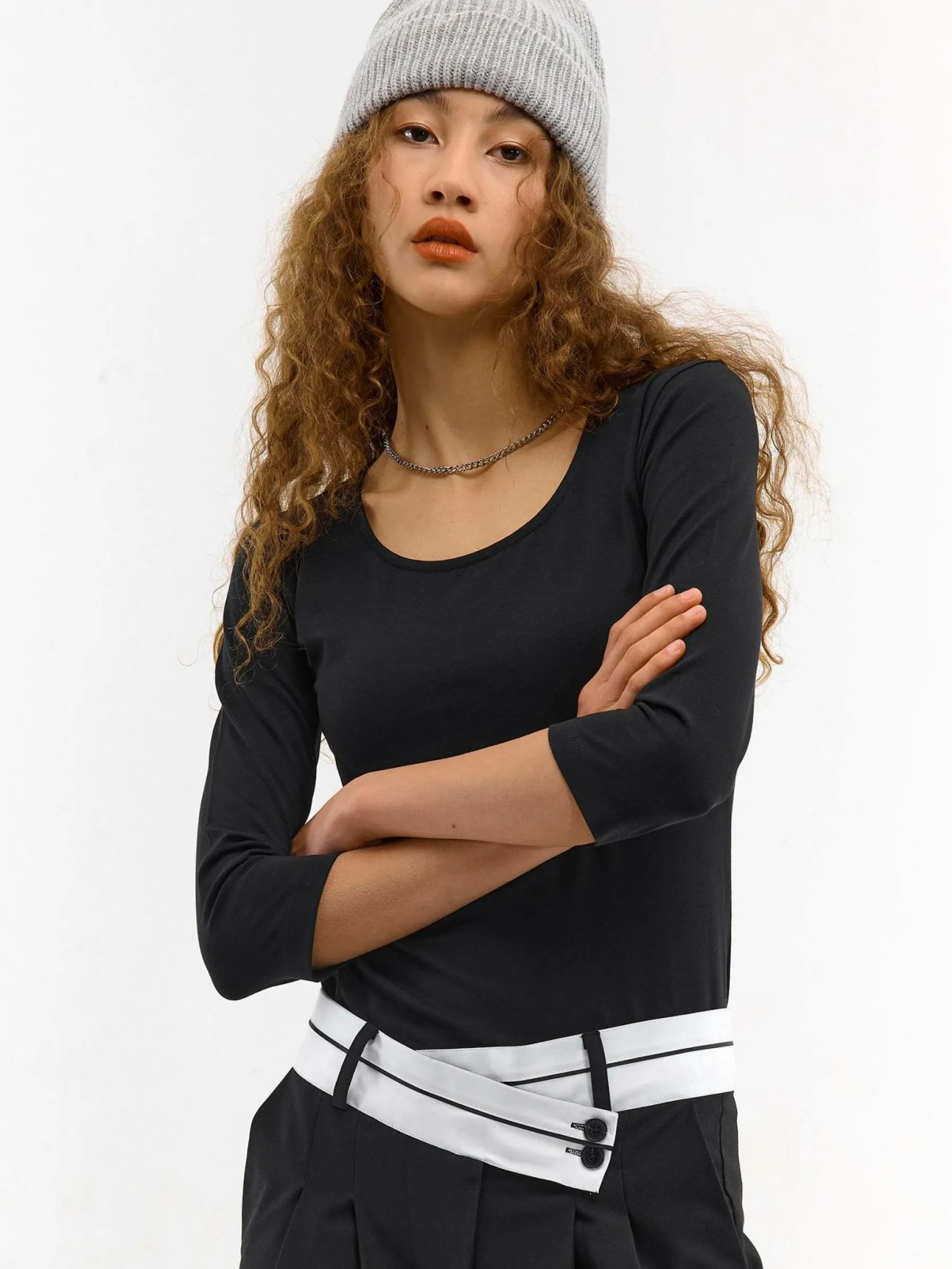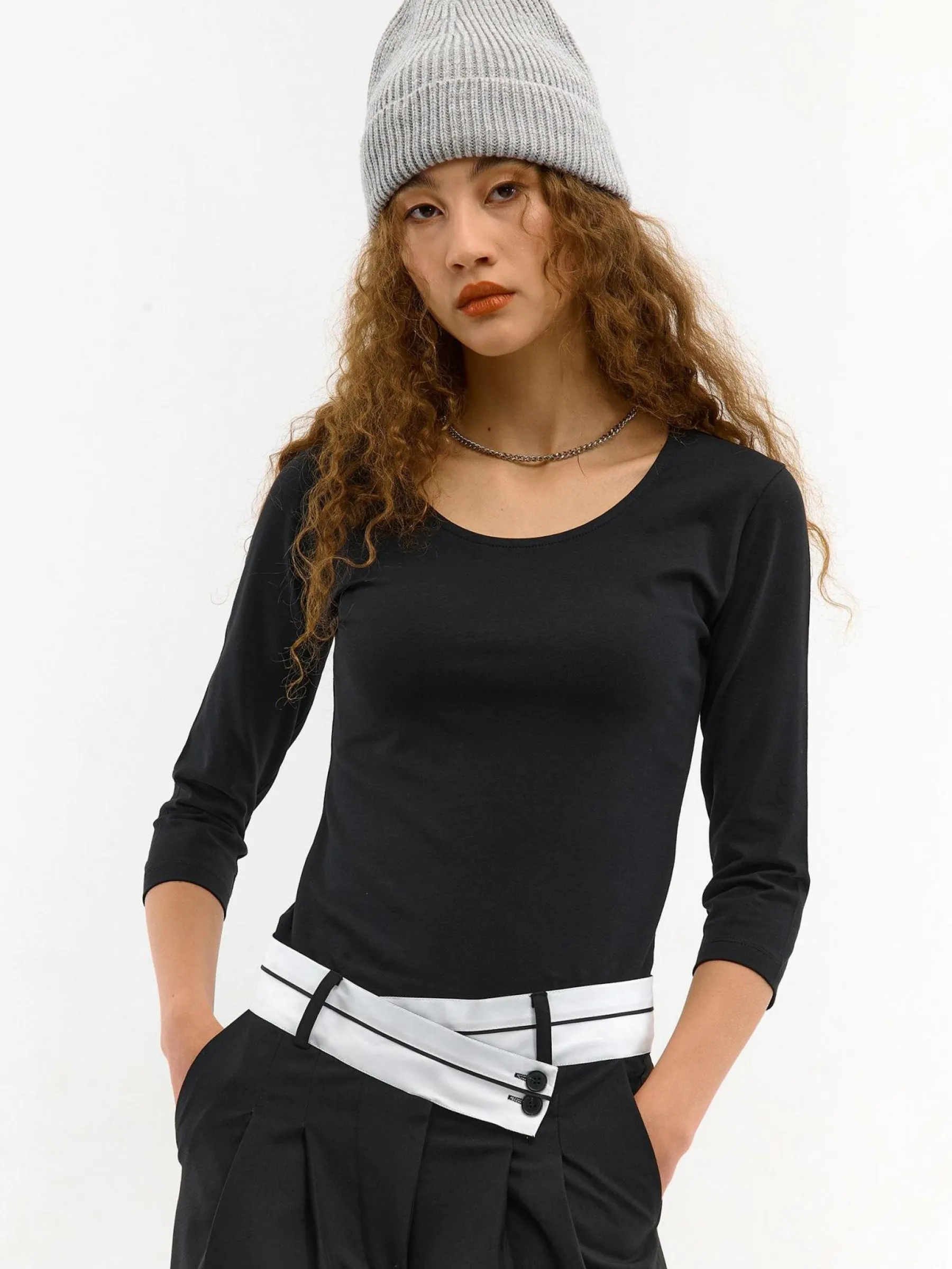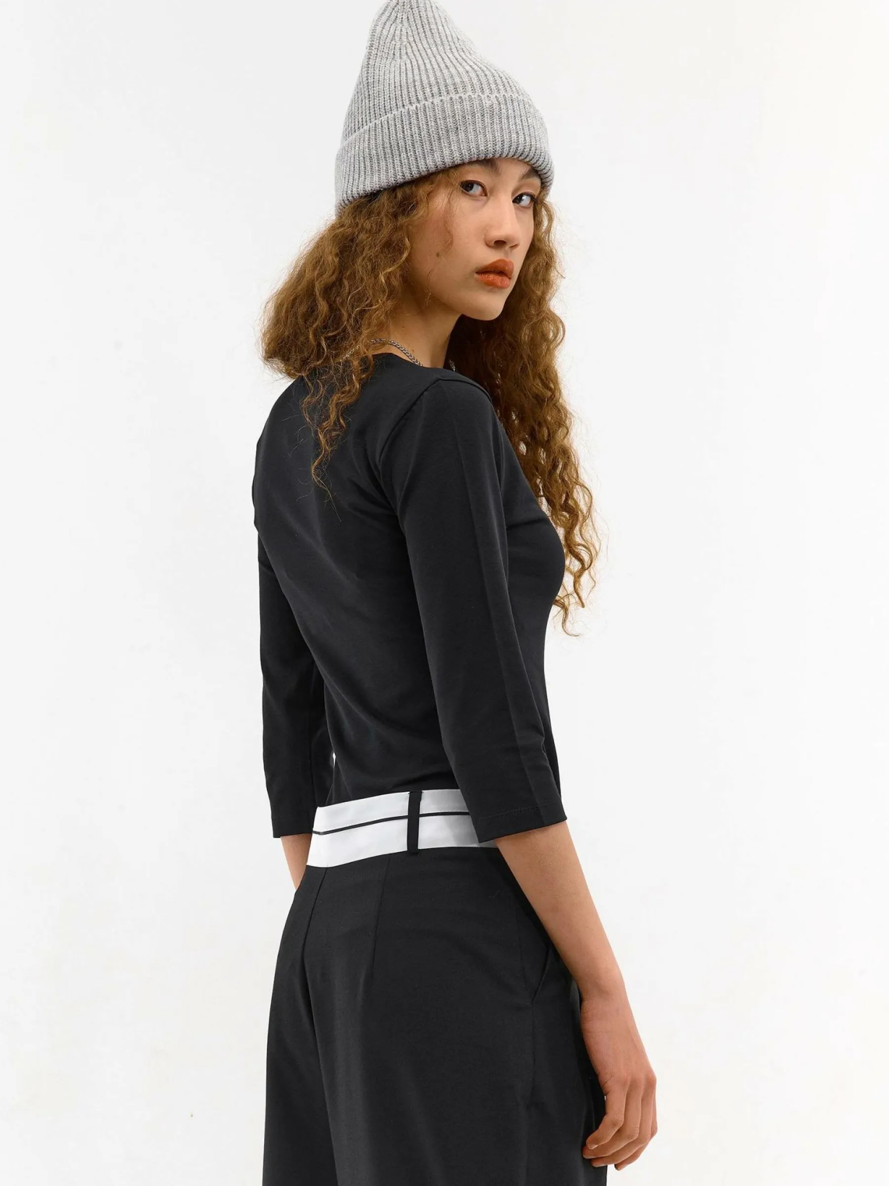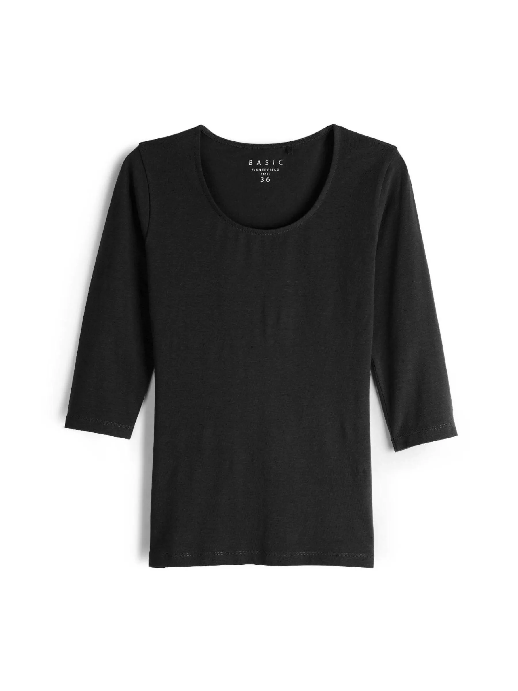 Kolor: czarnyKrój: podstawowyTyp: koszulkaRekaw: rękaw 3/4Długość: krótkiPattern style: pojedynczy kolorDetal: nad…