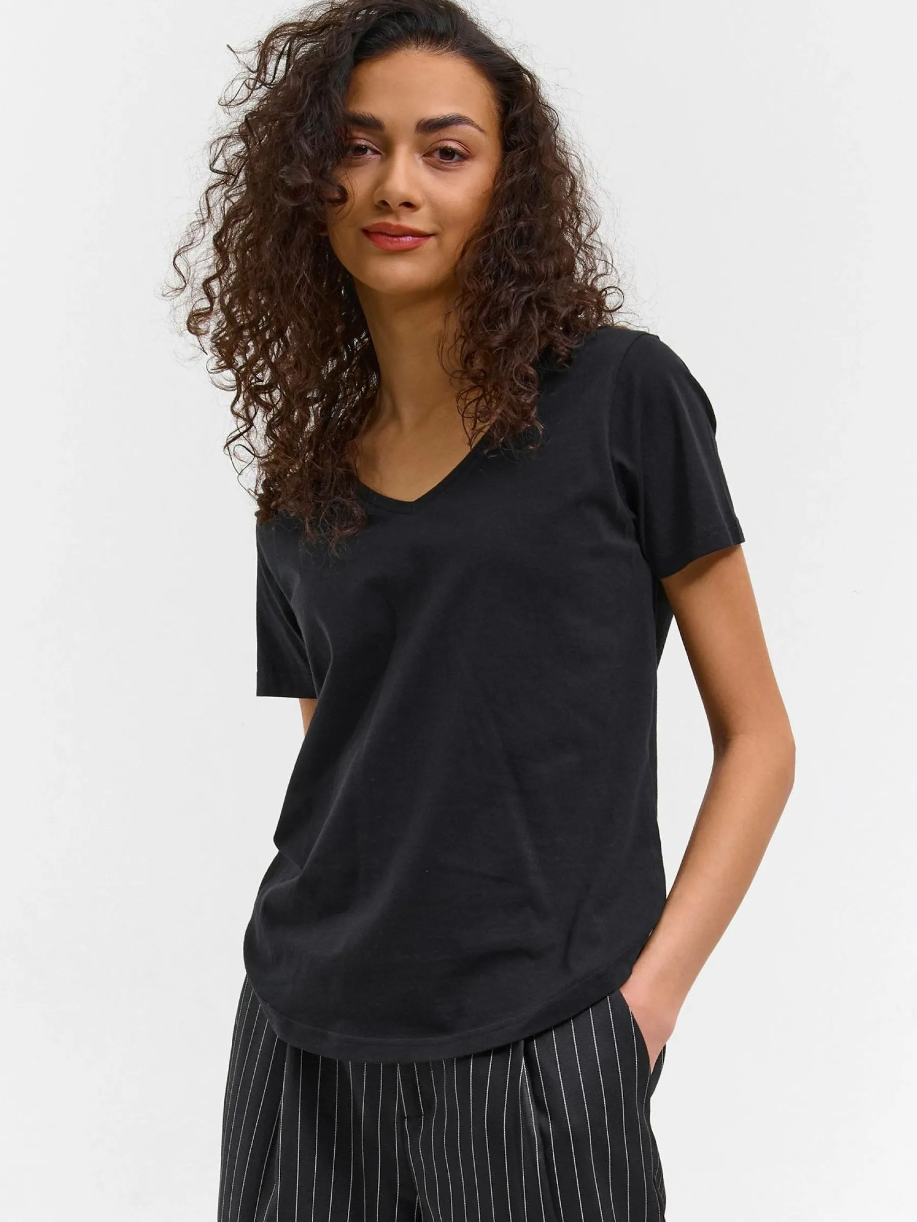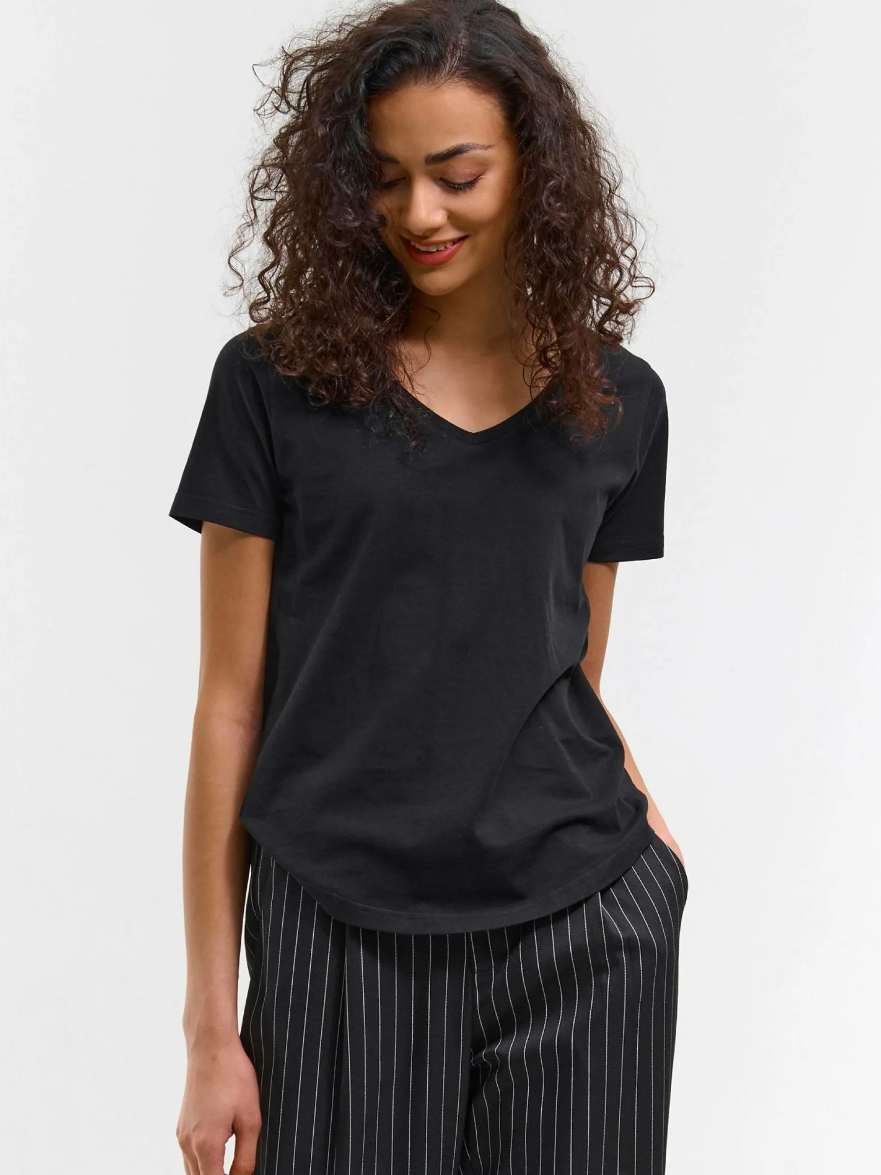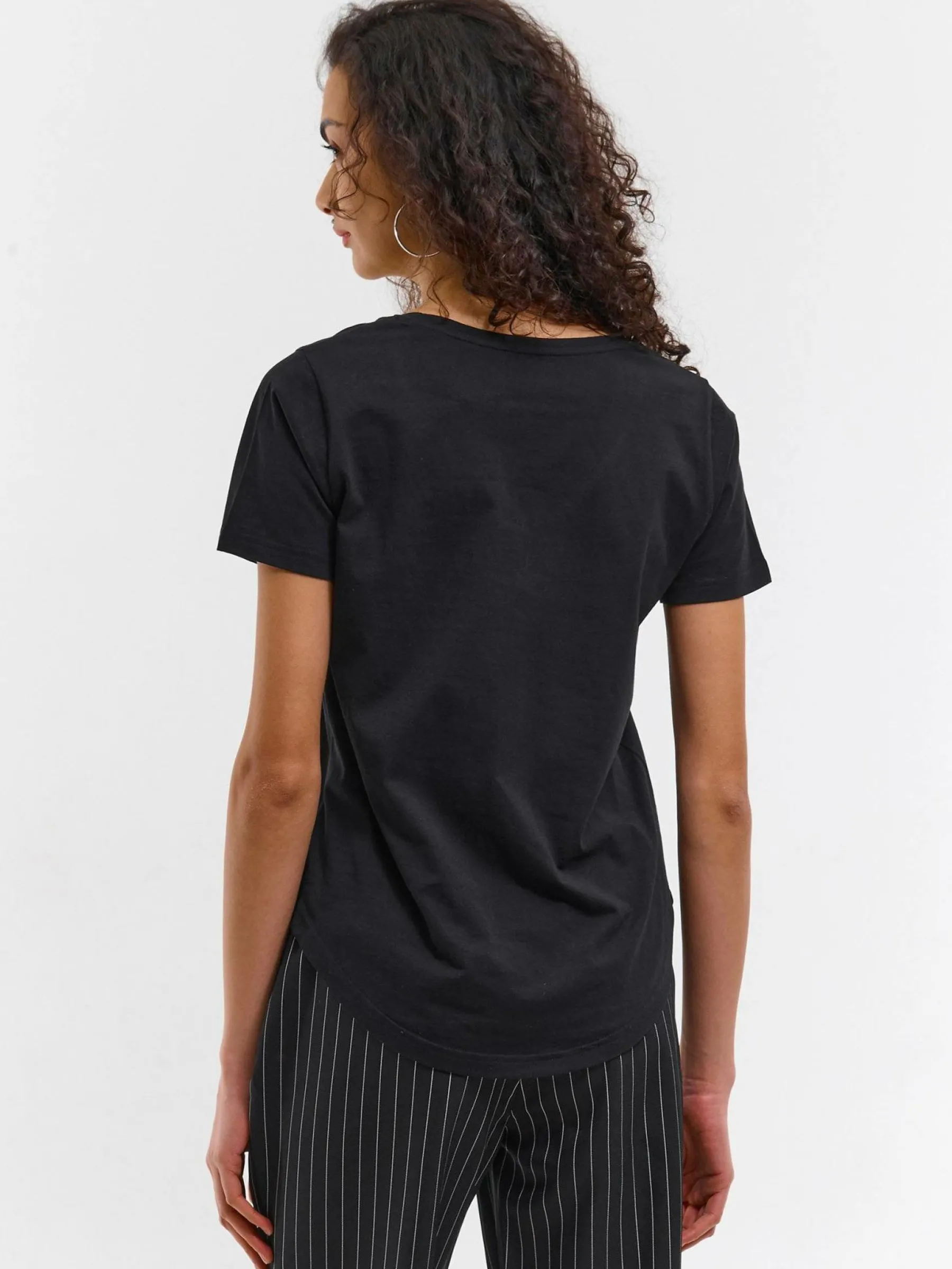 Kolor: czarnyKrój: regularTyp: koszulkaRekaw: krótki rękawDługość: krótkiPattern style: pojedynczy kolorDetal: na…