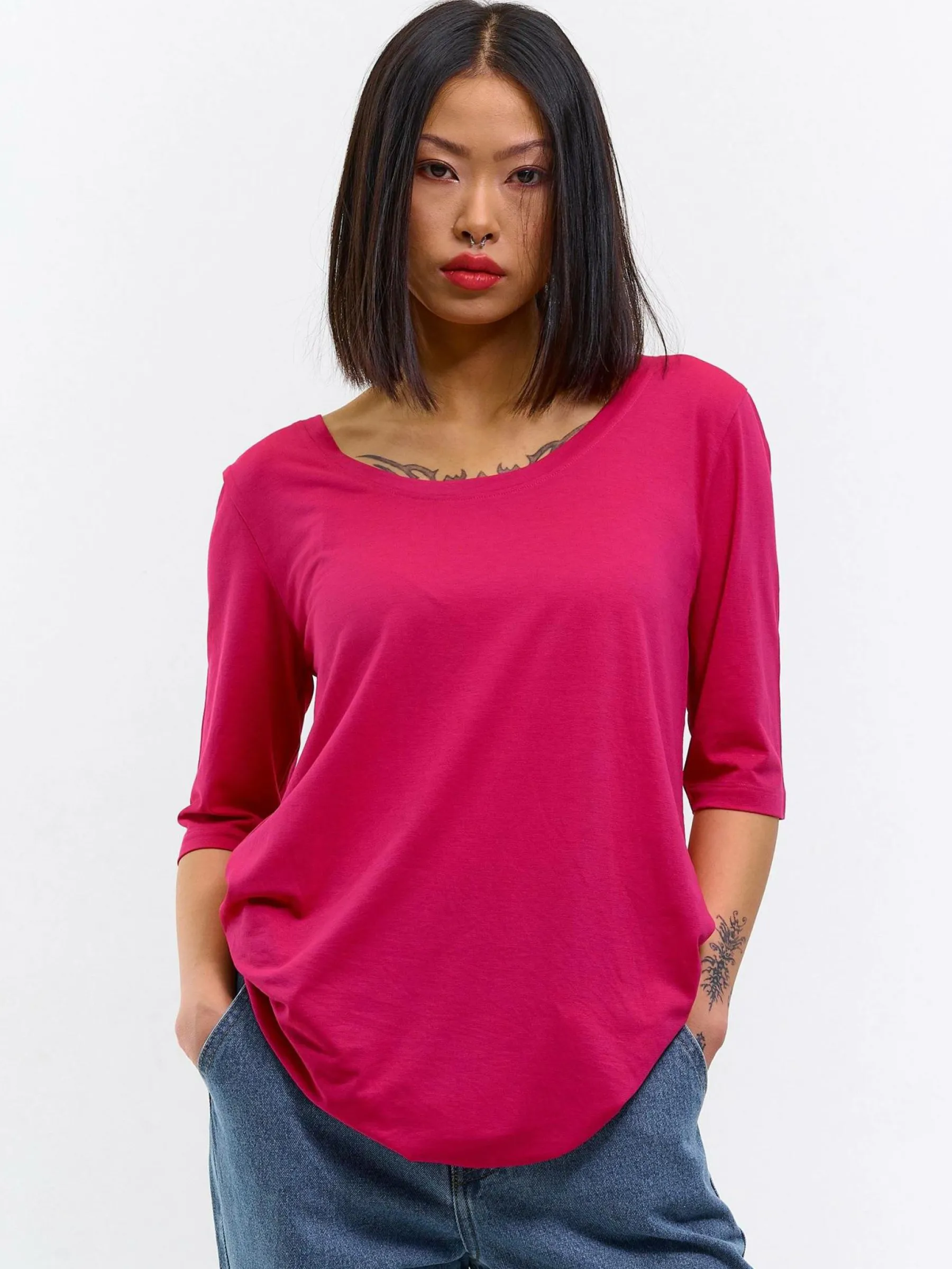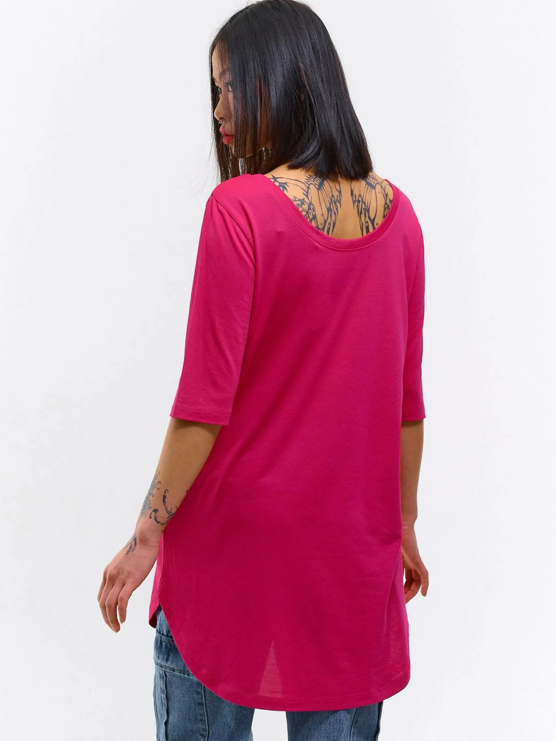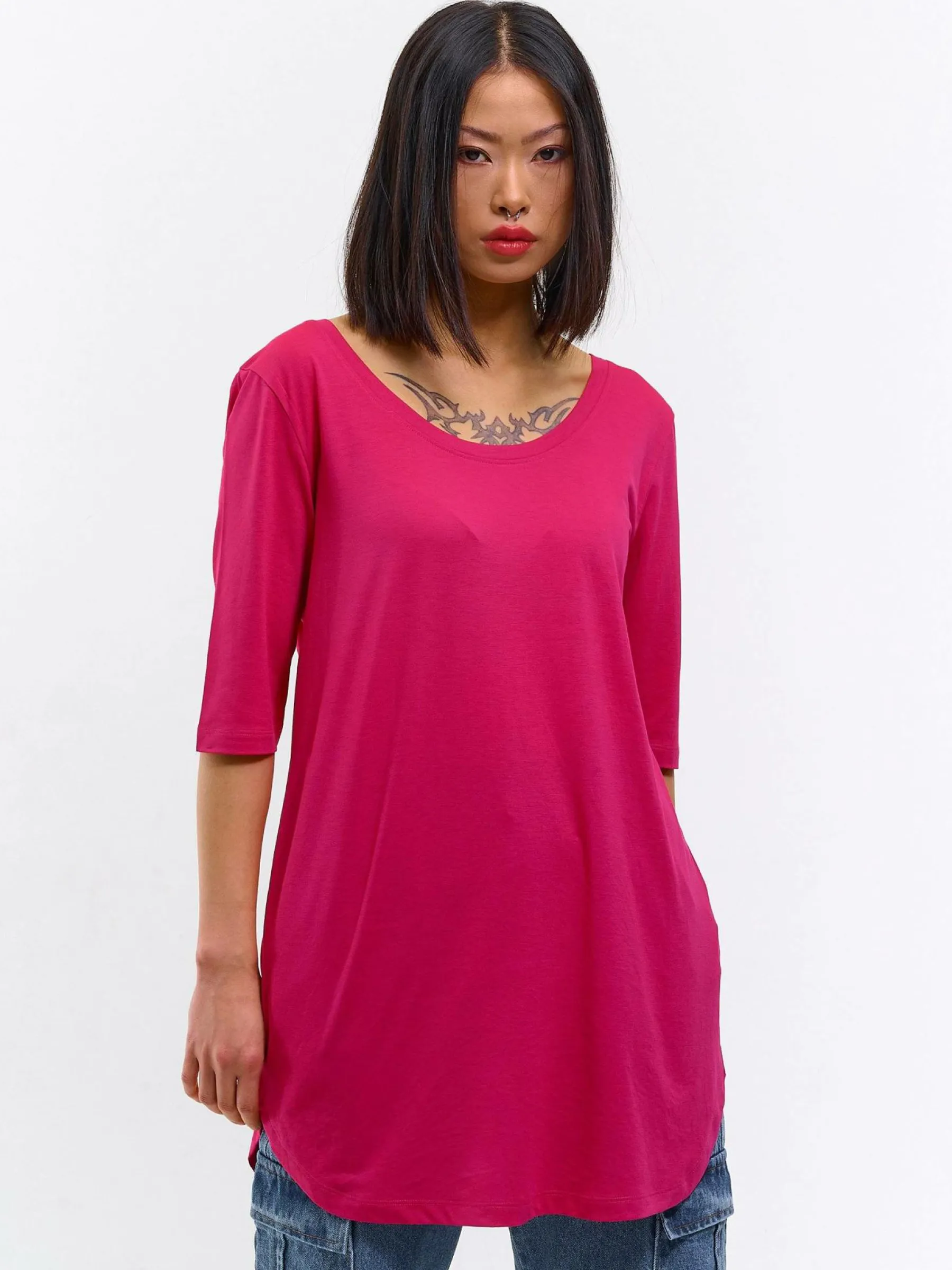 Kolor: różowyKrój: asymetryczneTyp: koszulkaRekaw: rękaw 3/4Długość: dlugiePattern style: pojedynczy kolorDetal: …