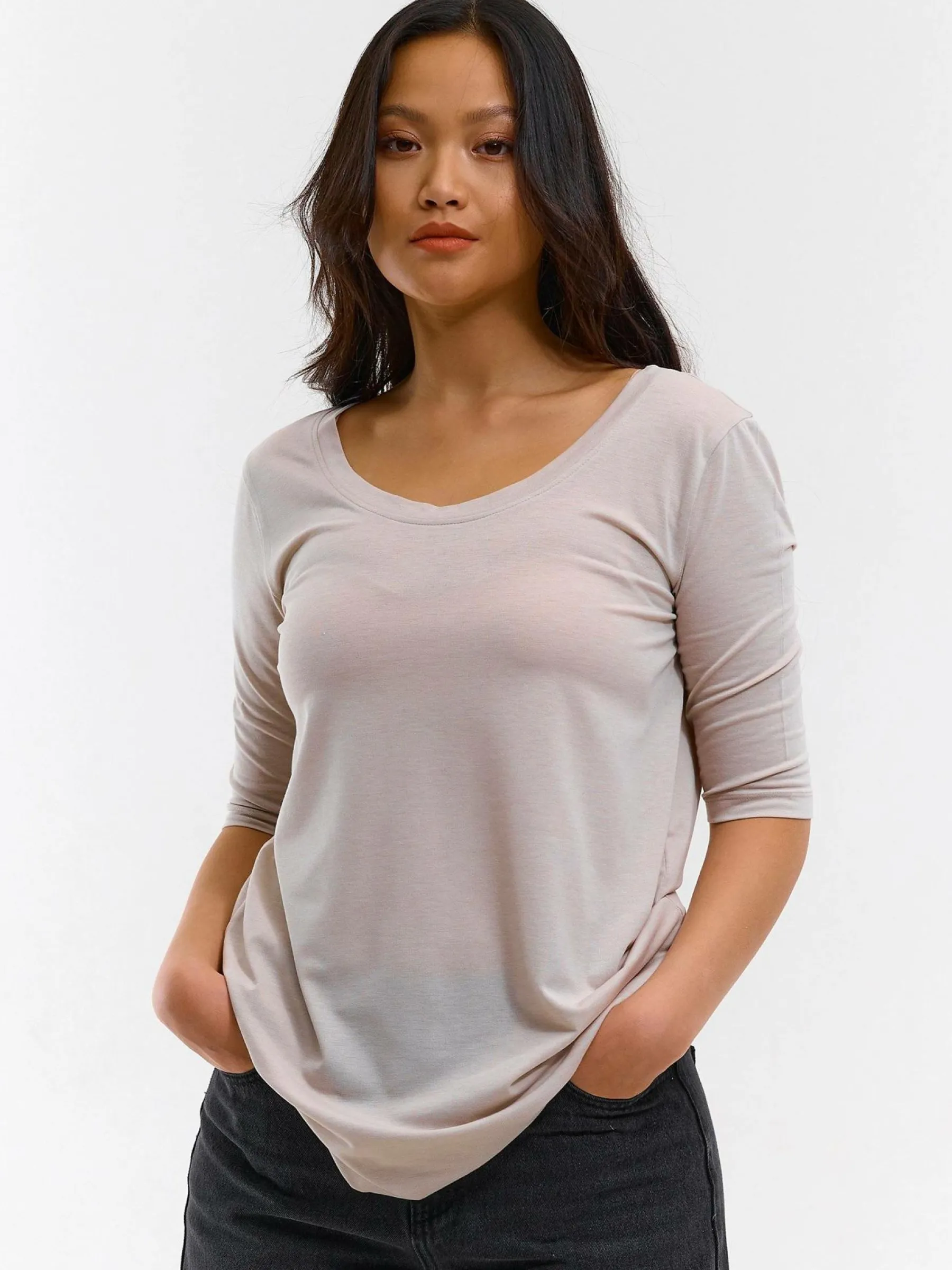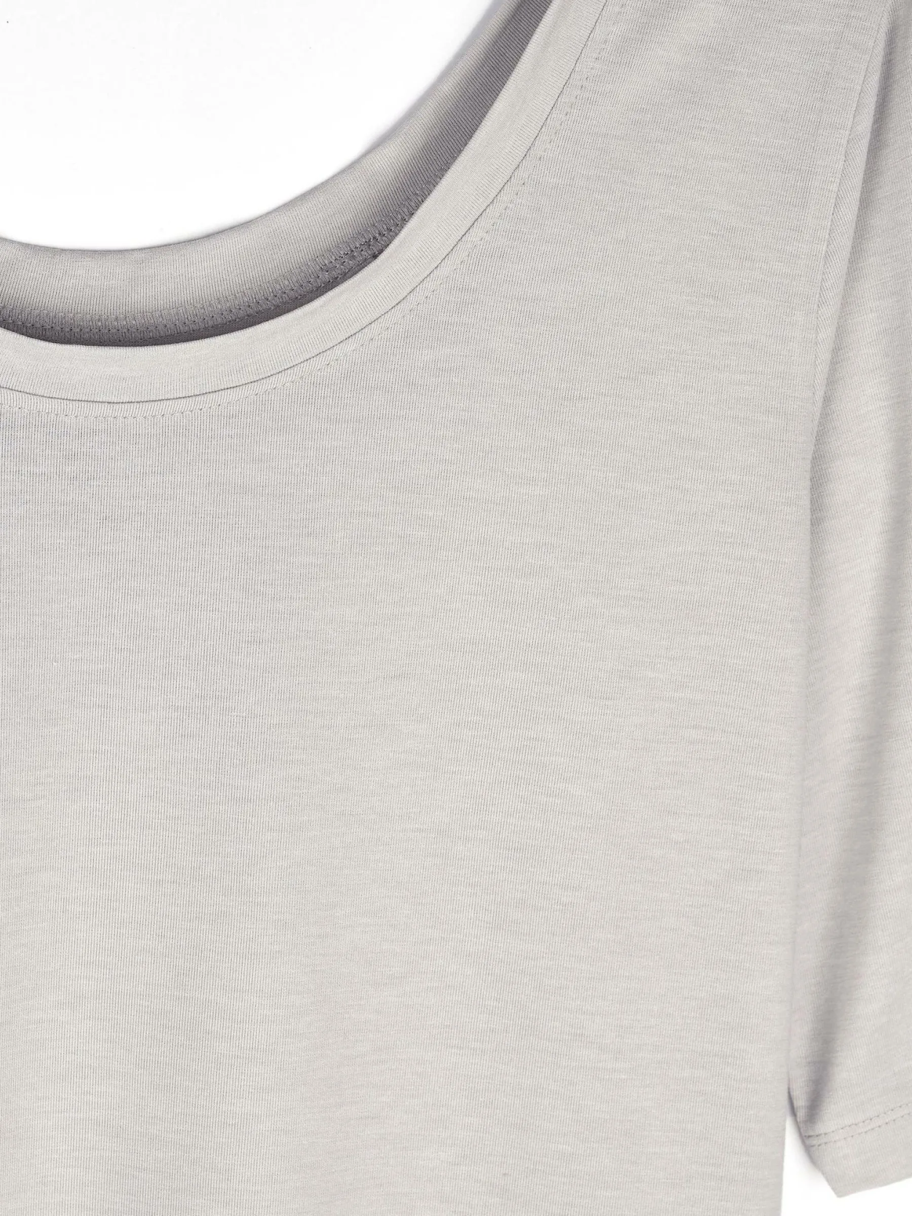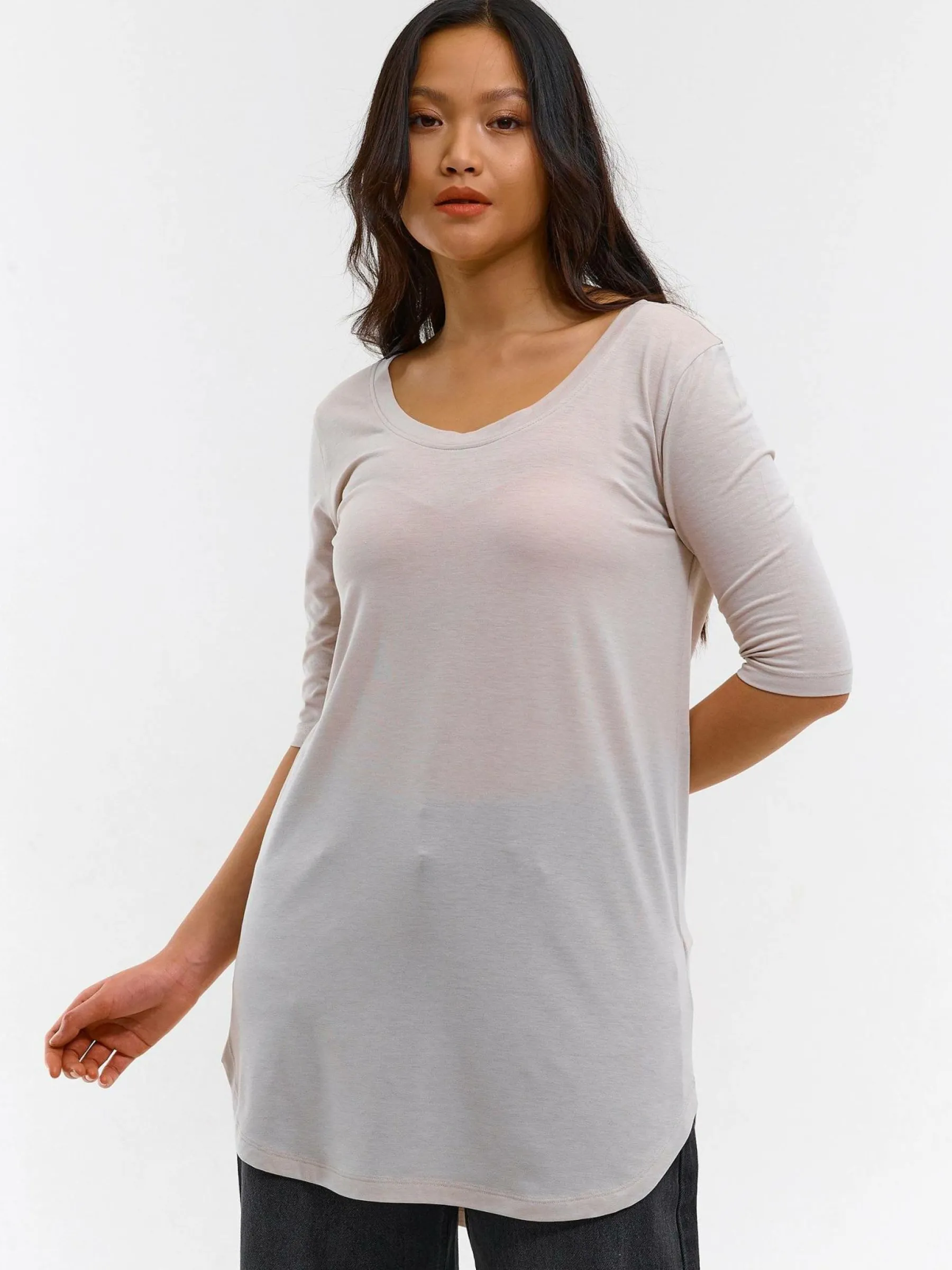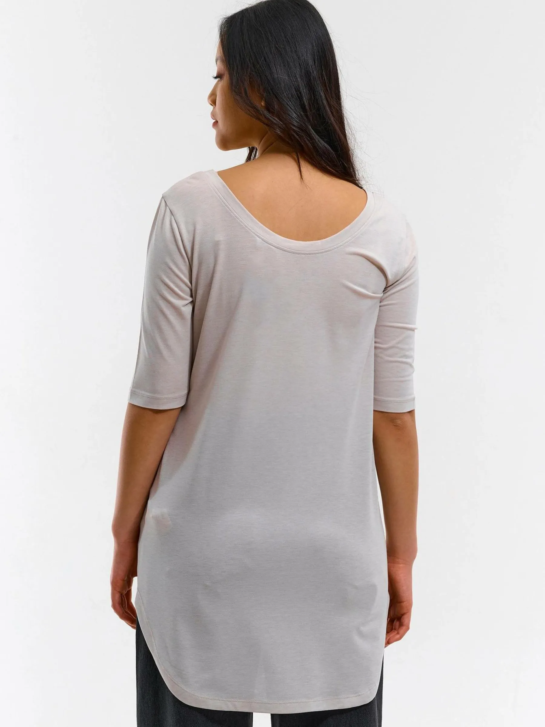 Kolor: beżowy, szaryKrój: asymetryczneTyp: koszulkaRekaw: rękaw 3/4Długość: dlugiePattern style: pojedynczy kolorD…