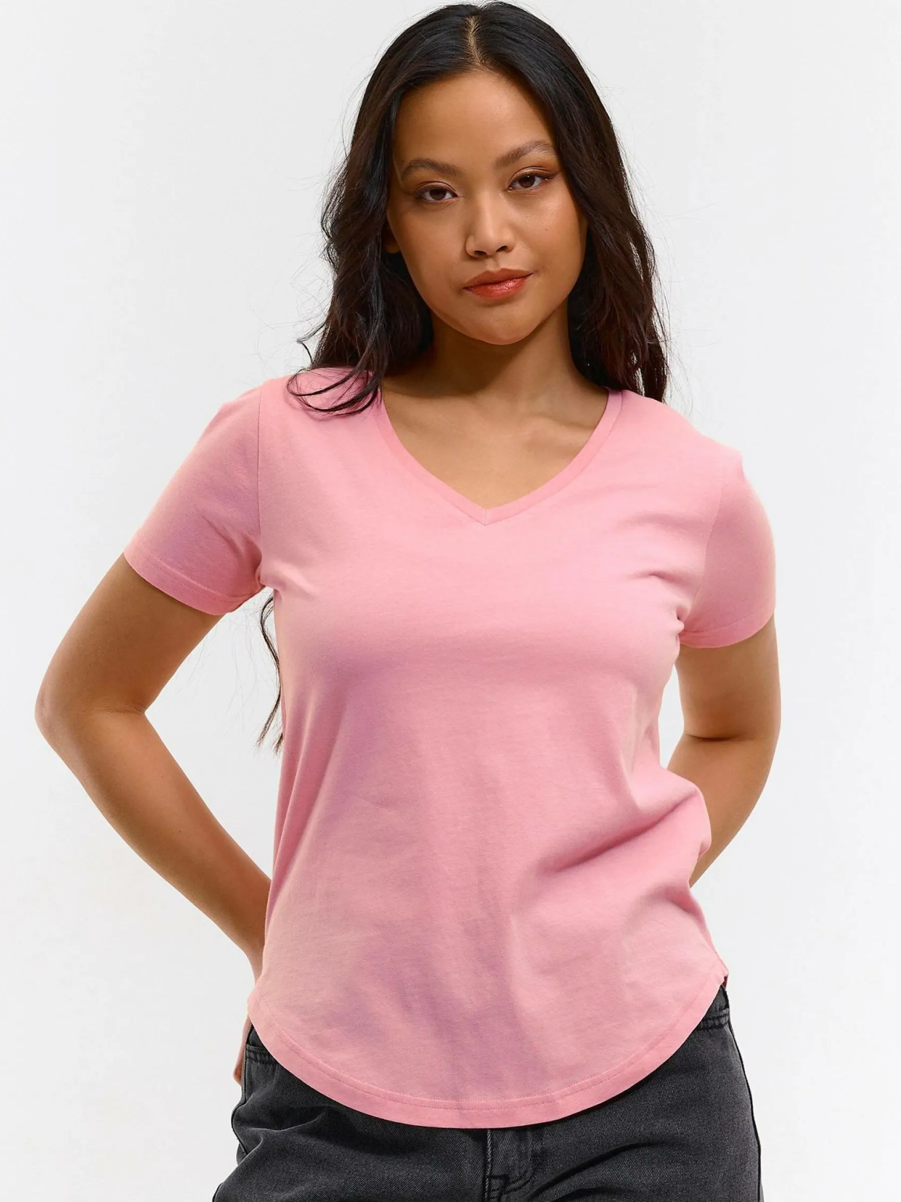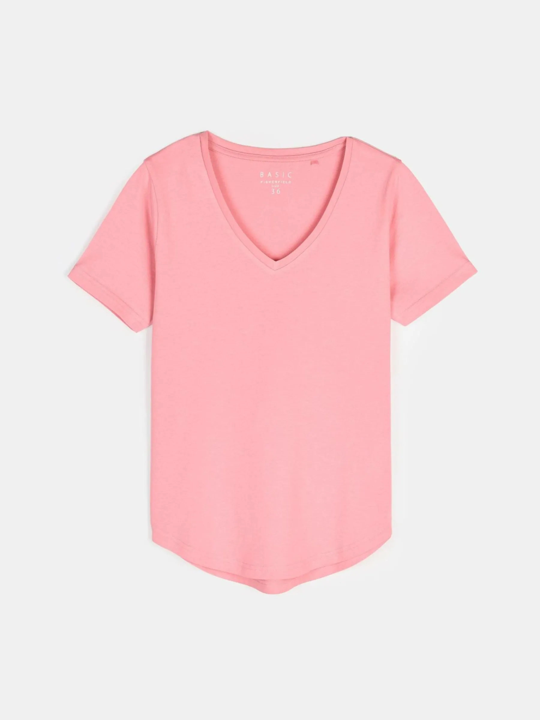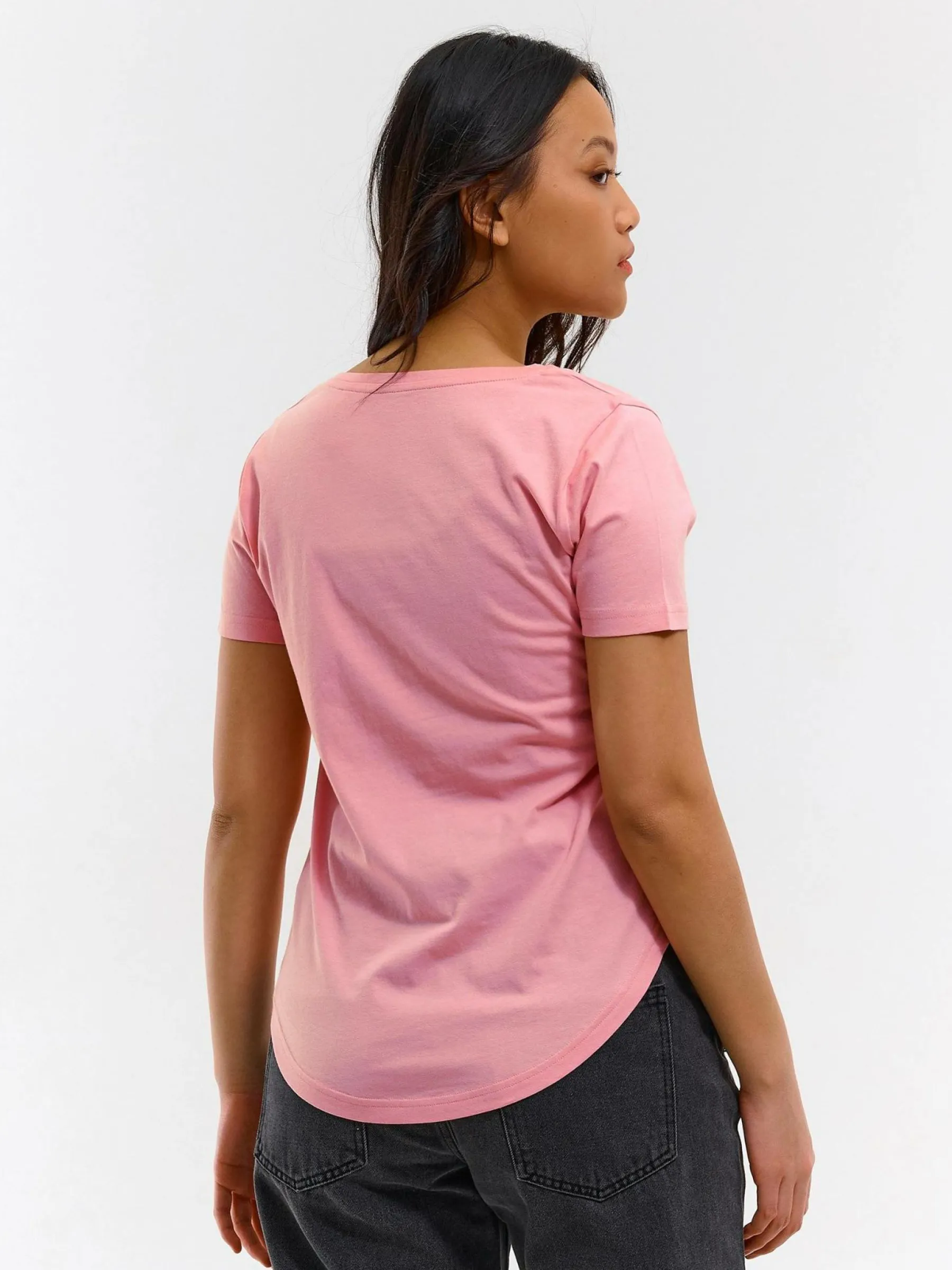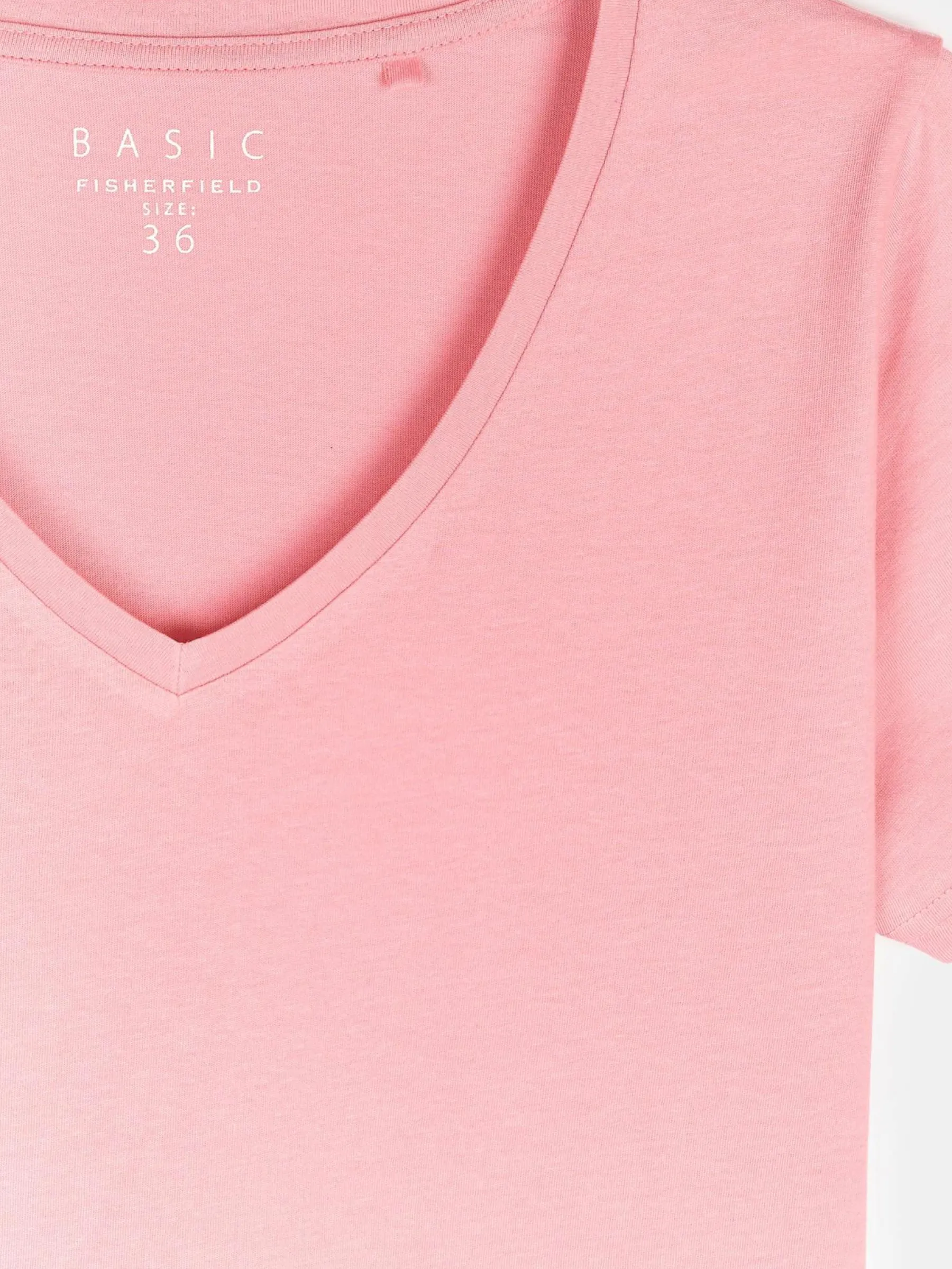 Kolor: różowyKrój: regularTyp: koszulkaRekaw: krótki rękawDługość: krótkiPattern style: pojedynczy kolorDetal: …
