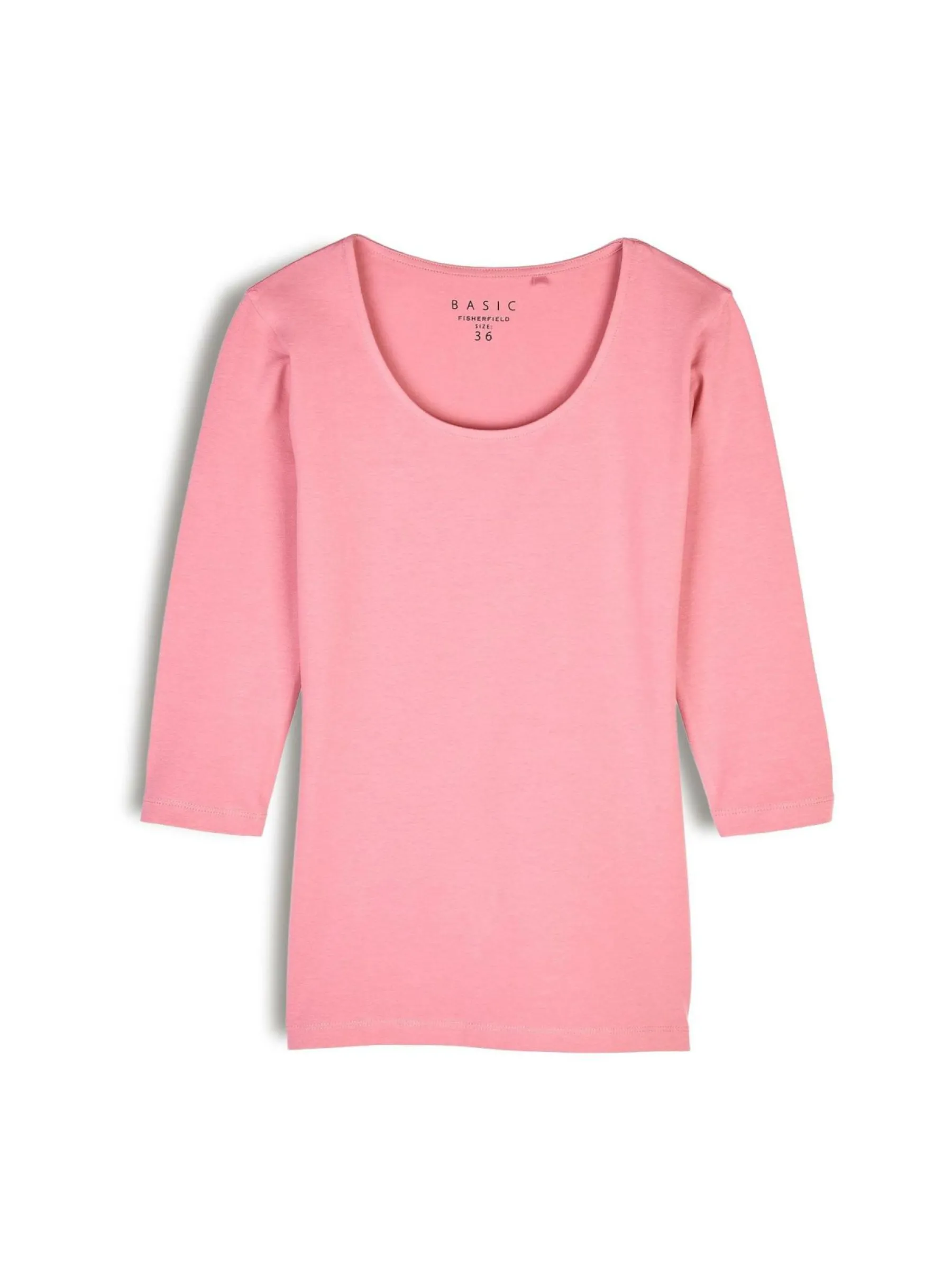 Kolor: różowyKrój: podstawowyTyp: koszulkaRekaw: rękaw 3/4Długość: krótkiPattern style: pojedynczy kolorDetal: n…