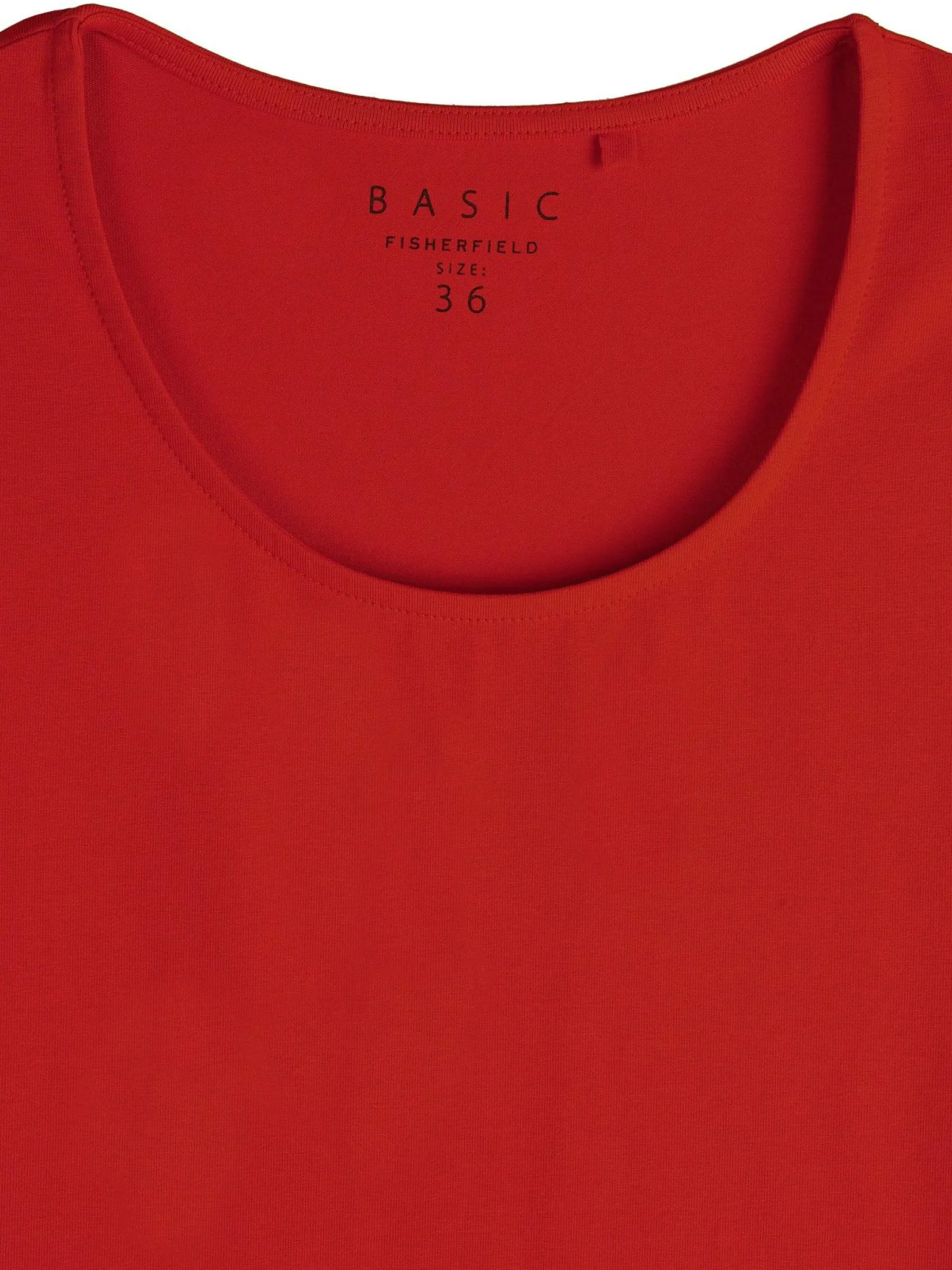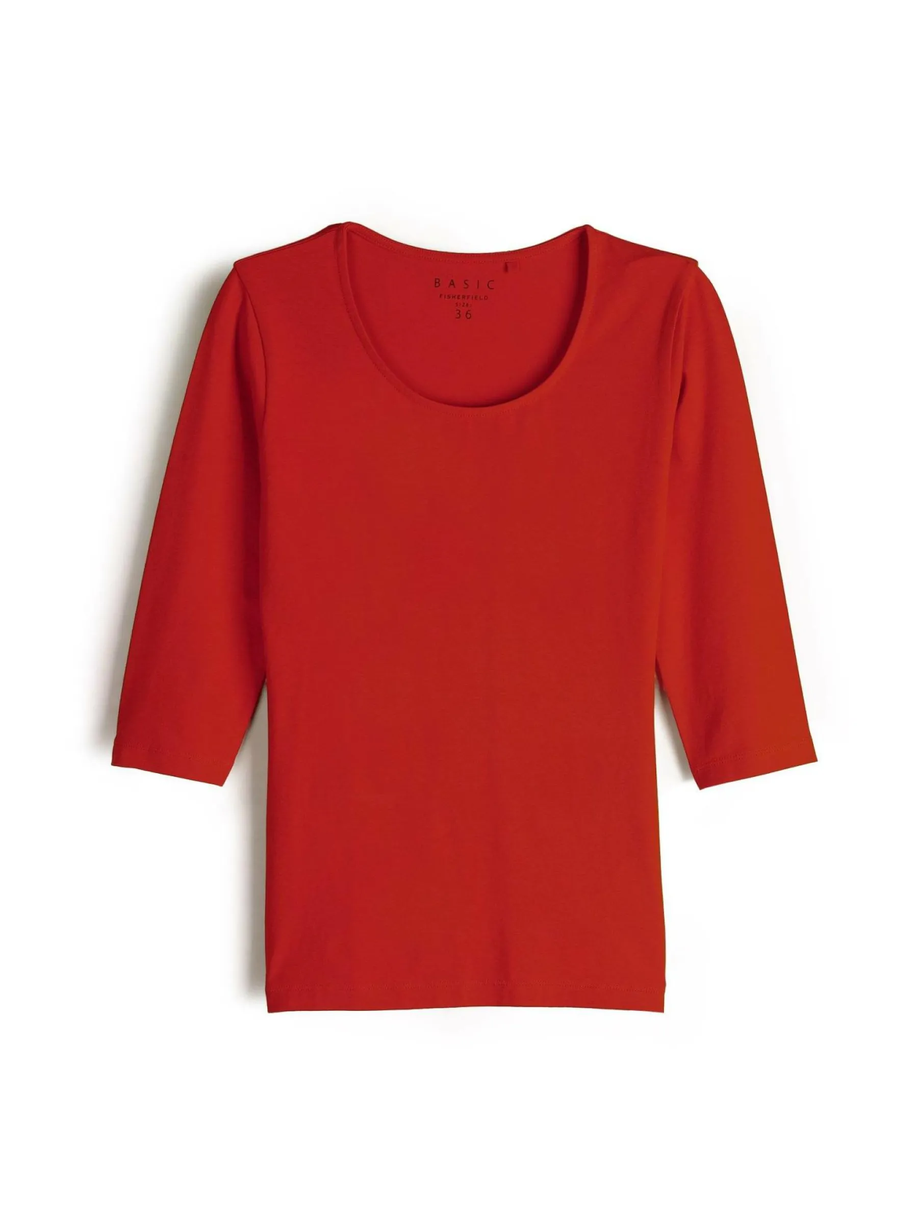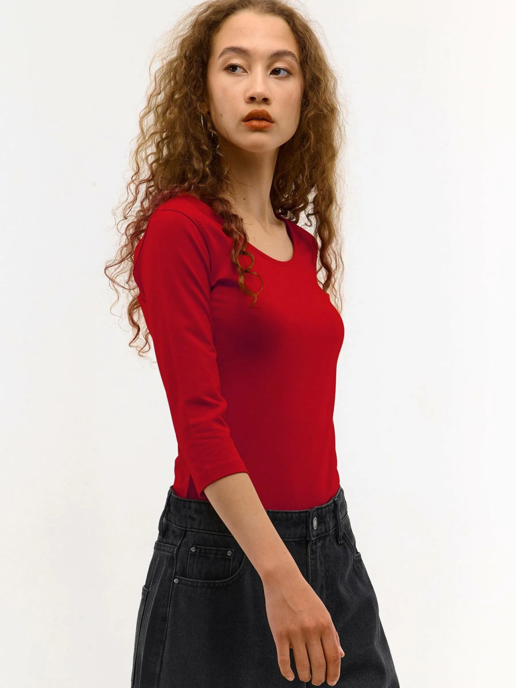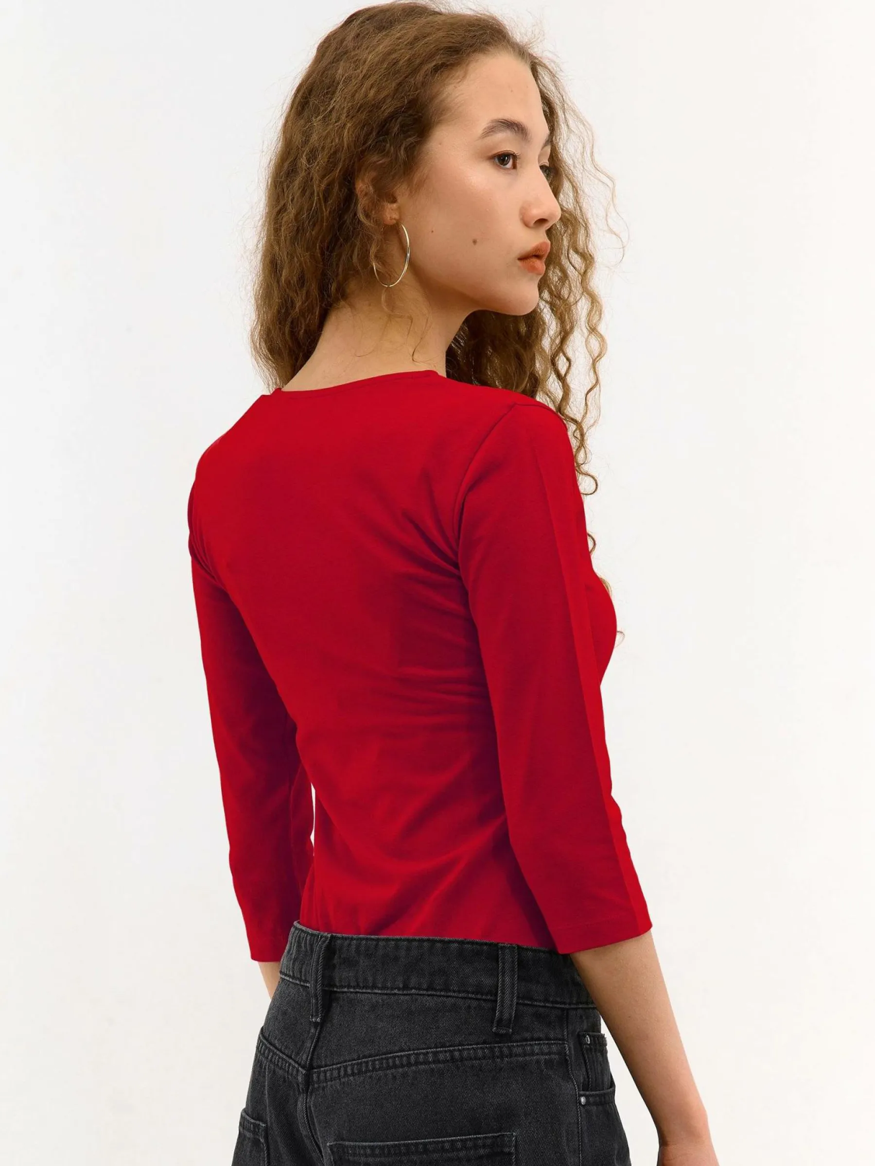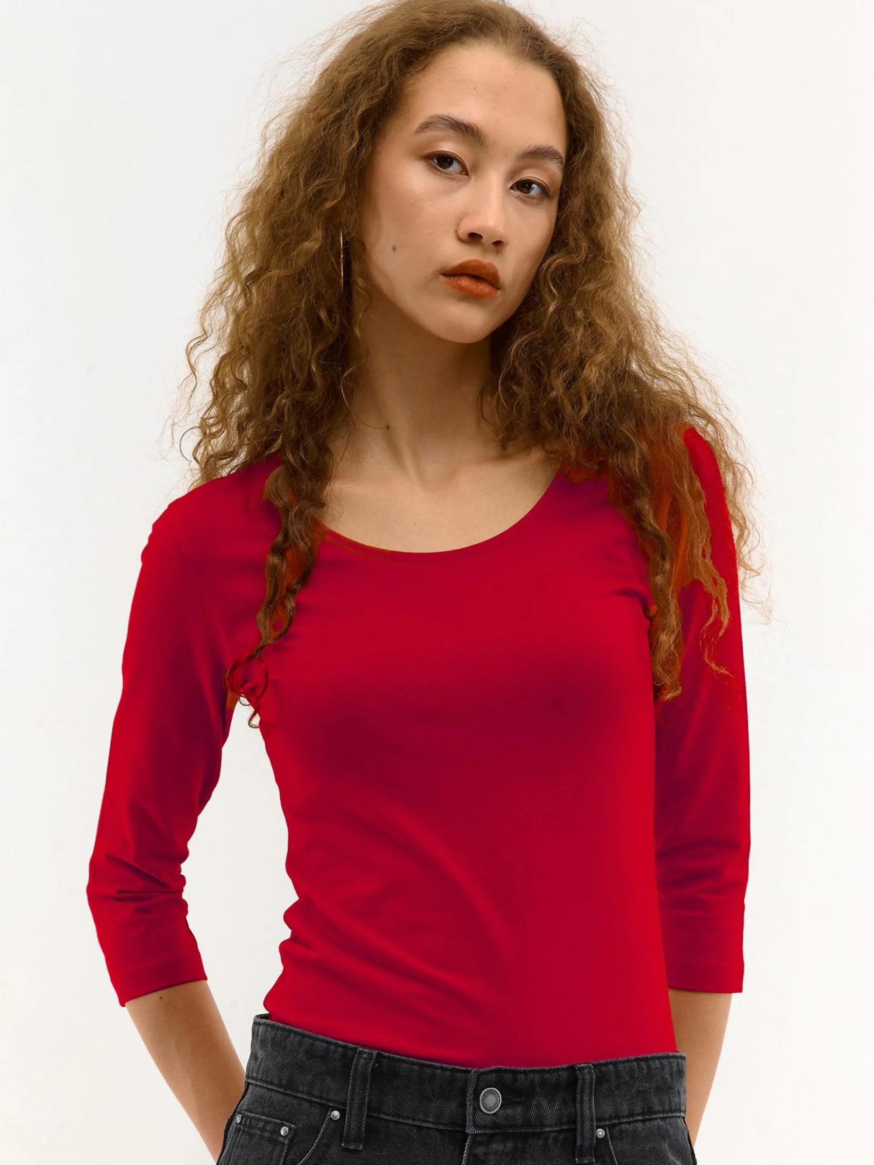 Kolor: czerwonyKrój: podstawowyTyp: koszulkaRekaw: rękaw 3/4Długość: krótkiPattern style: pojedynczy kolorDetal: n…