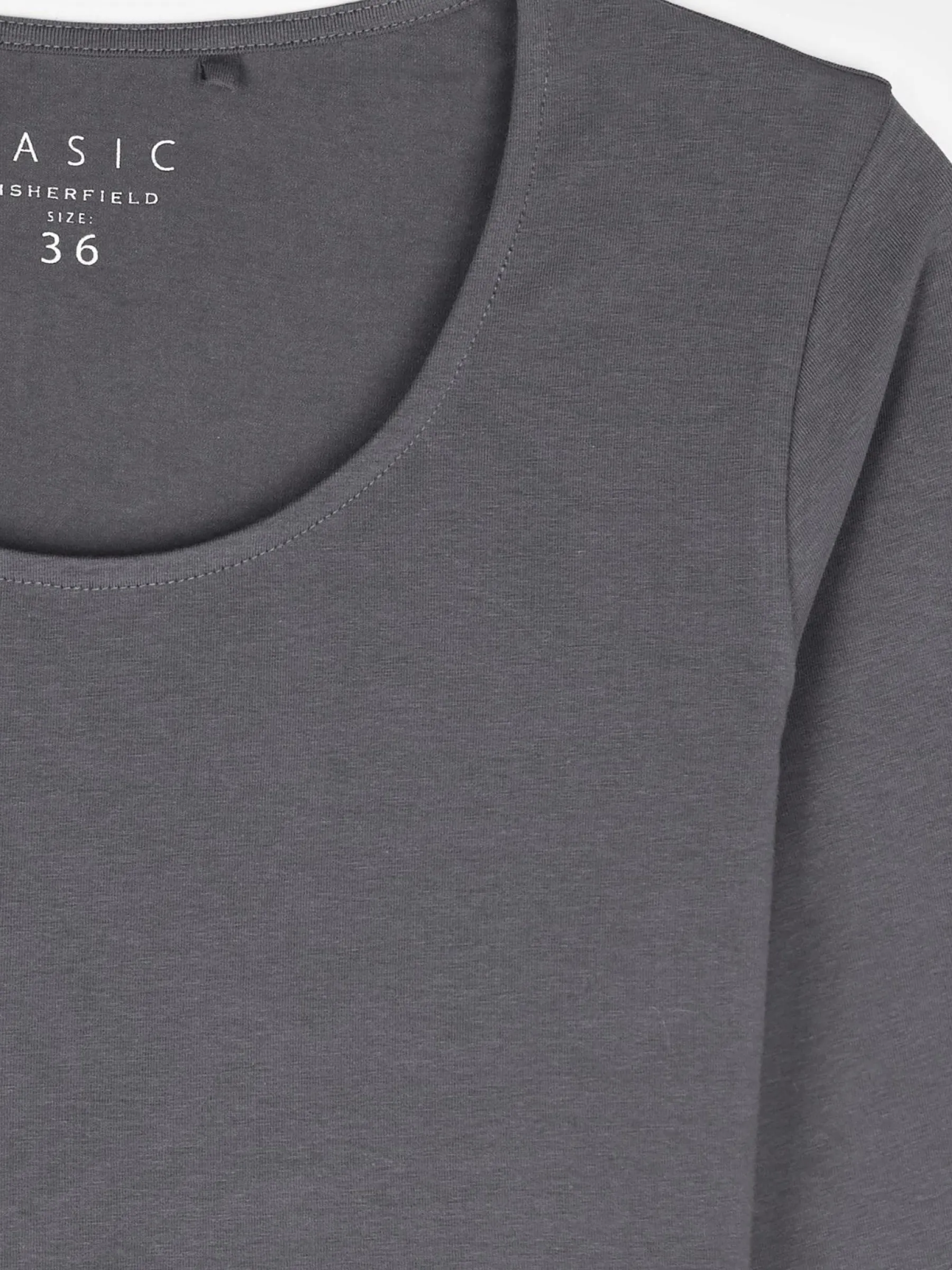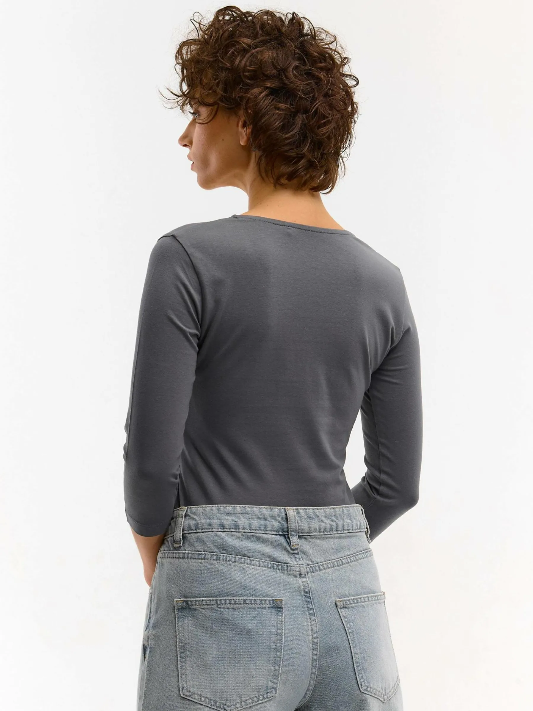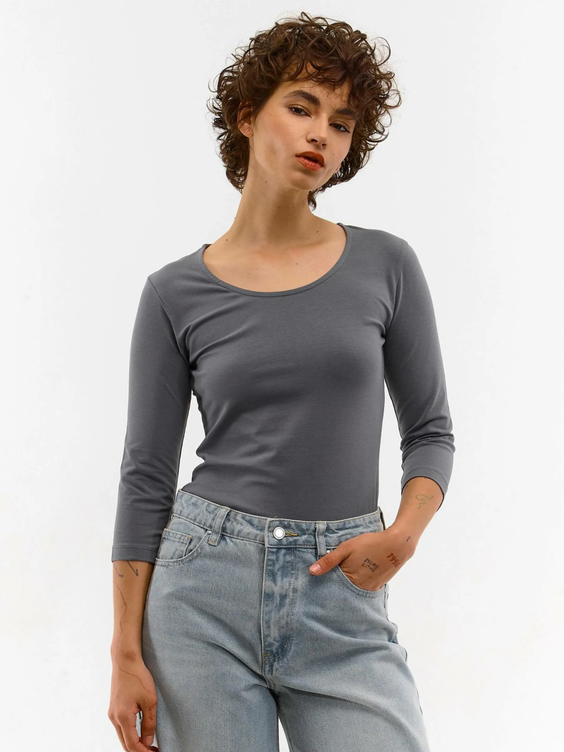 Kolor: szaryKrój: podstawowyTyp: koszulkaRekaw: rękaw 3/4Długość: krótkiPattern style: pojedynczy kolorDetal: nad …