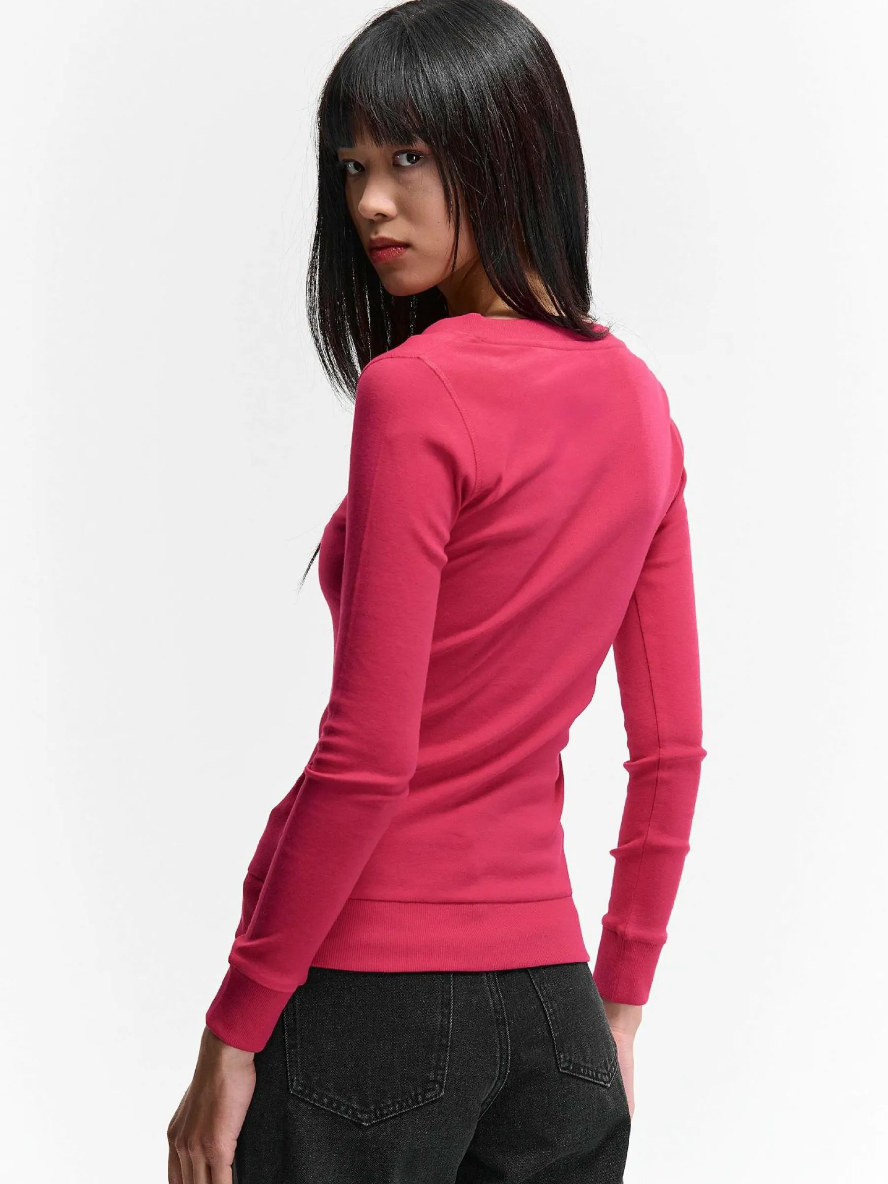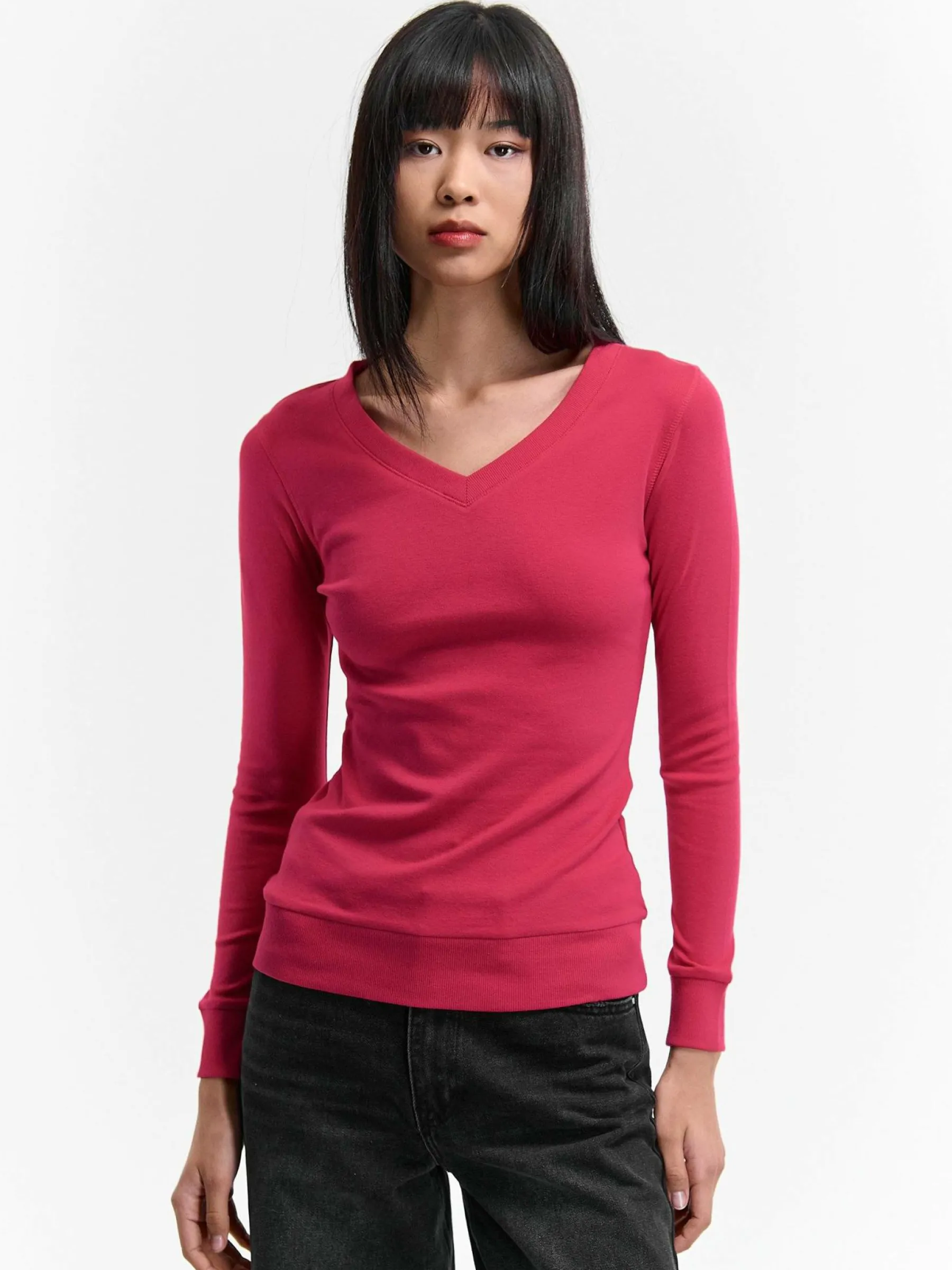Kolor: różowyKrój: regularTyp: koszulkaRekaw: długi rękawDługość: krótkiPattern style: pojedynczy kolorDetal: n…
