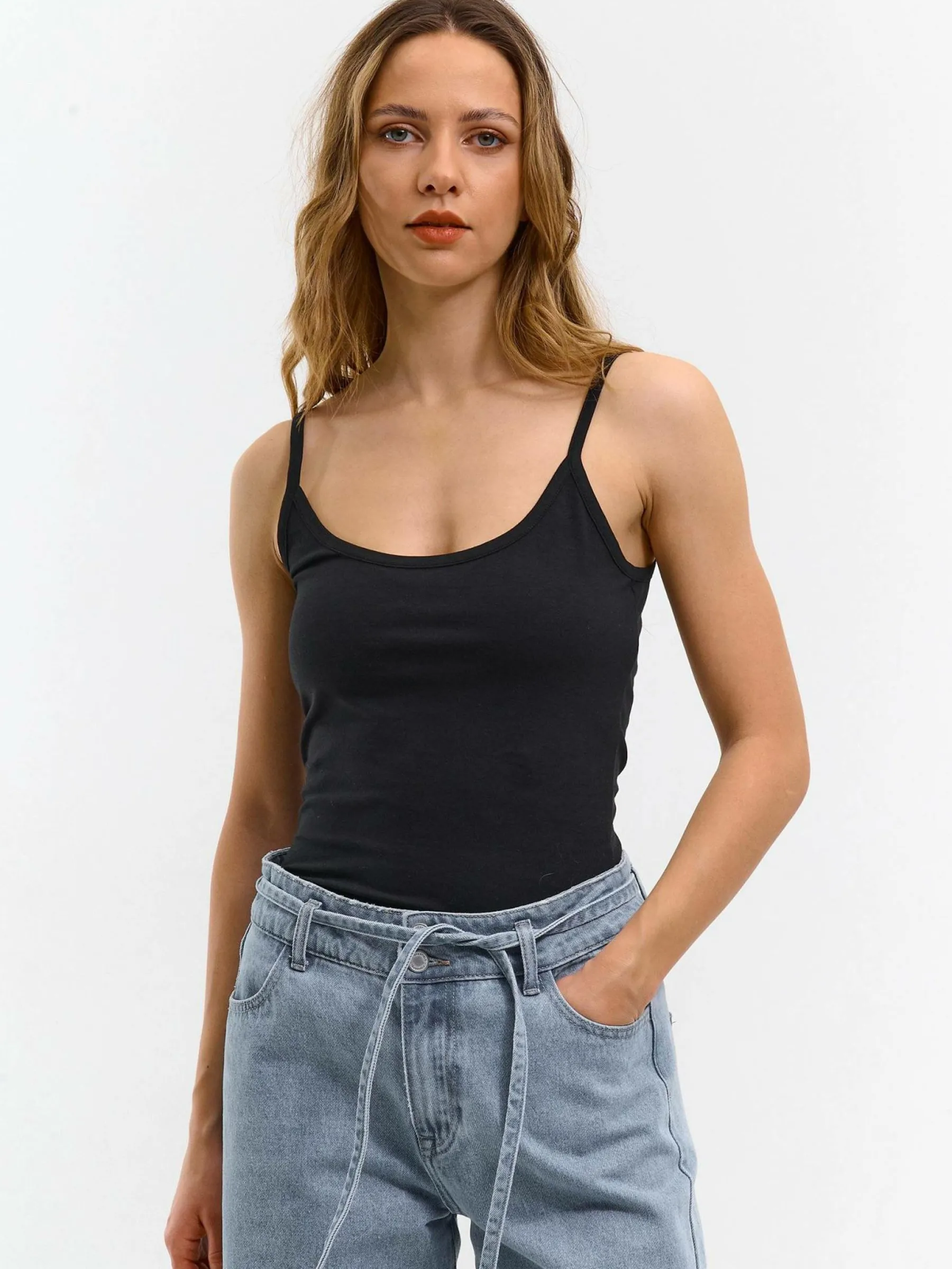 Kolor: czarnyKrój: podstawowyTyp: podkoszulekRekaw: bez rękawówDługość: krótkiPattern style: pojedynczy kolorDeta…
