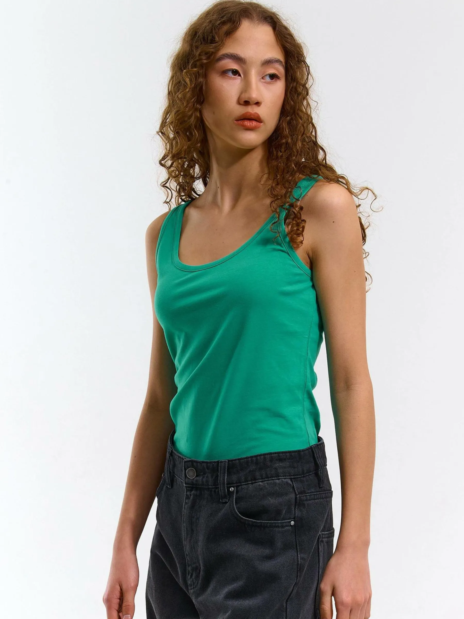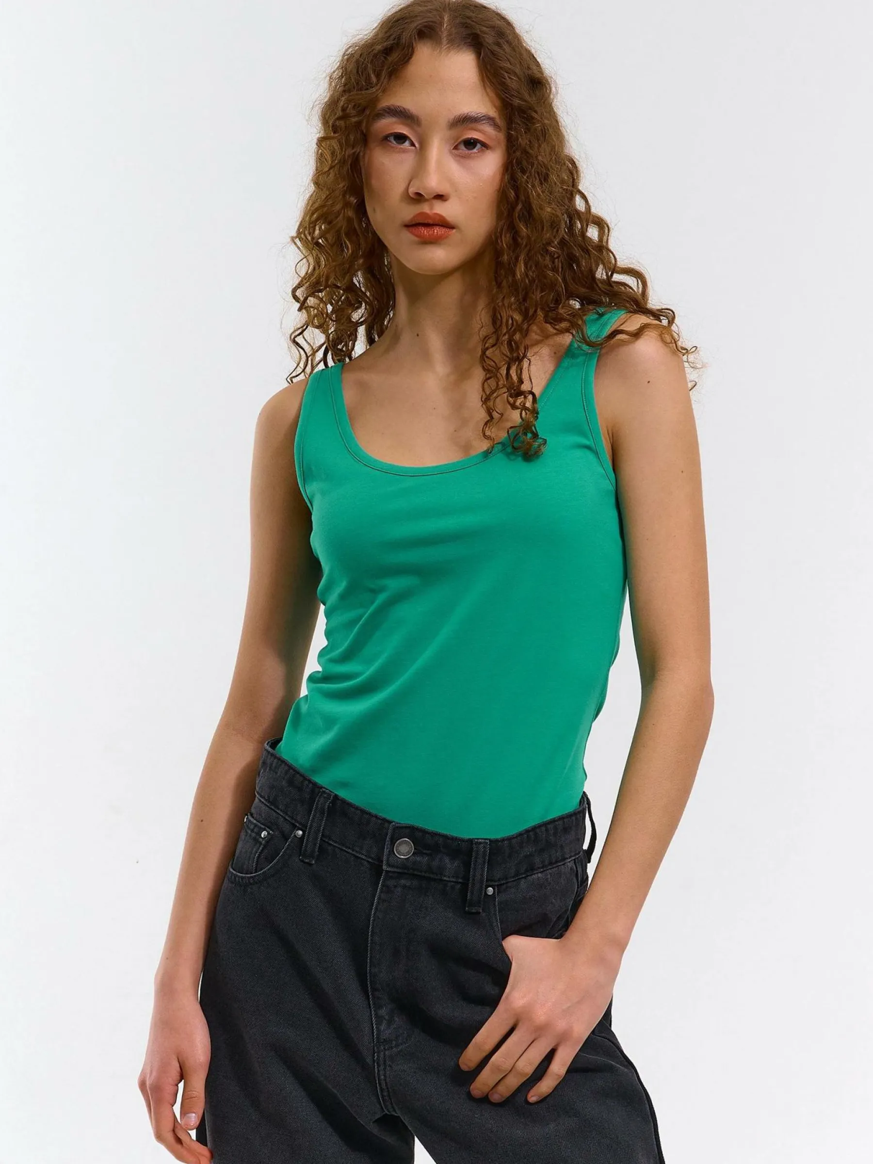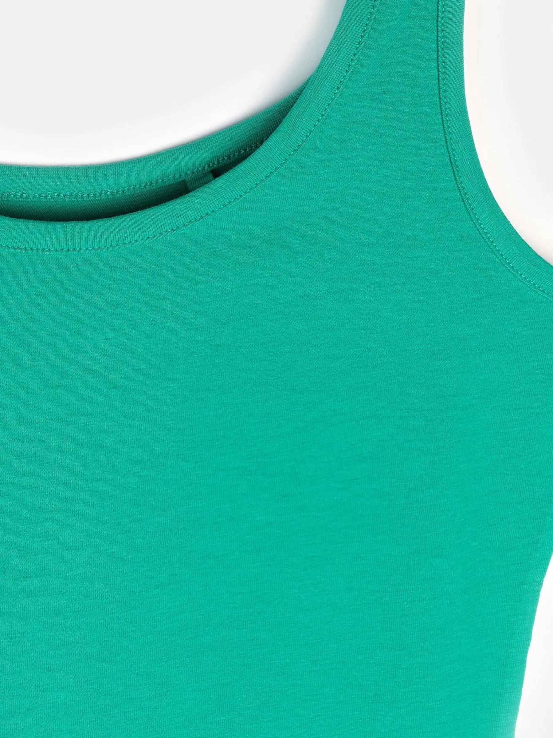 Kolor: zielonyKrój: podstawowyTyp: podkoszulekRekaw: bez rękawówDługość: krótkiPattern style: pojedynczy kolorDet…
