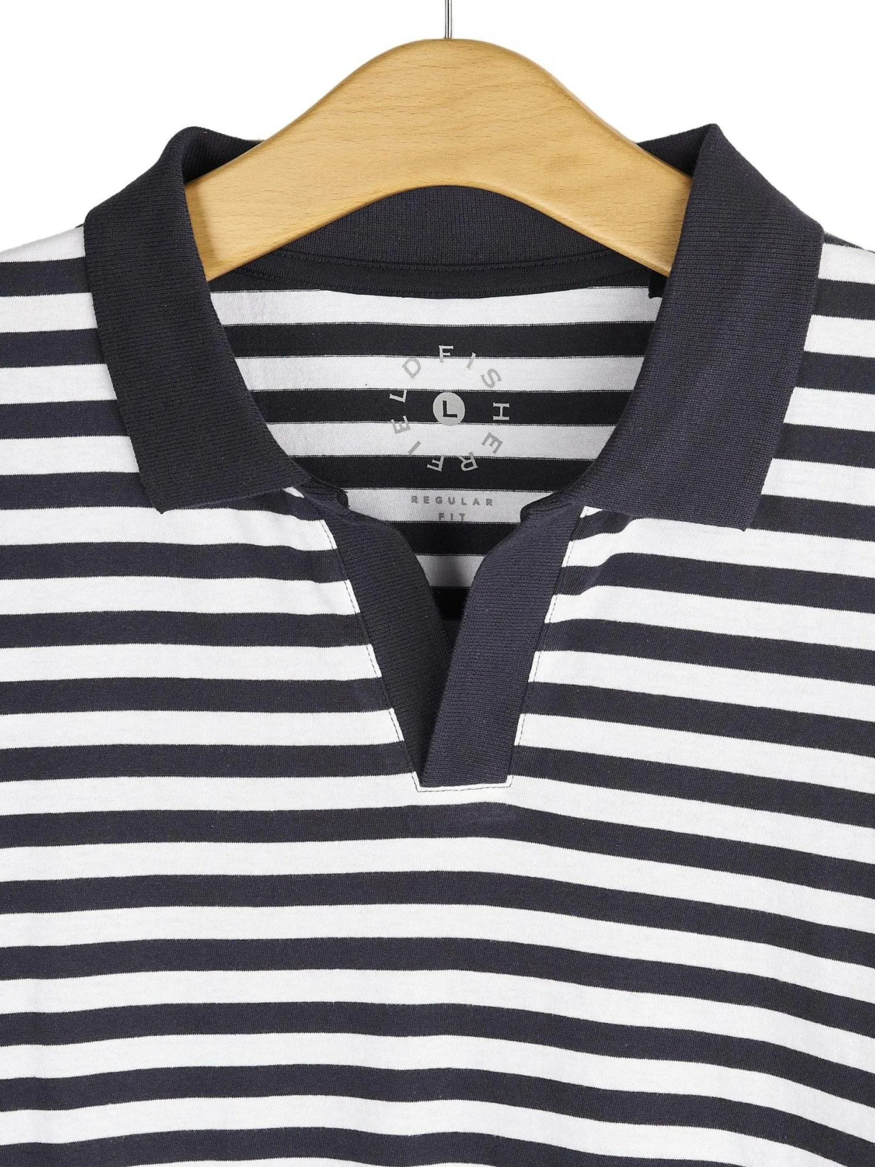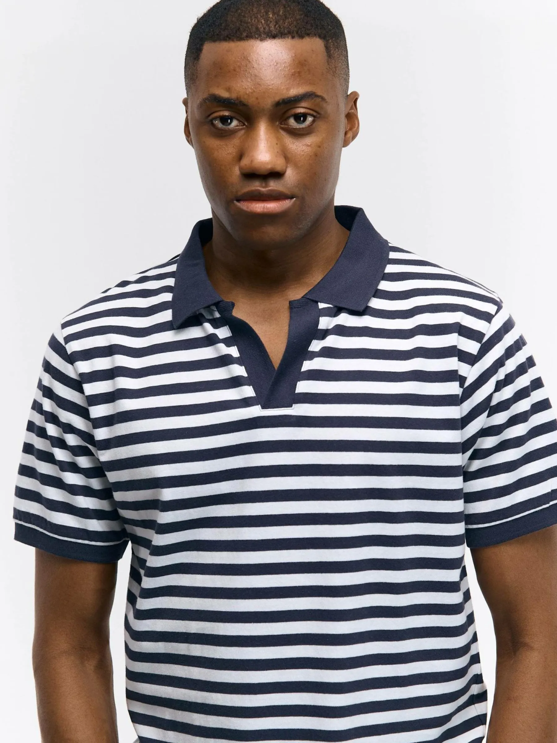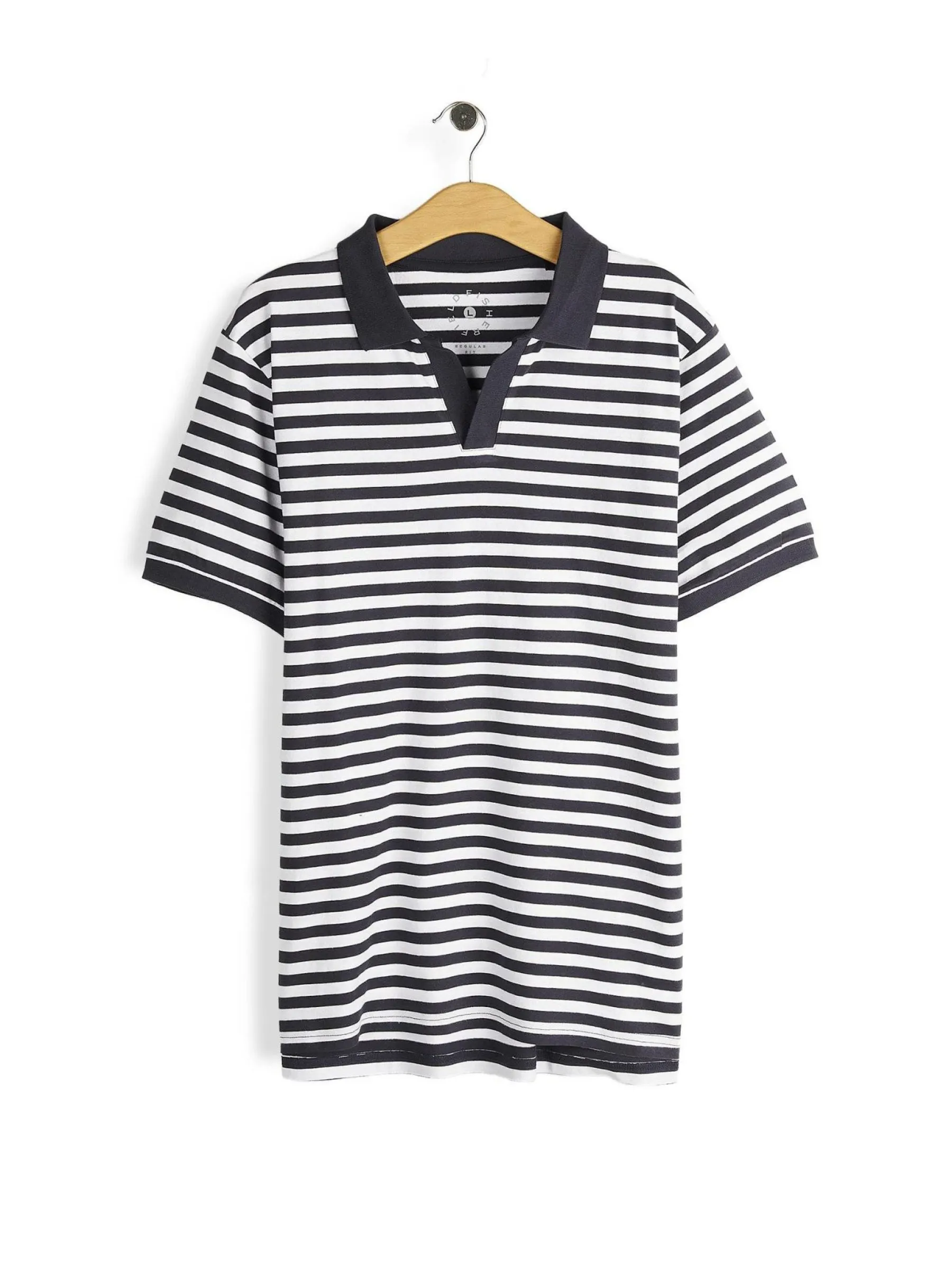 Kolor: granatowyKrój: poloTyp: koszulkaRekaw: krótki rękawPattern style: w prążkiDetal: na guziki, nad głowąMater…