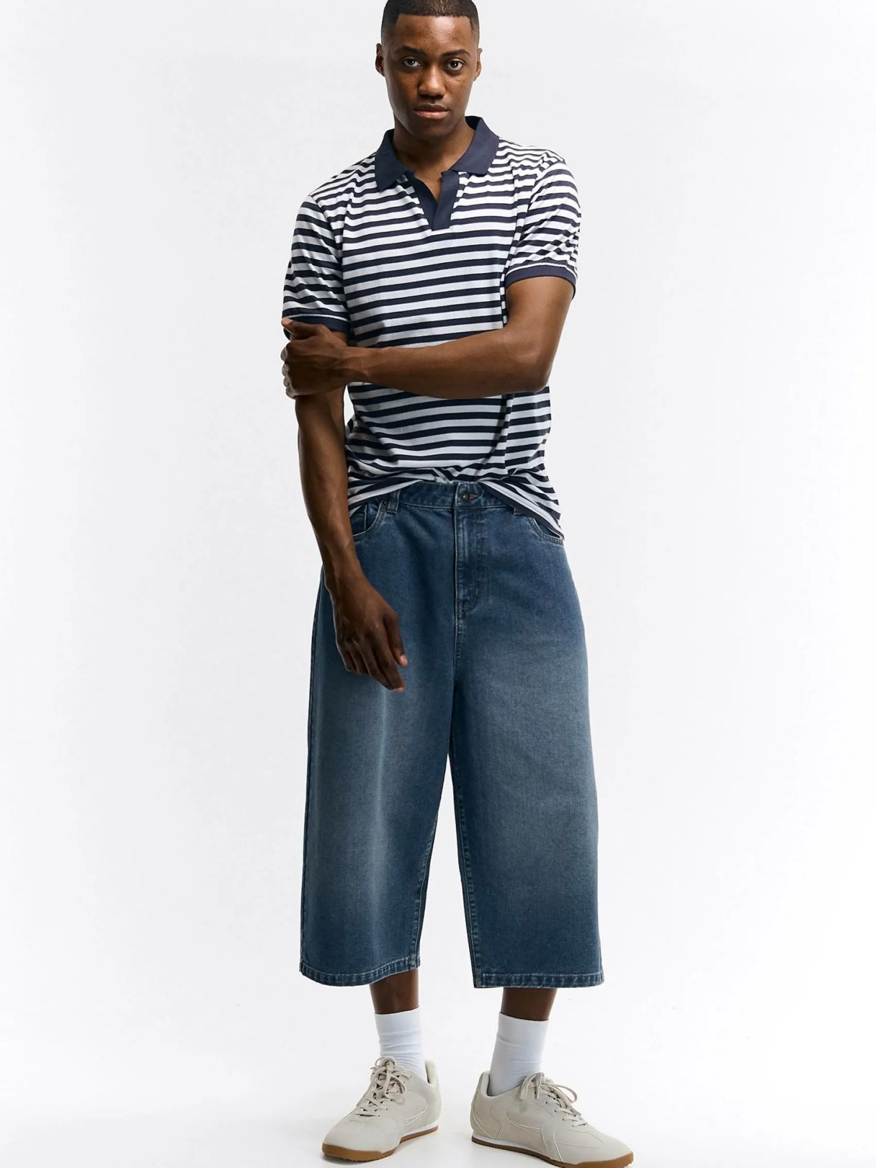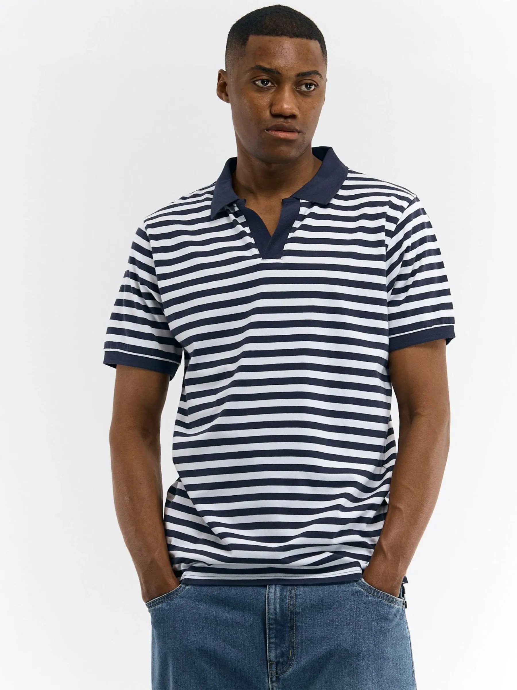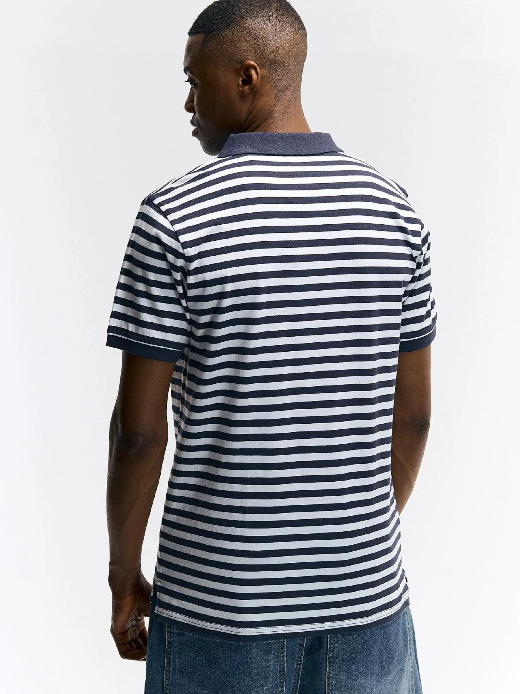 Kolor: granatowyKrój: poloTyp: koszulkaRekaw: krótki rękawPattern style: w prążkiDetal: na guziki, nad głowąMater…