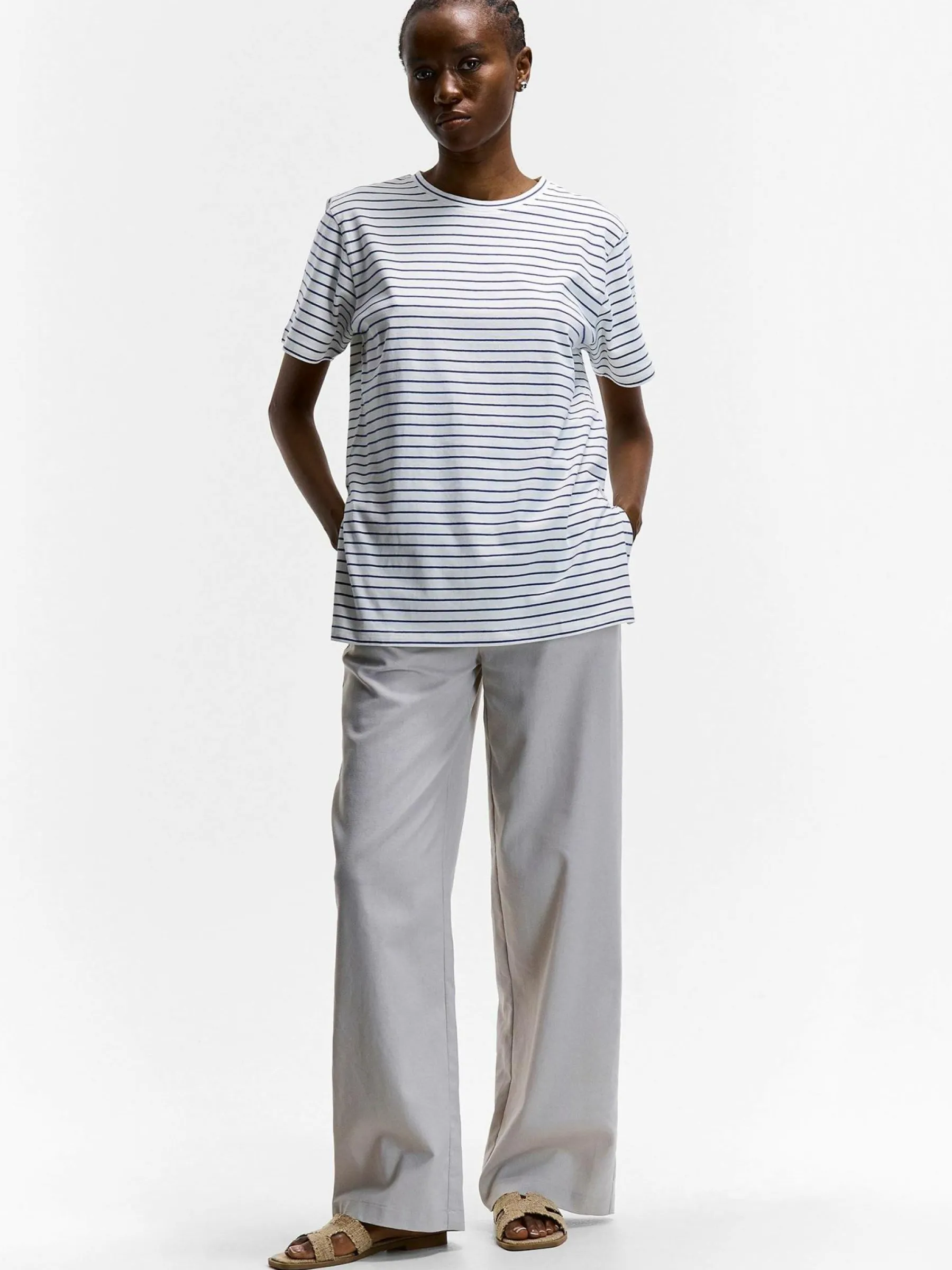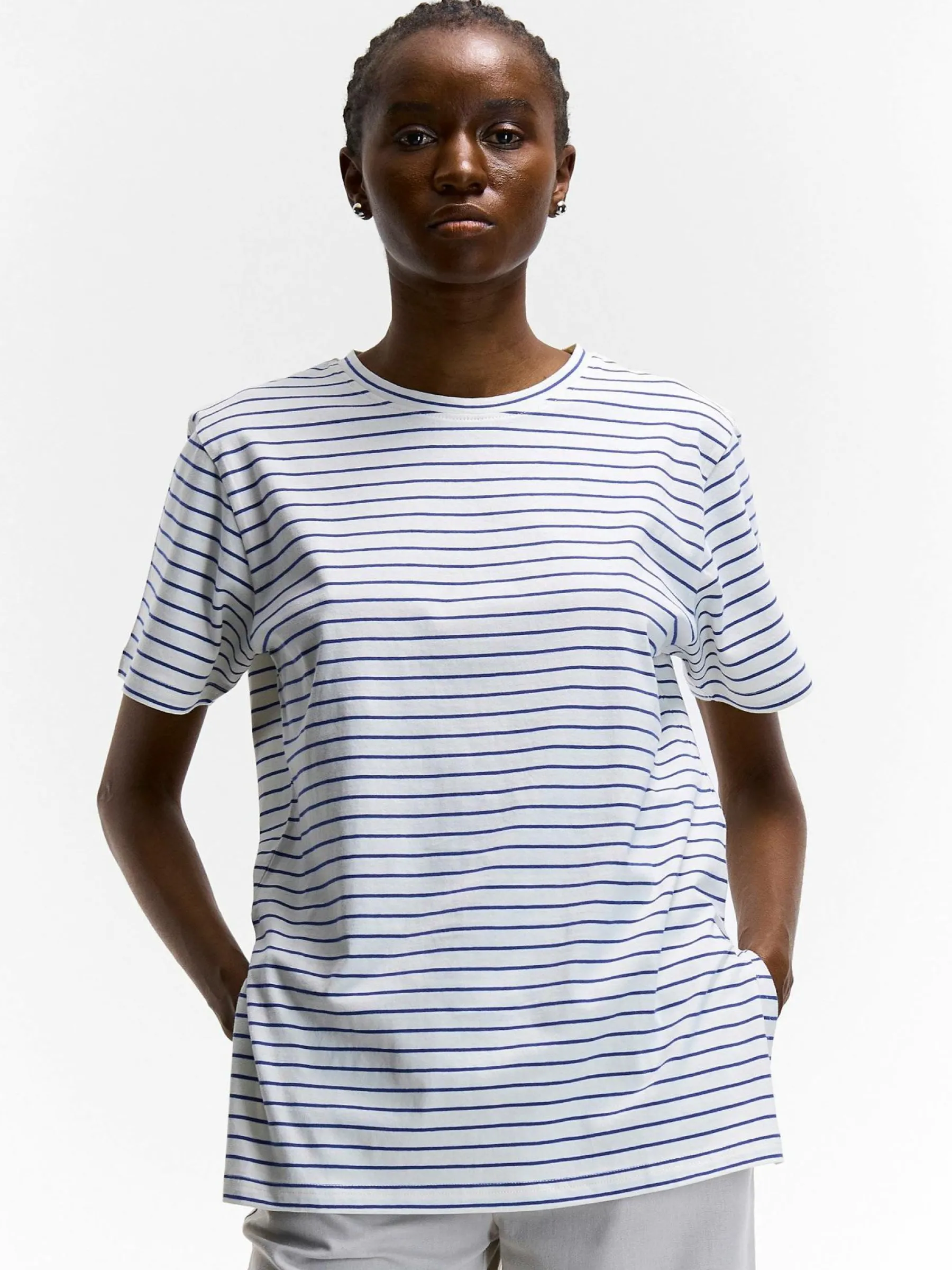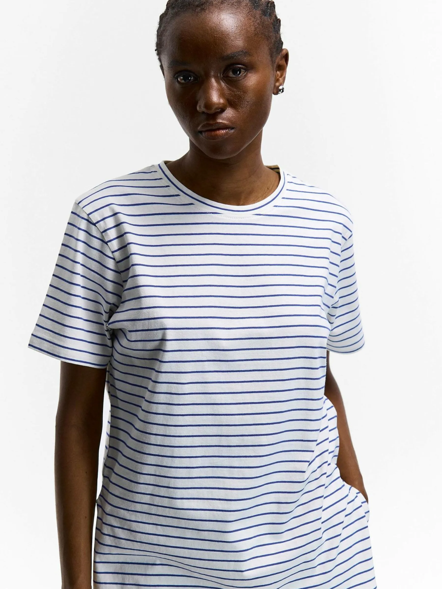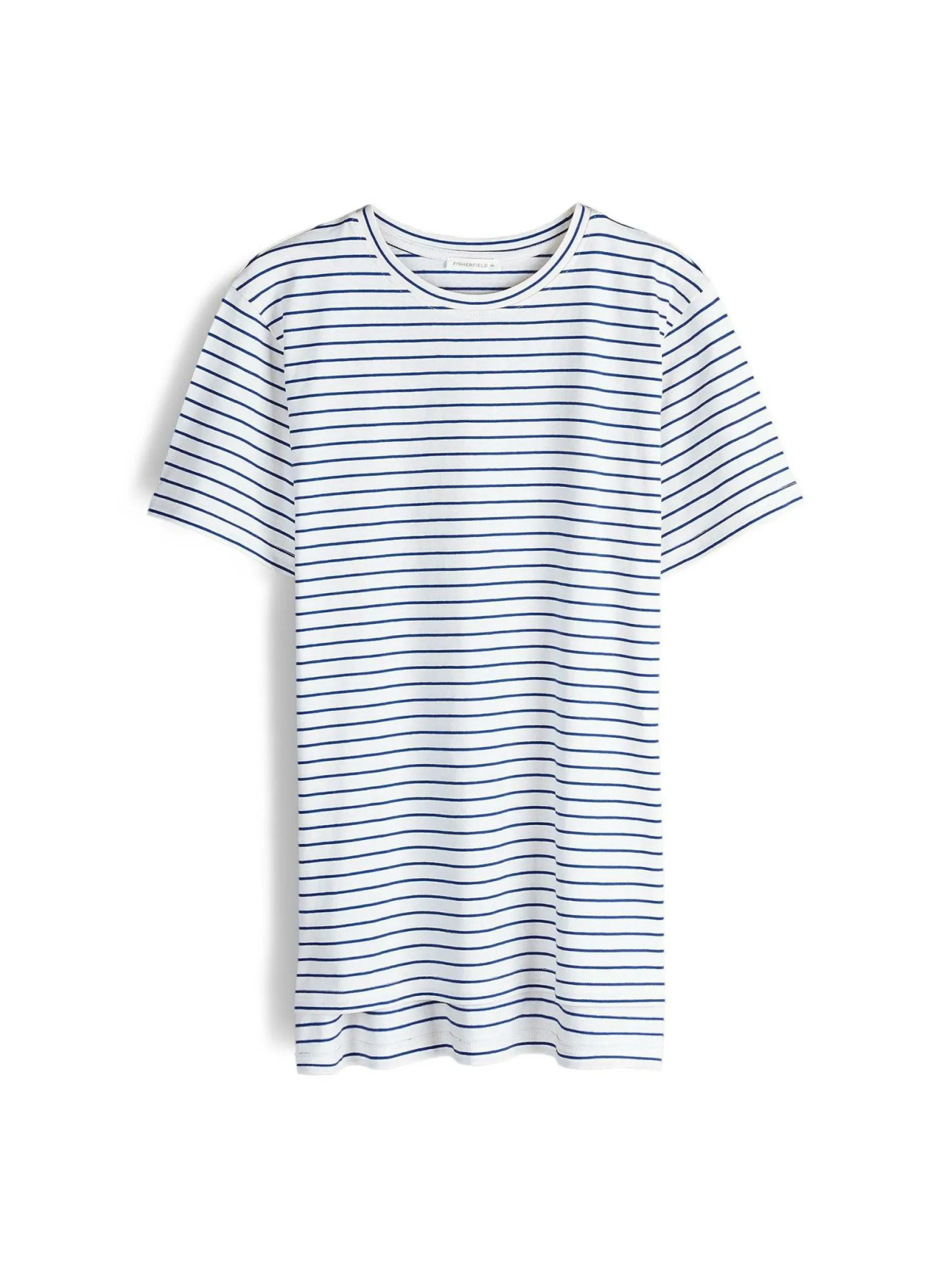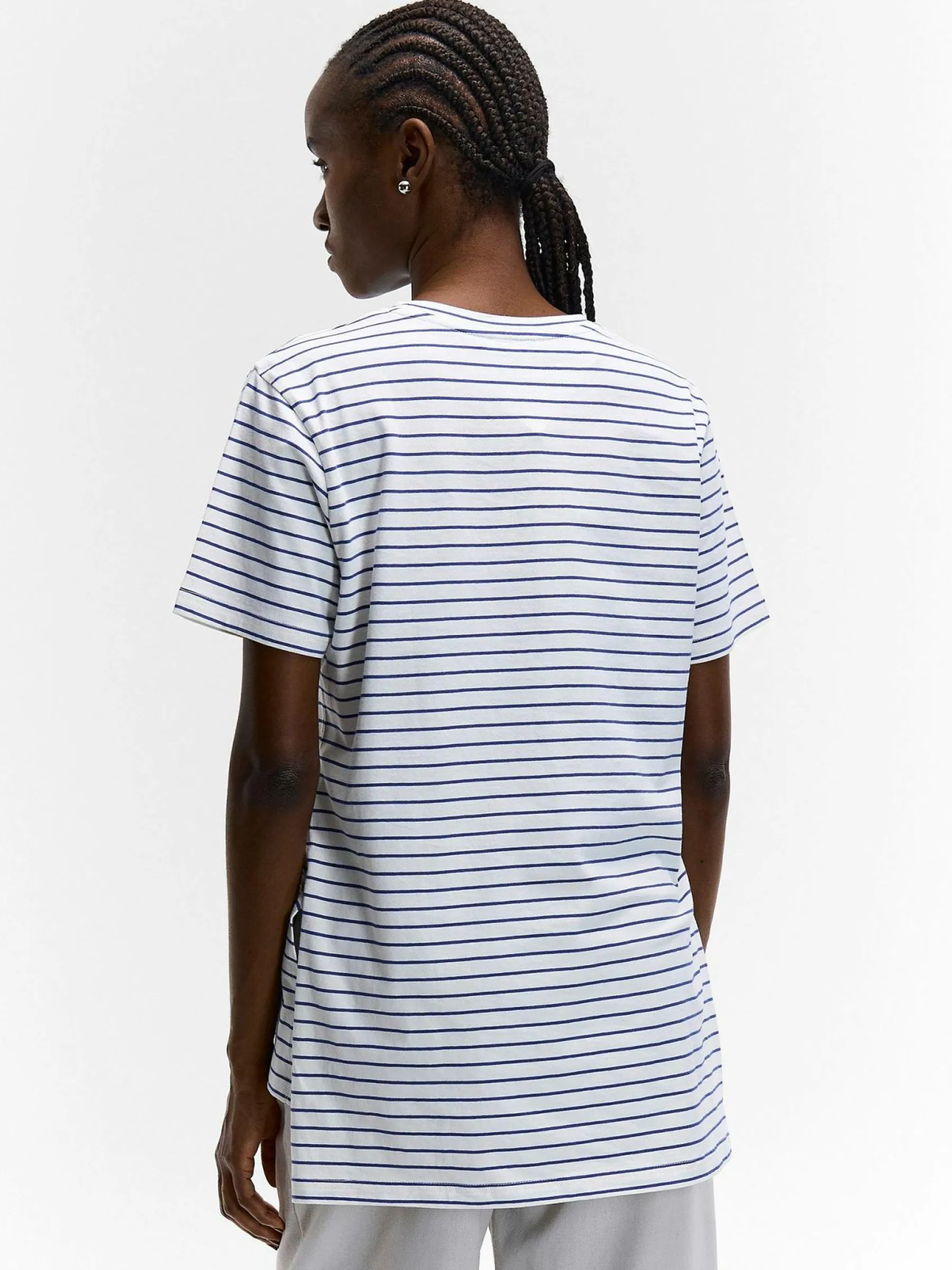 Kolor: białyKrój: regularTyp: koszulkaRekaw: krótki rękawDługość: dlugiePattern style: w prążkiDetal: nad głow…