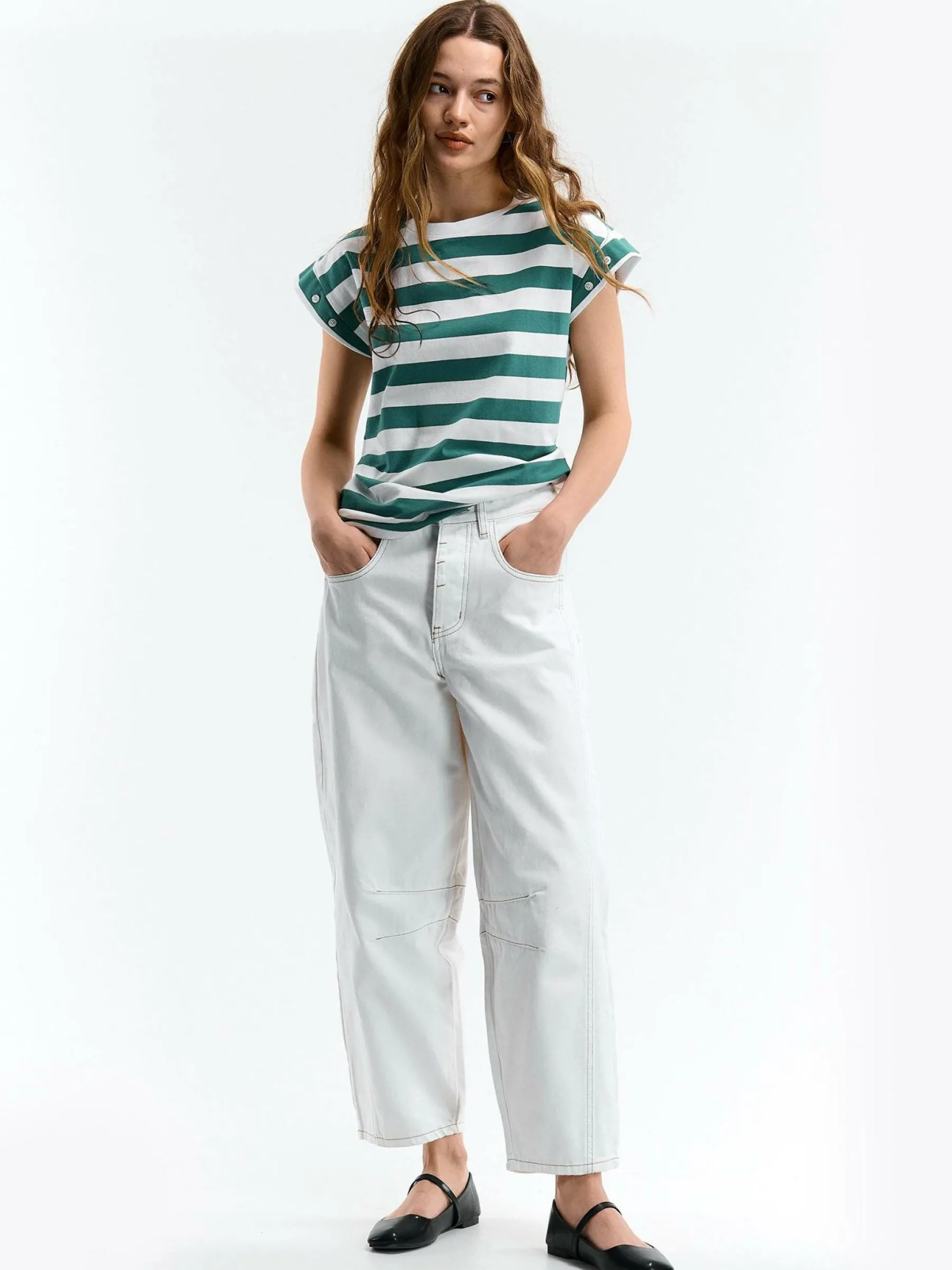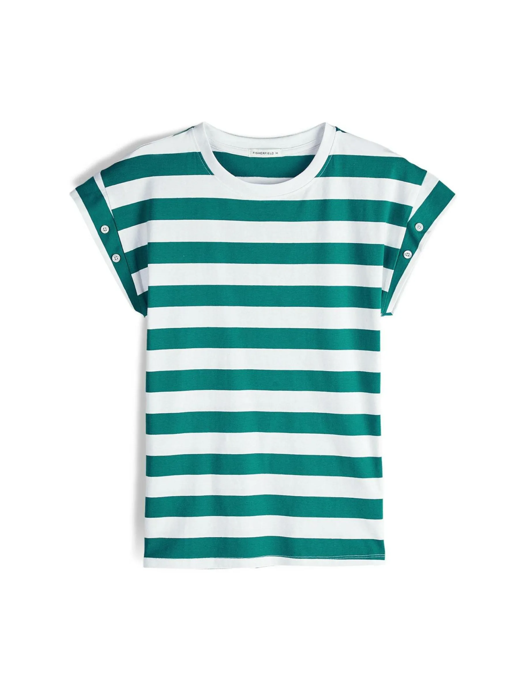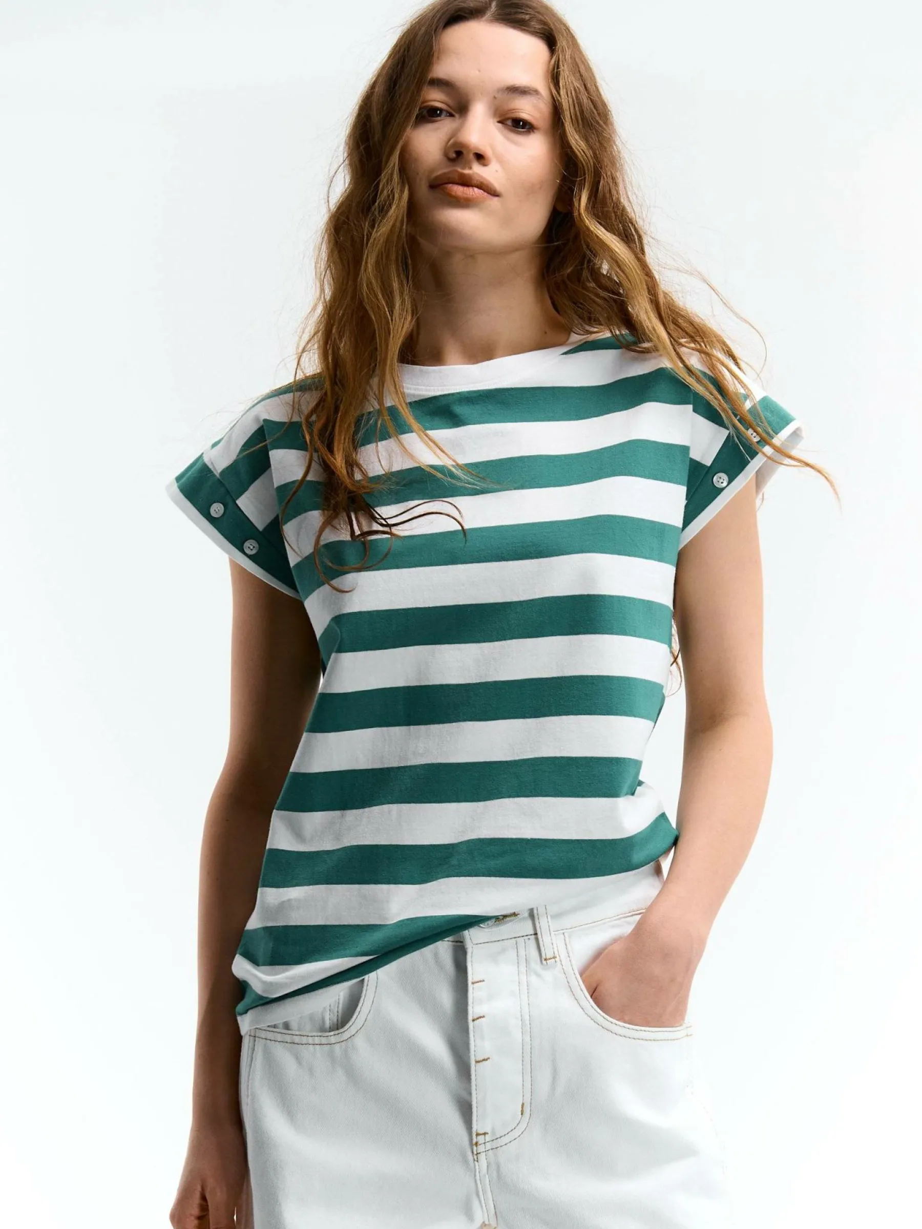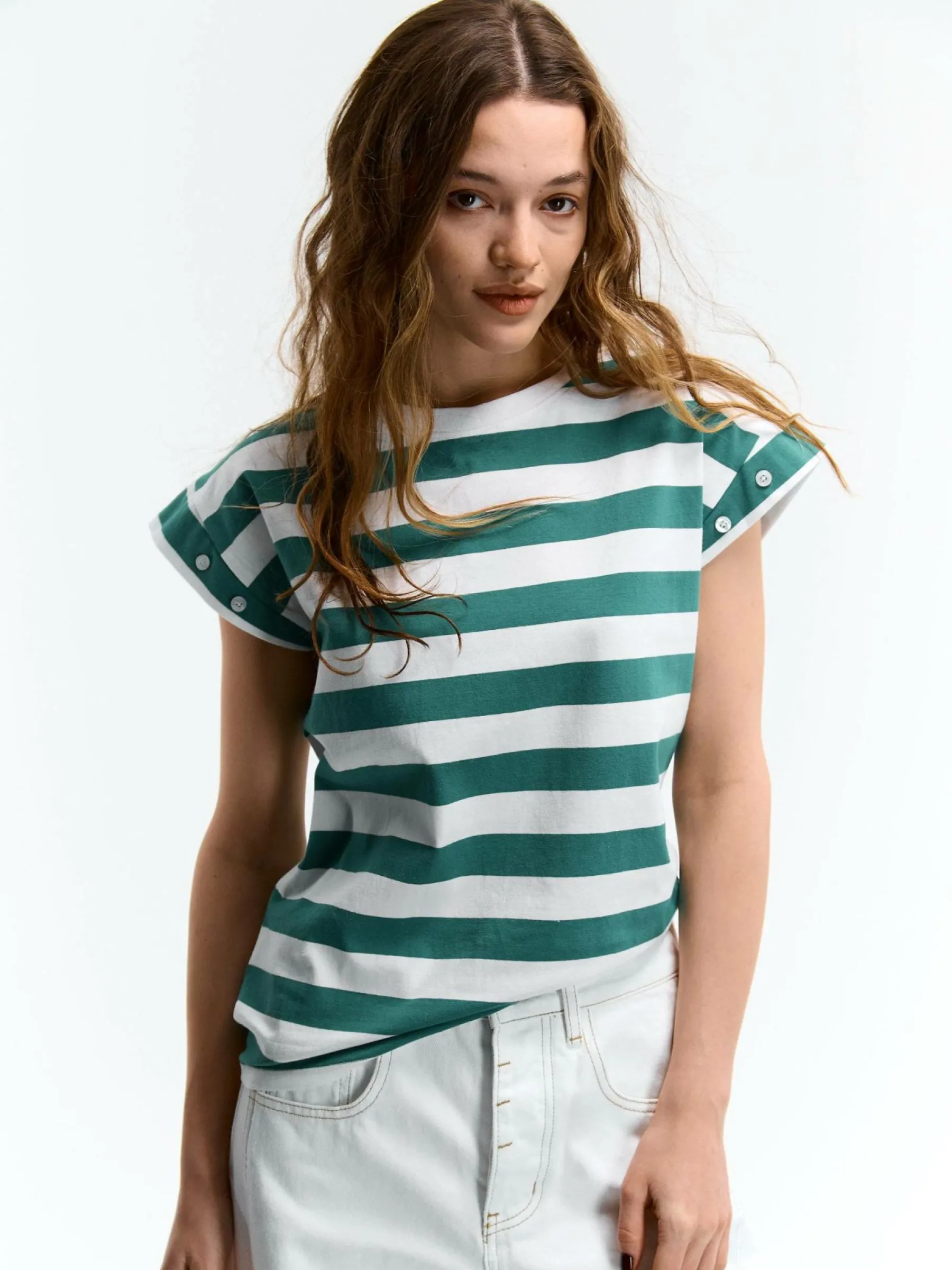 Kolor: zielonyKrój: regularTyp: koszulkaRekaw: krótki rękawDługość: krótkiPattern style: w prążkiDetal: nad gł…