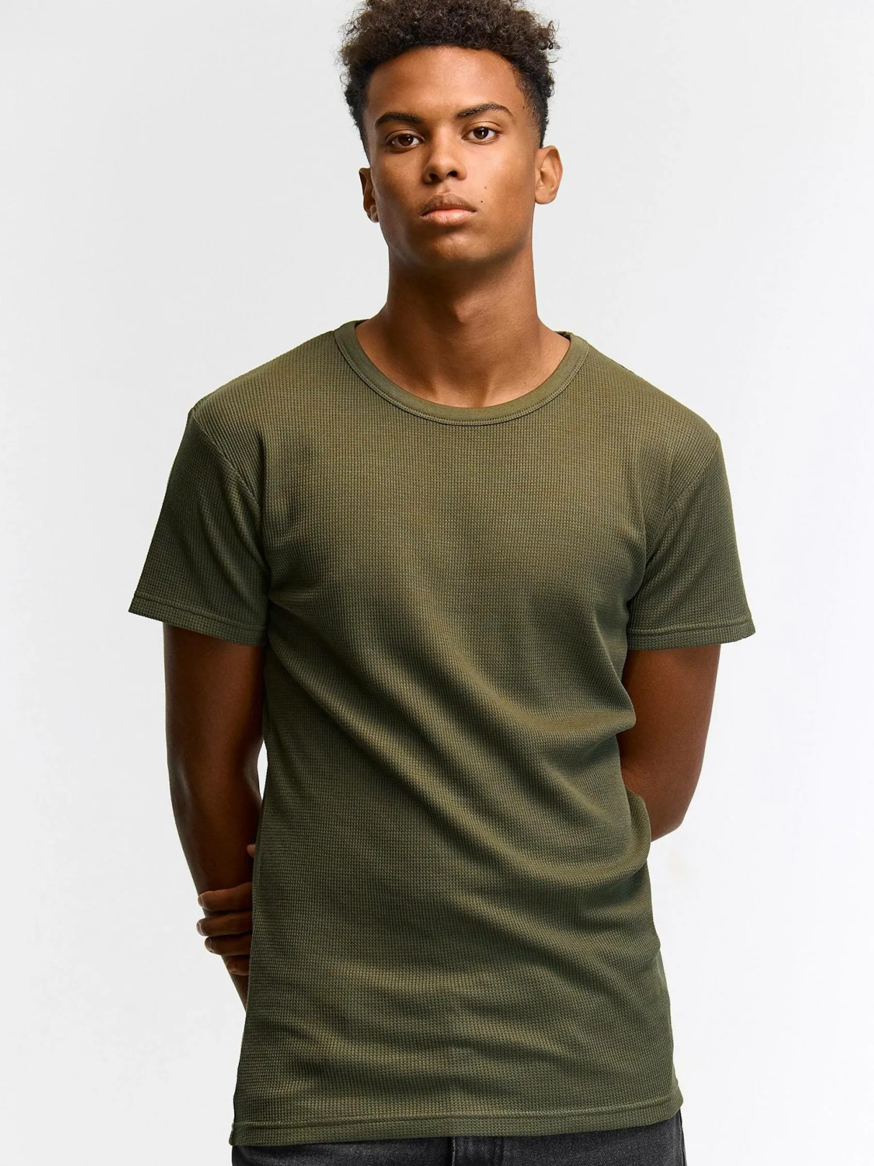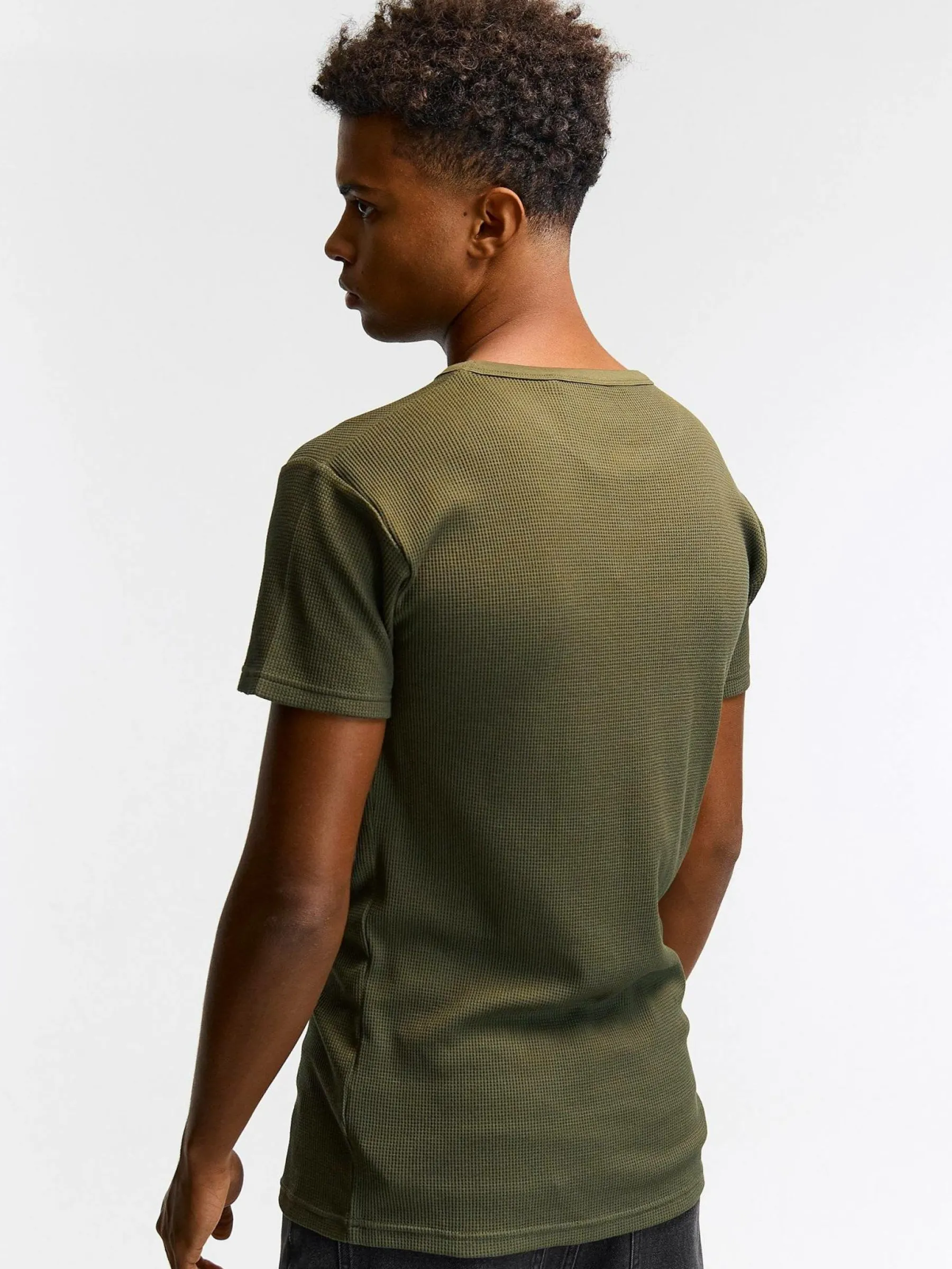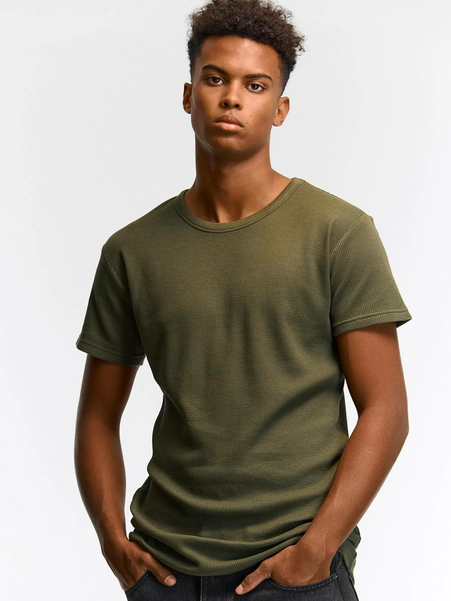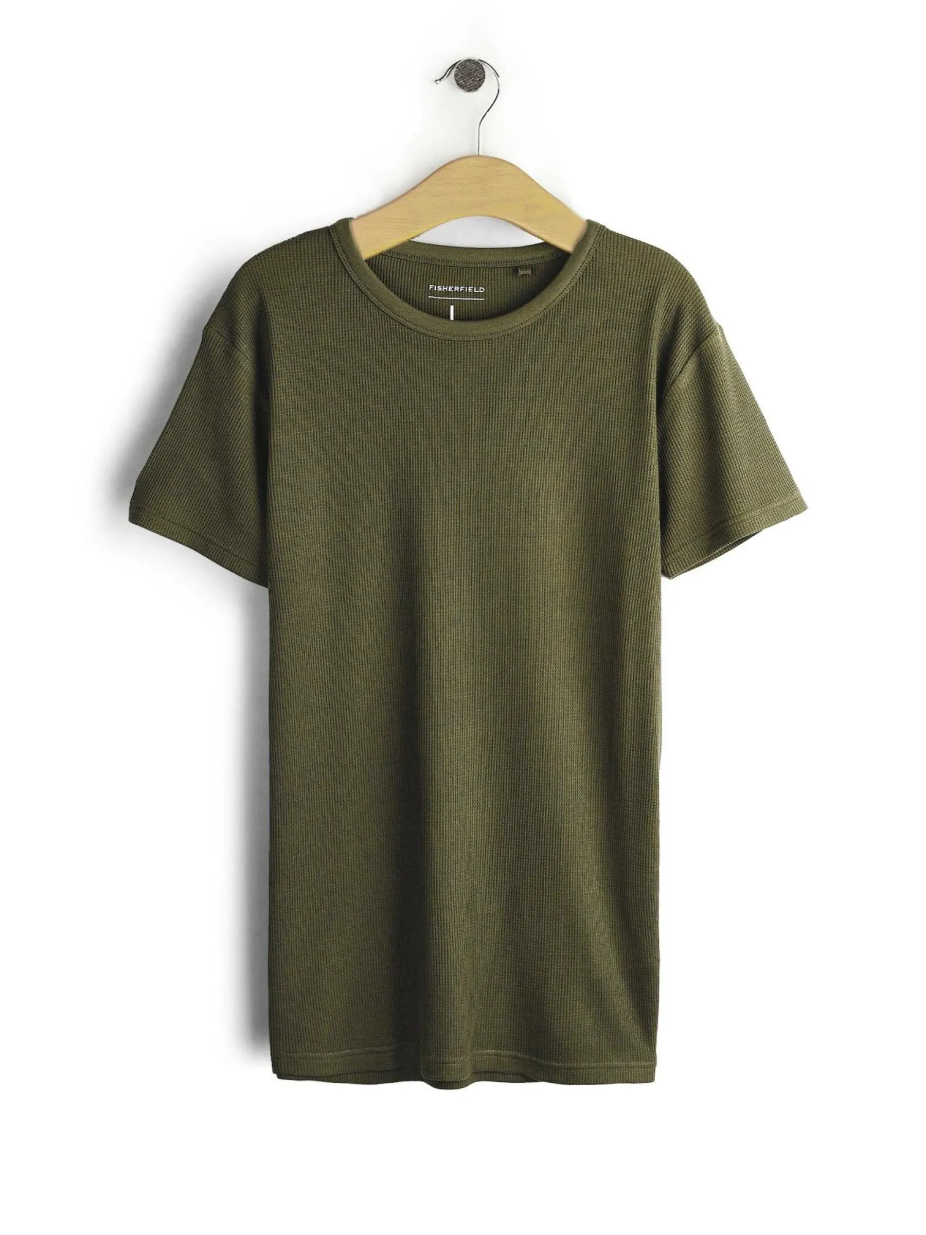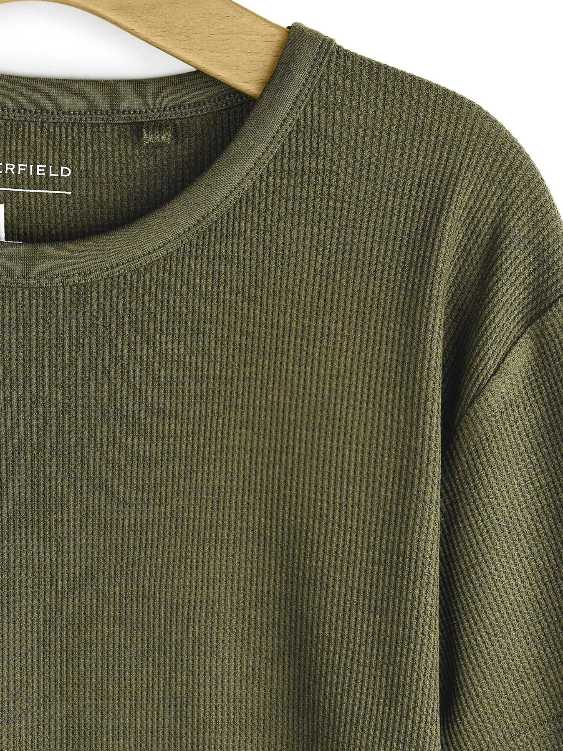 Kolor: khaki, zielonyKrój: regularTyp: koszulkaRekaw: krótki rękawPattern style: pojedynczy kolor, strukturowaneDetal…