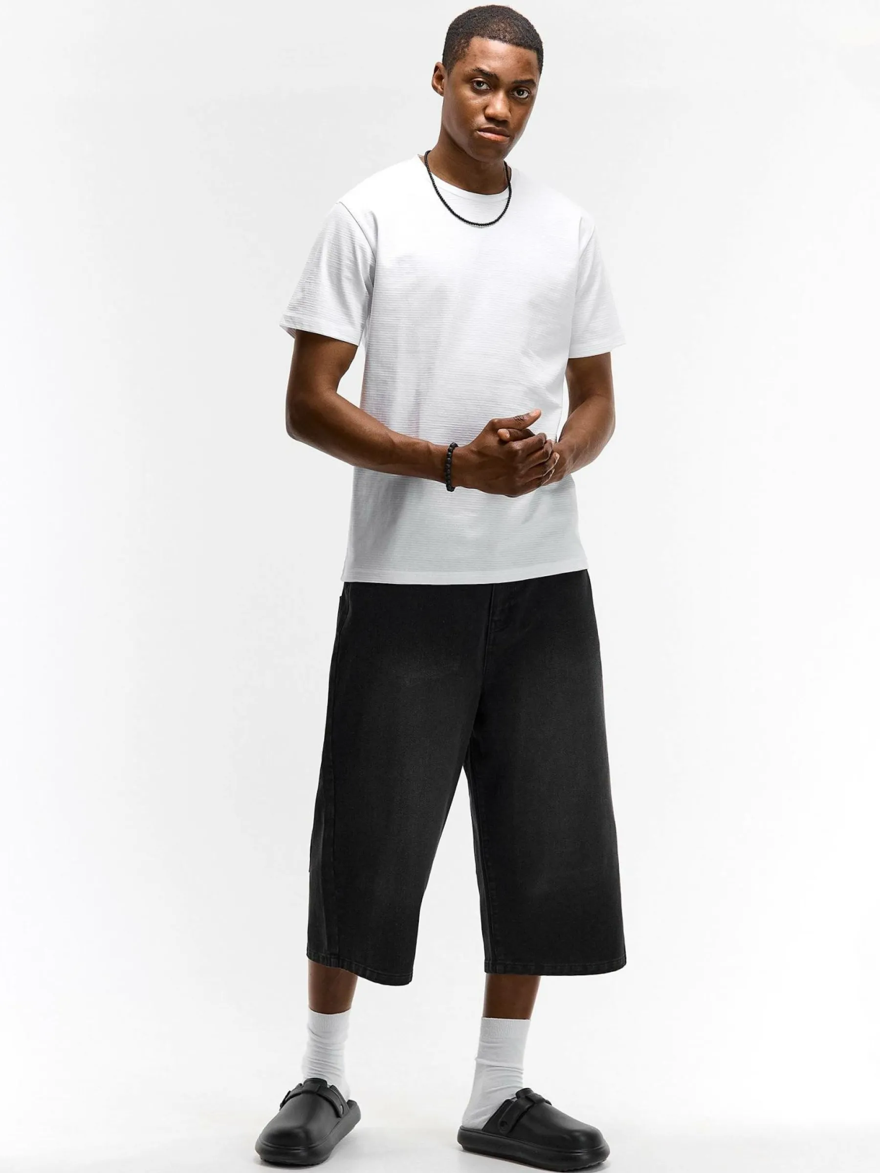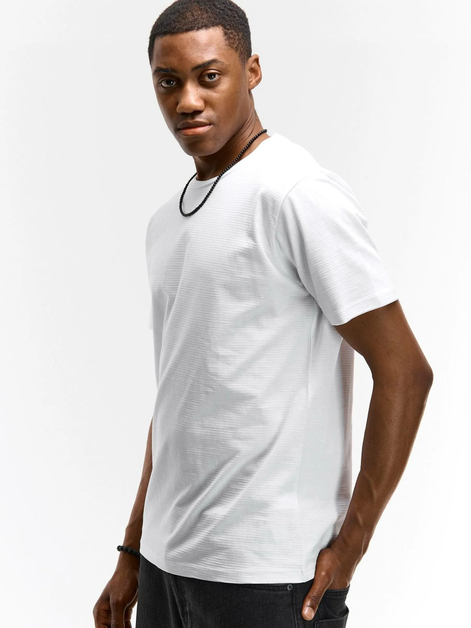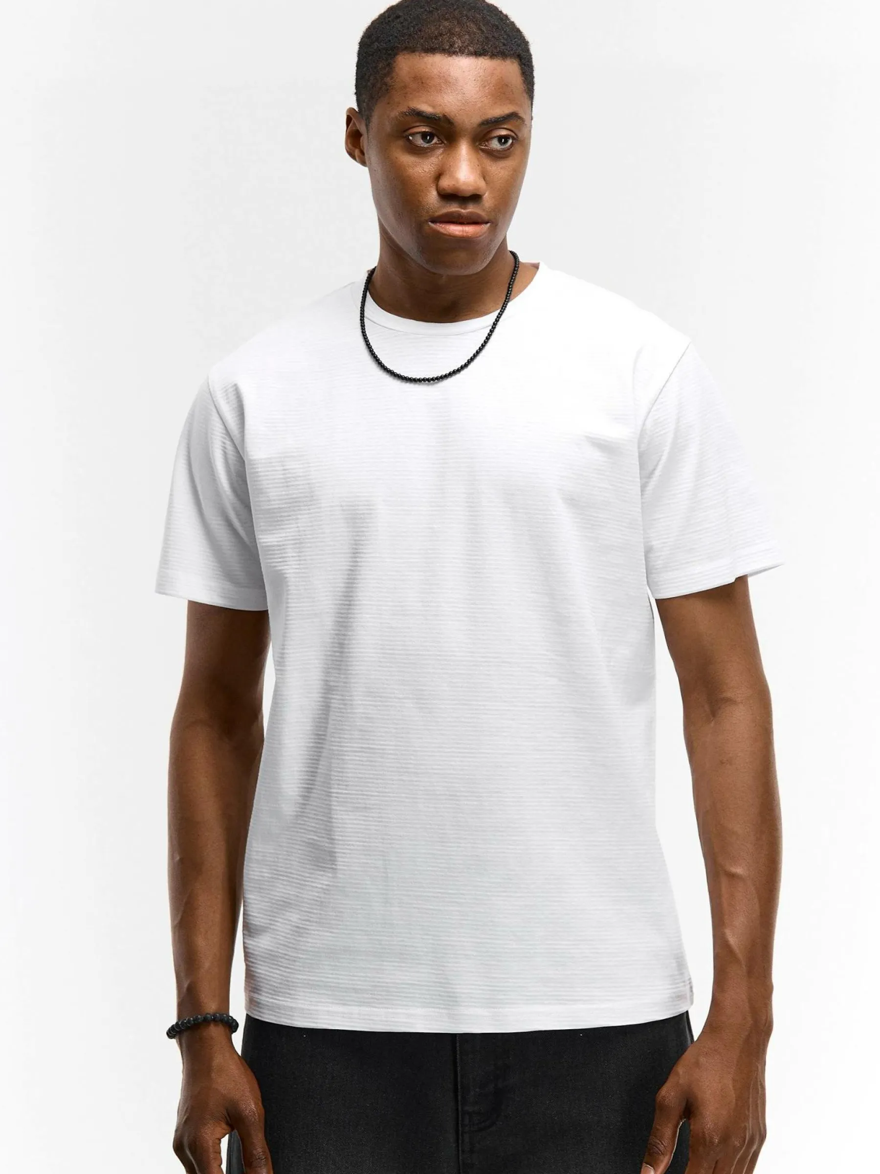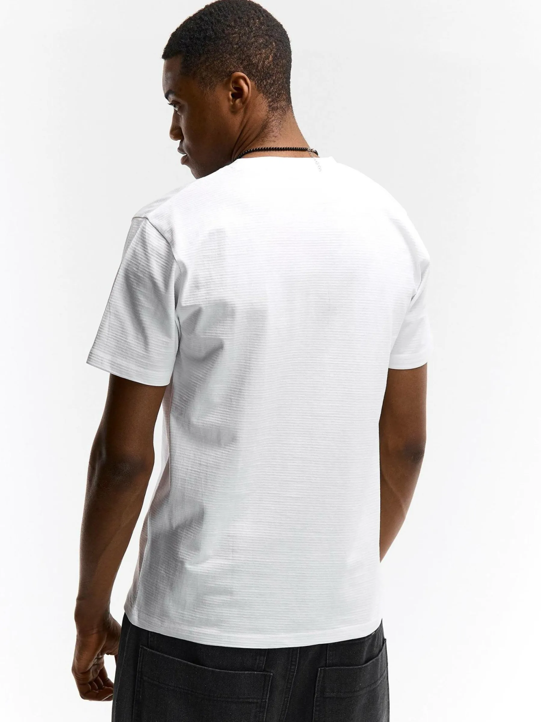 Kolor: białyKrój: regularTyp: koszulkaRekaw: krótki rękawPattern style: pojedynczy kolor, żebrowanyDetal: nad głow…