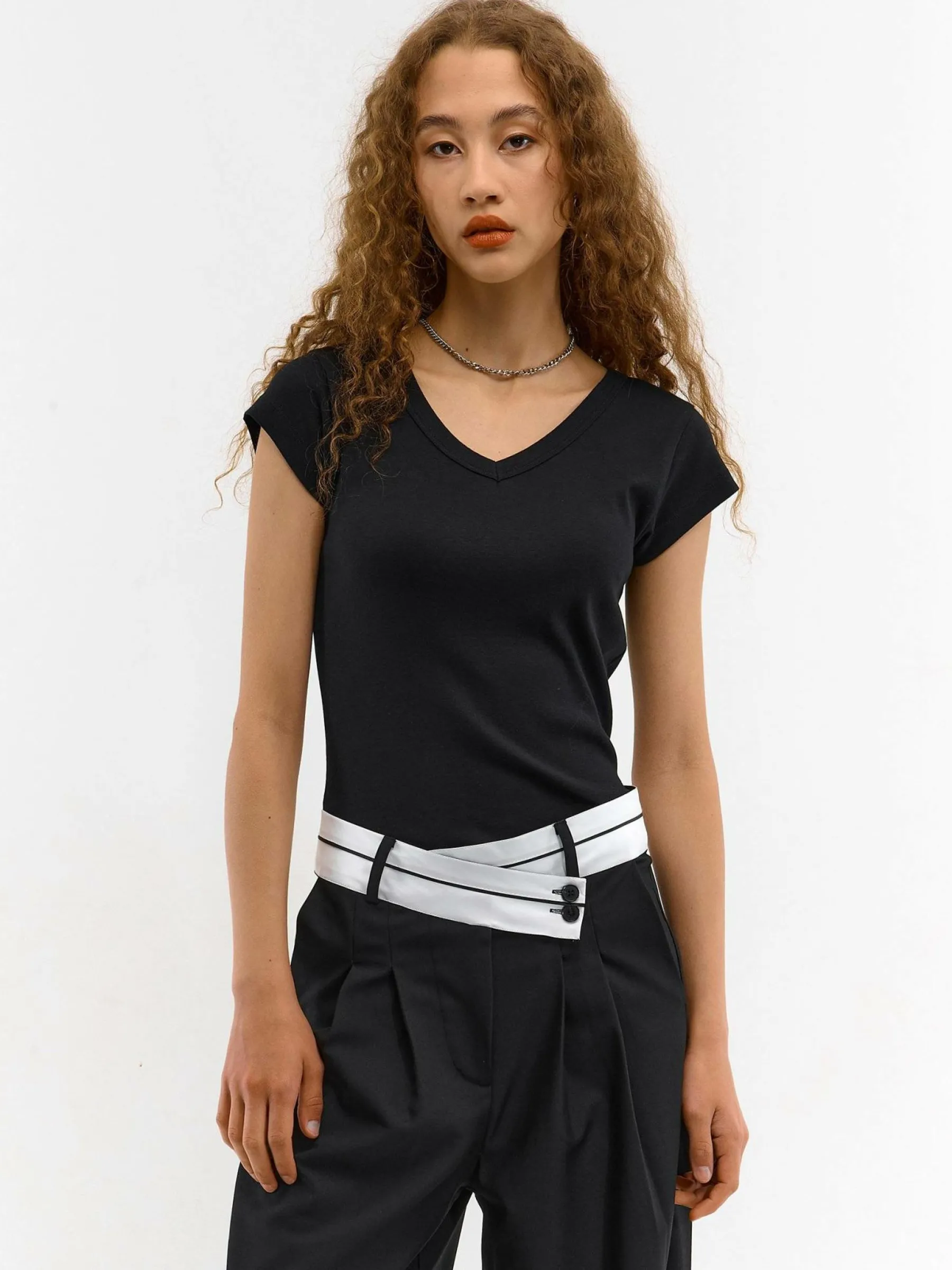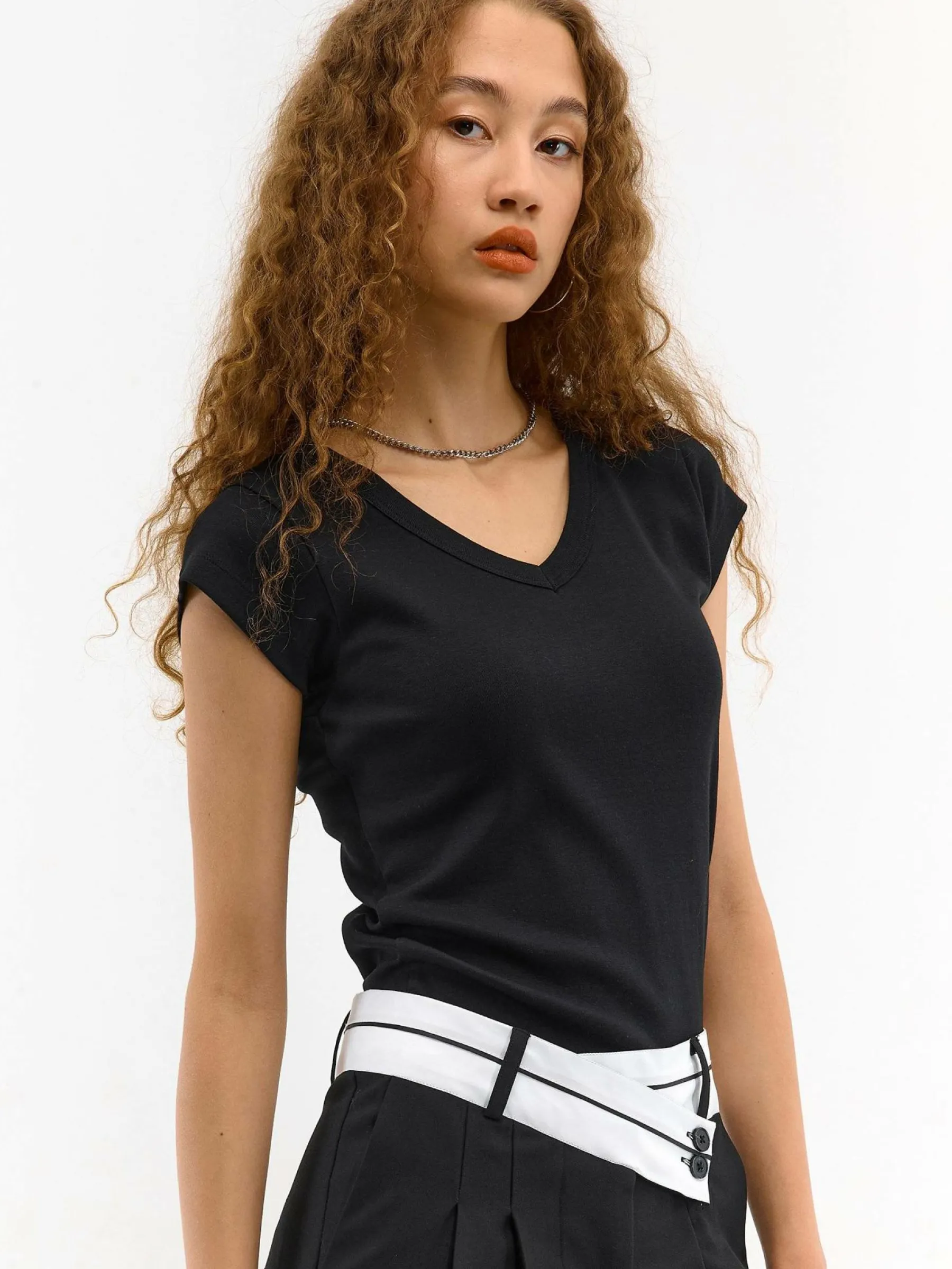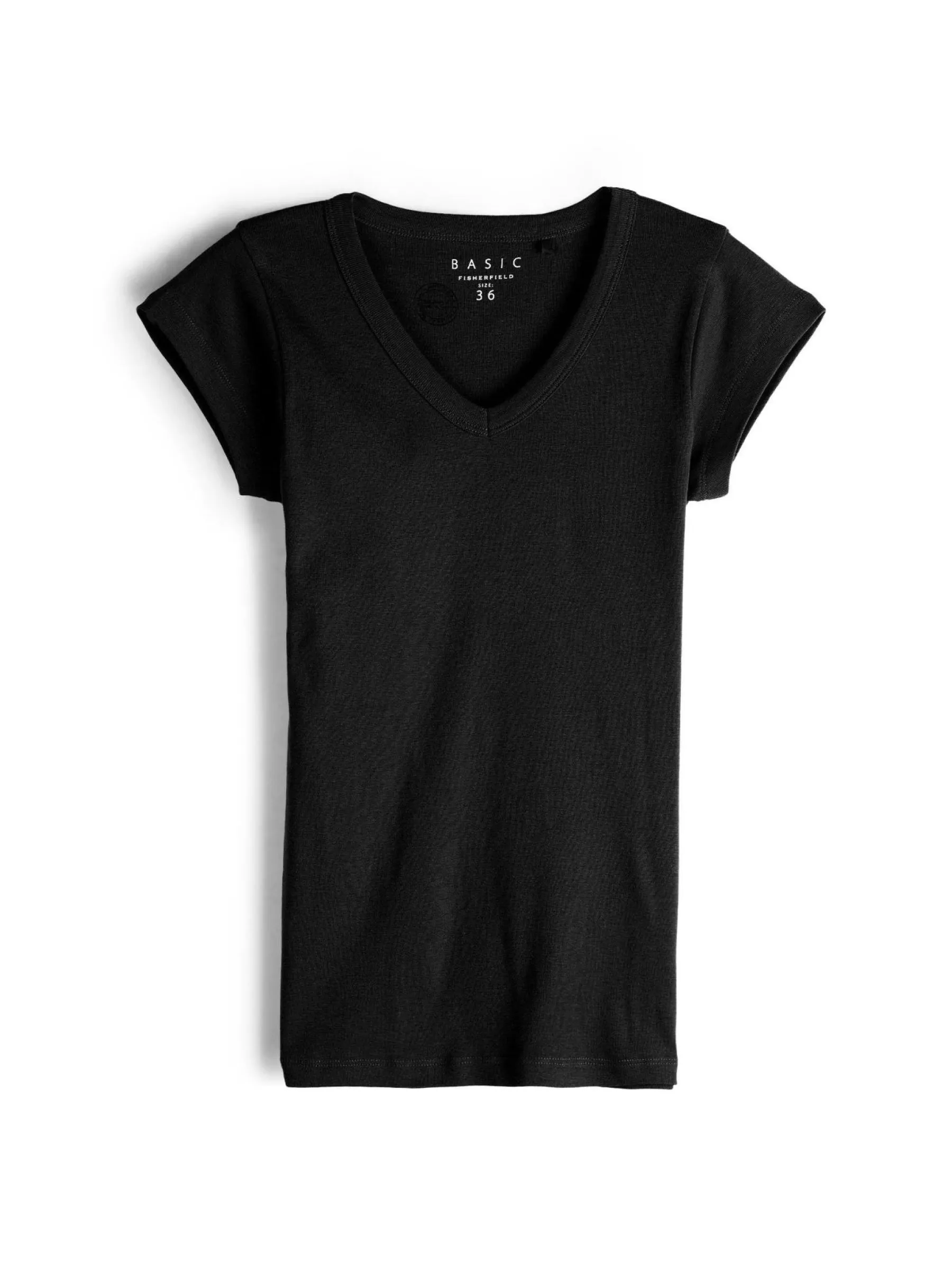 Kolor: czarnyKrój: regularTyp: koszulkaRekaw: krótki rękawDługość: krótkiPattern style: pojedynczy kolorDetal: v-…