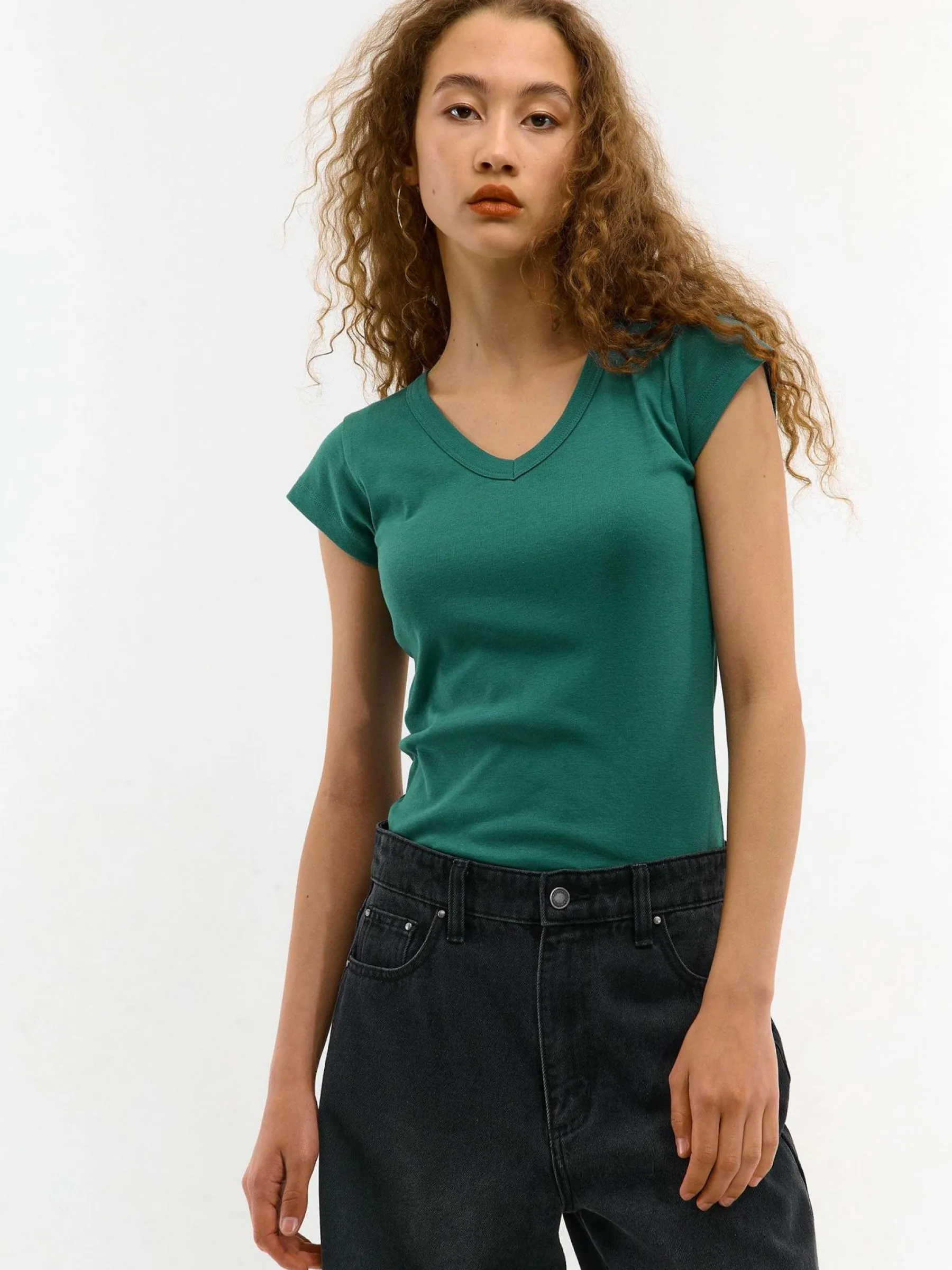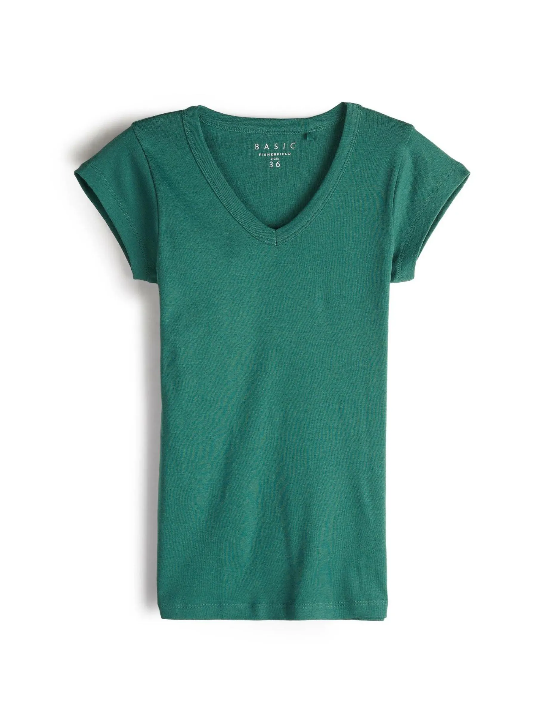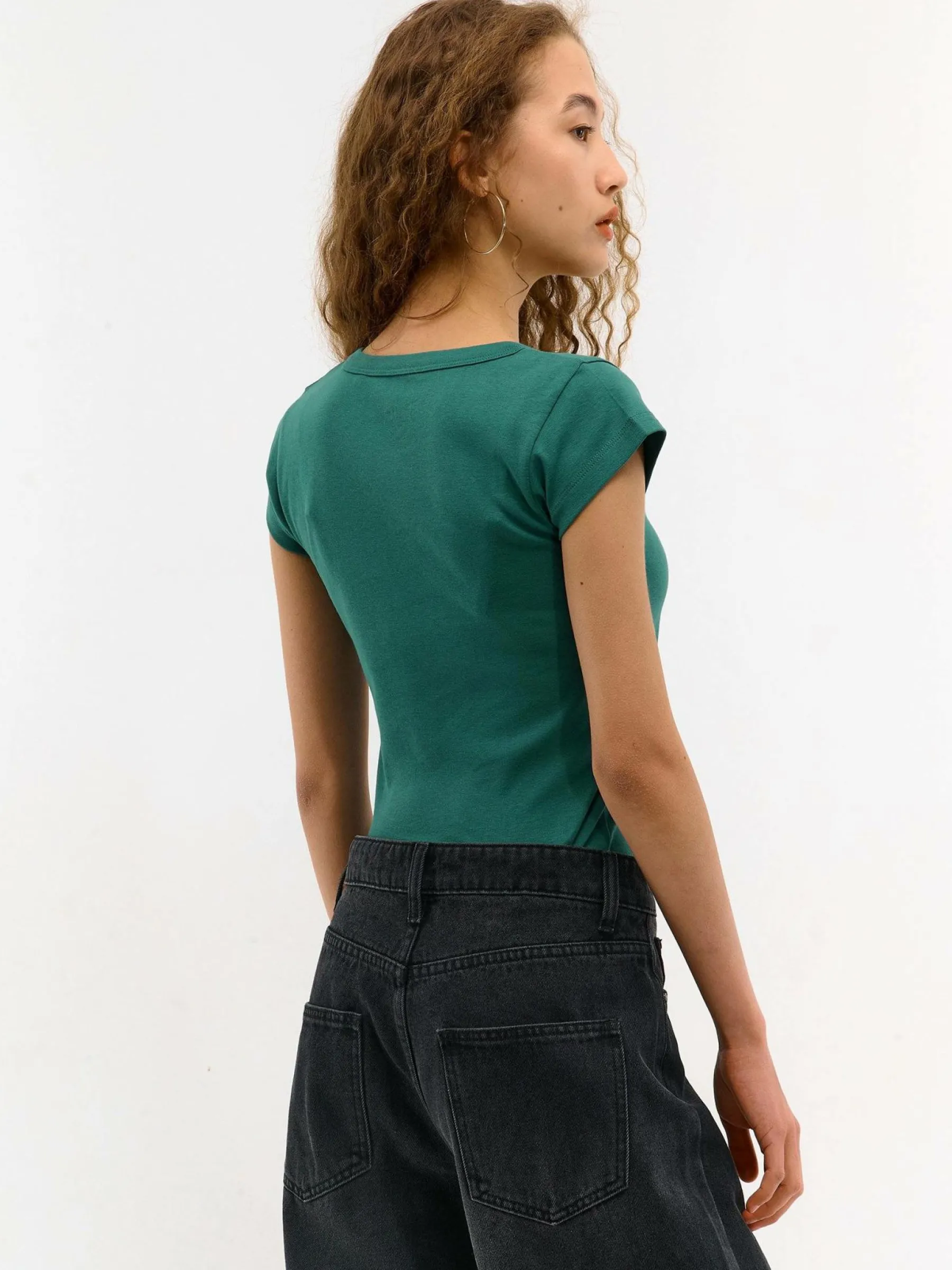 Kolor: zielonyKrój: regularTyp: koszulkaRekaw: krótki rękawDługość: krótkiPattern style: pojedynczy kolorDetal: v…