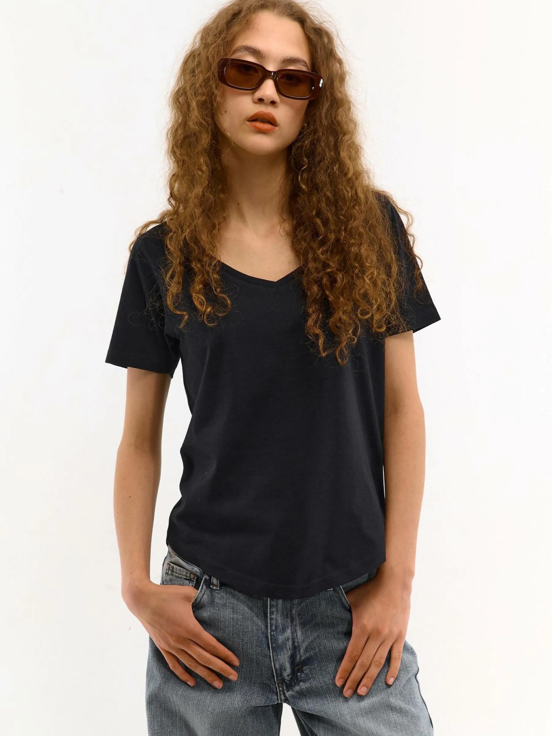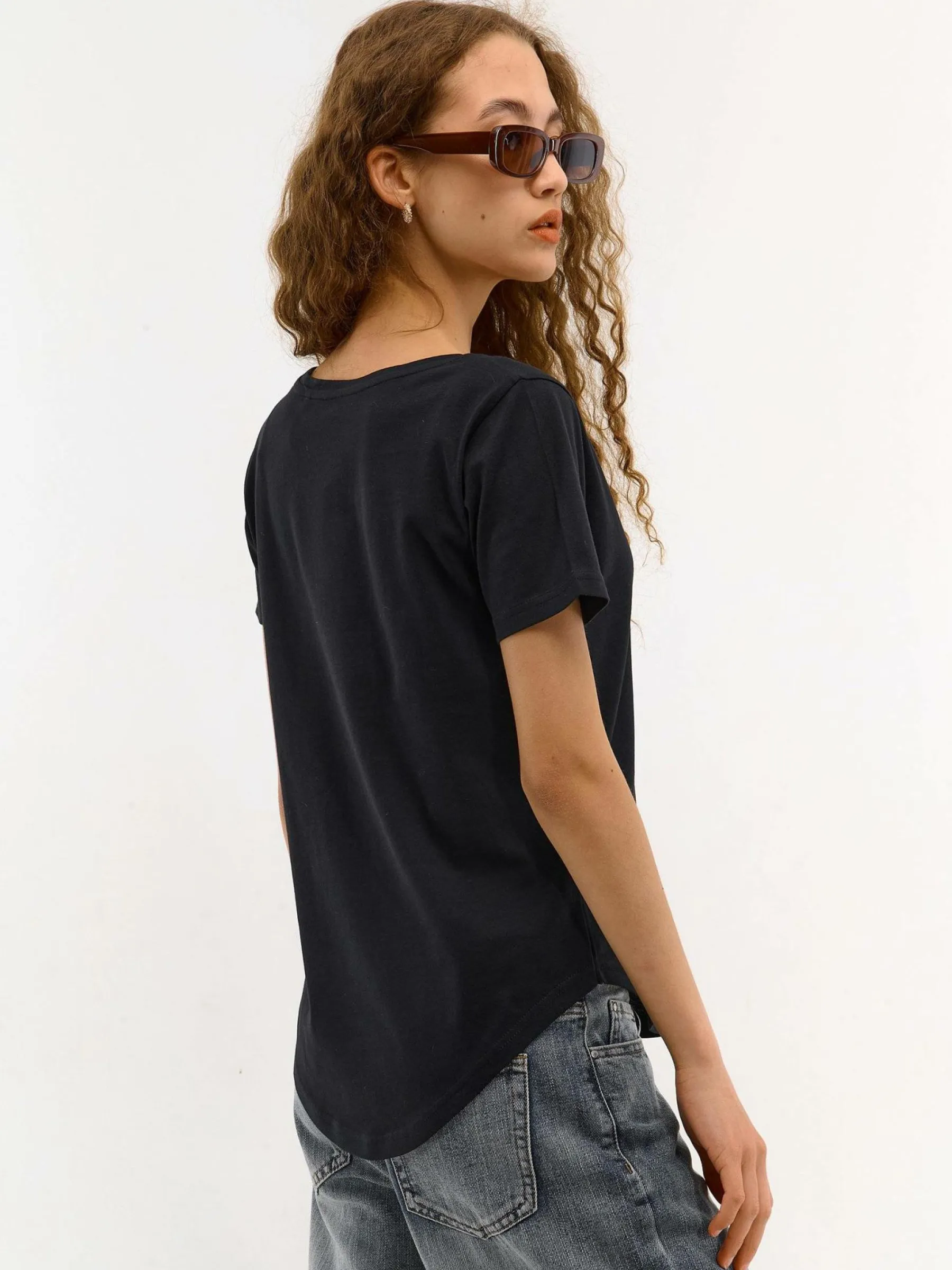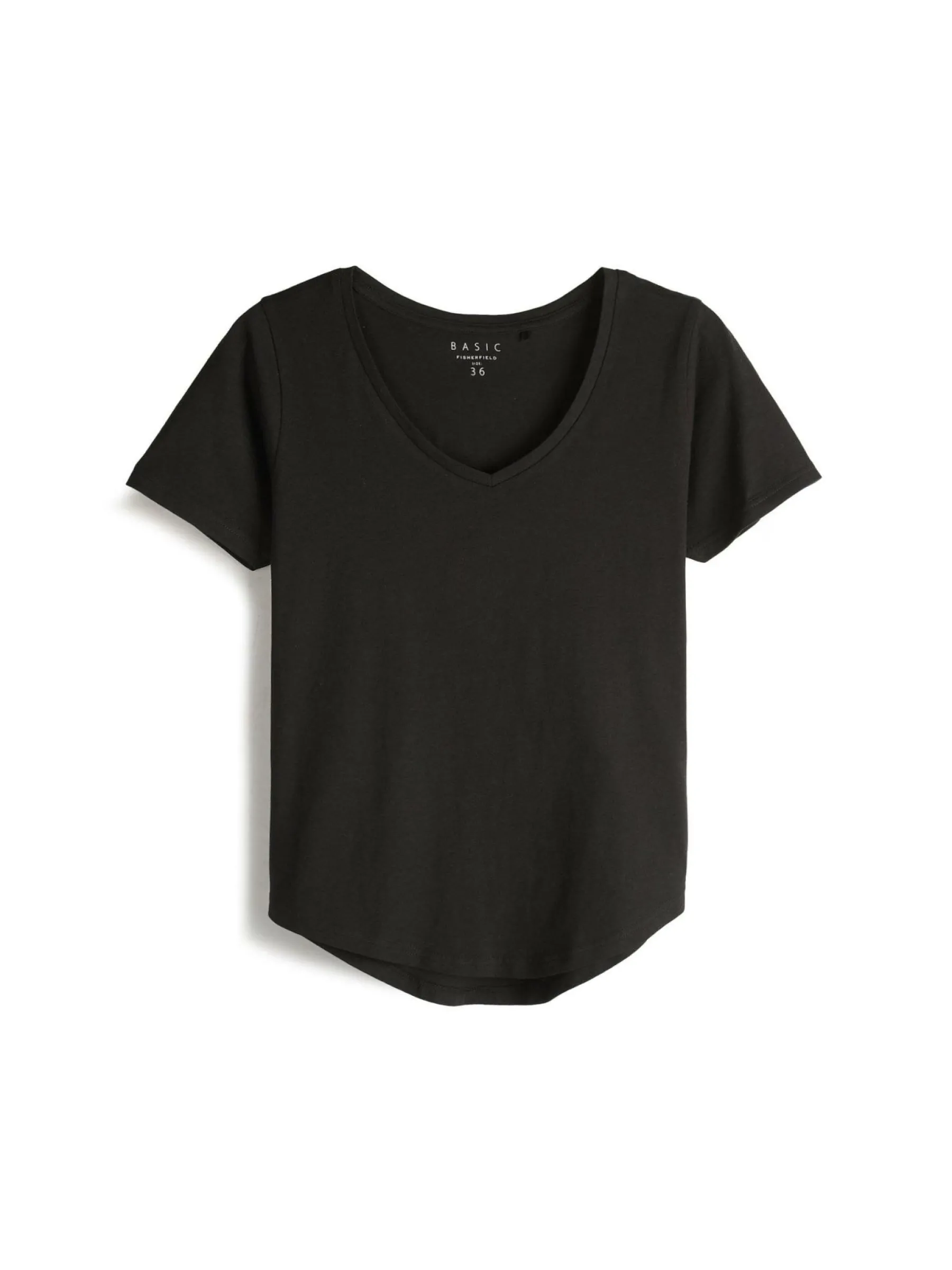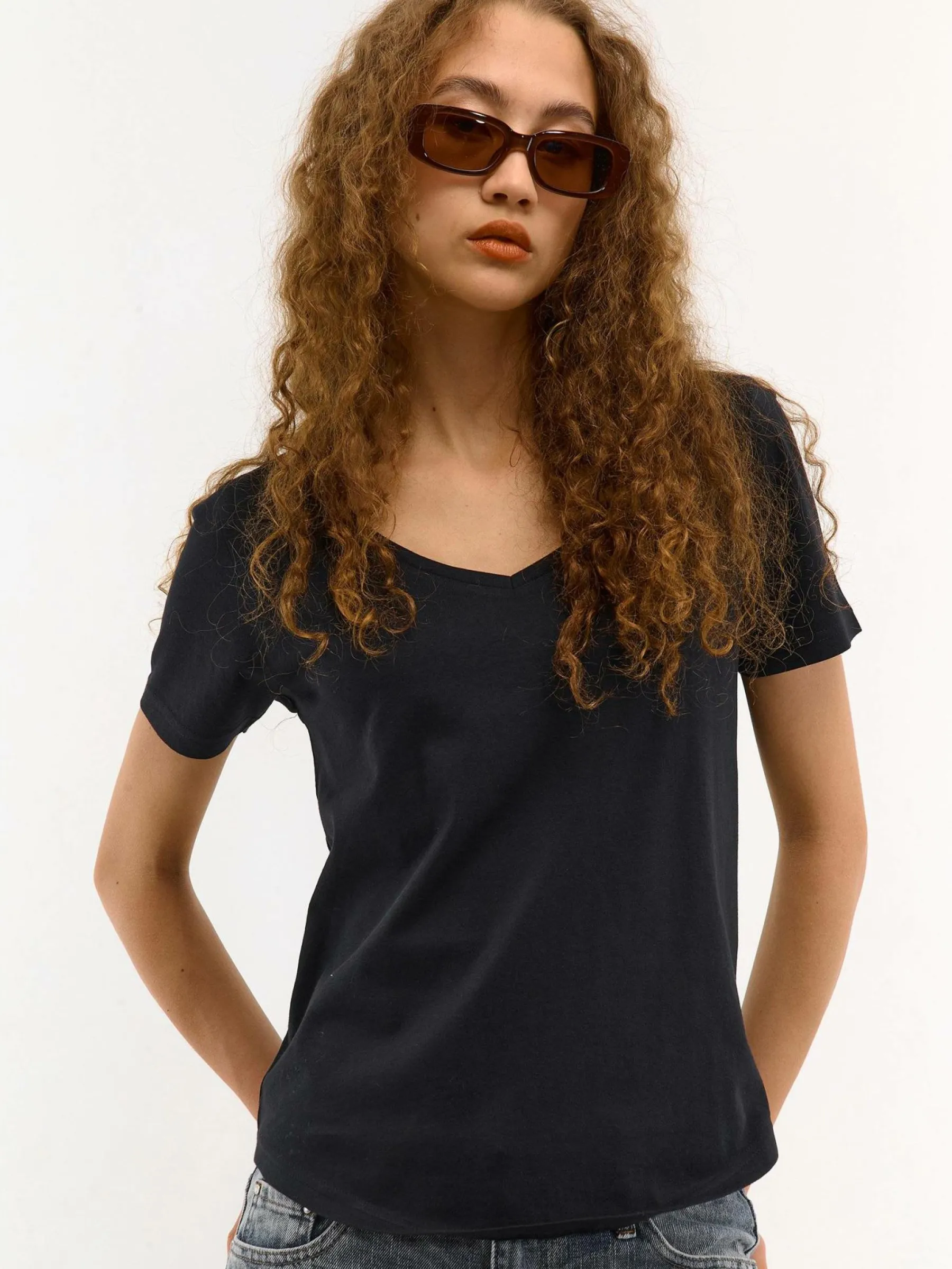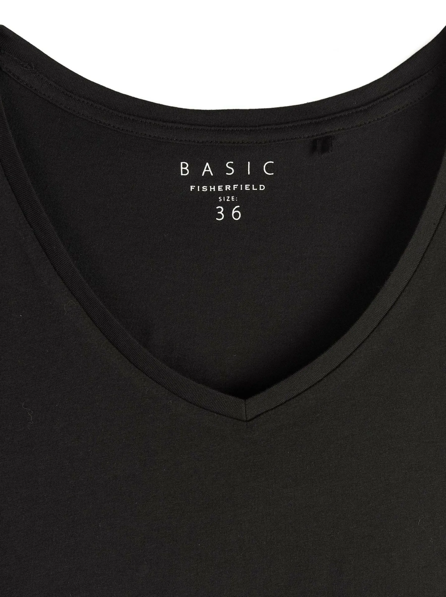 Kolor: czarnyKrój: regularTyp: koszulkaRekaw: krótki rękawDługość: krótkiPattern style: pojedynczy kolorDetal: v-…