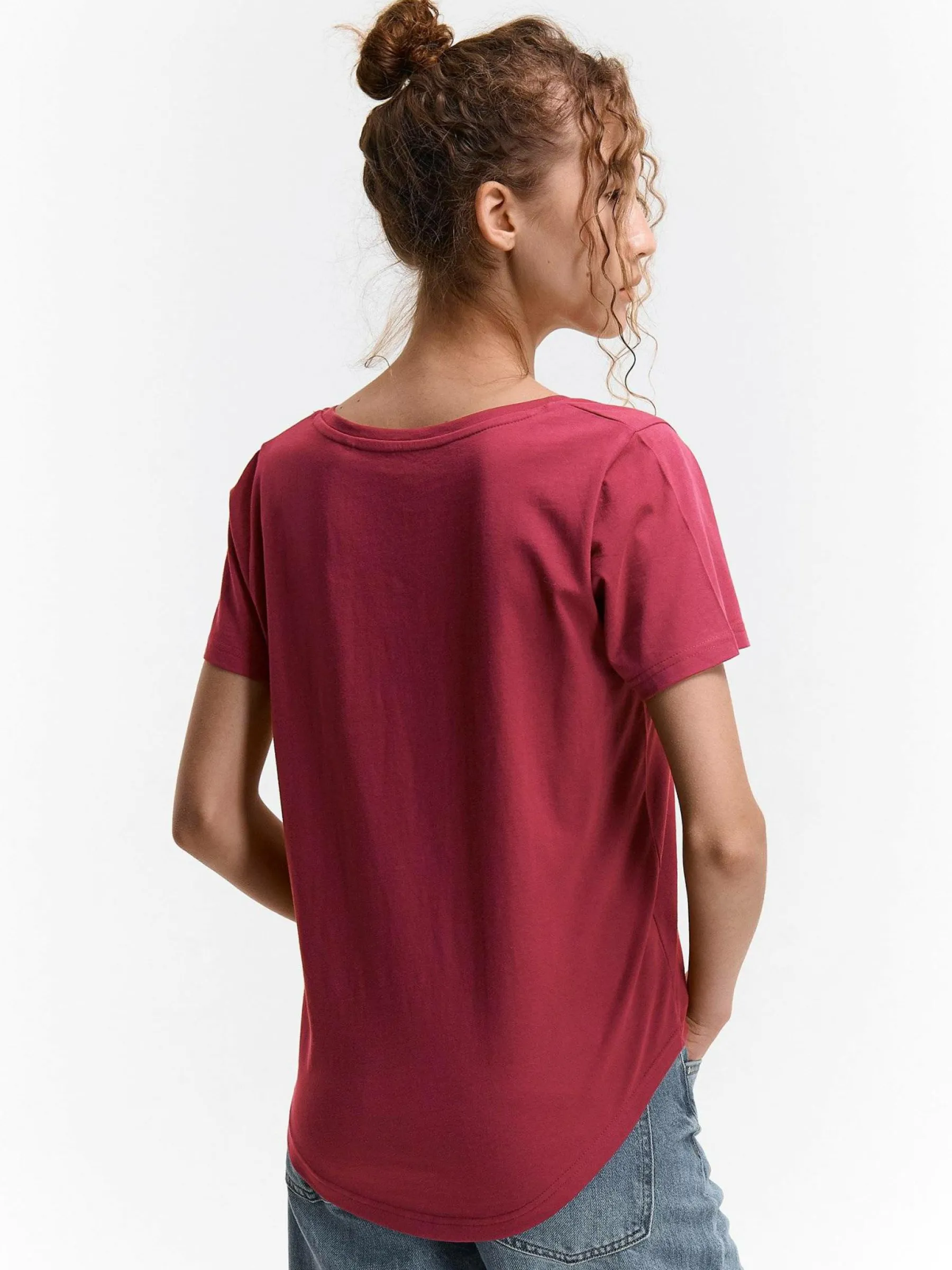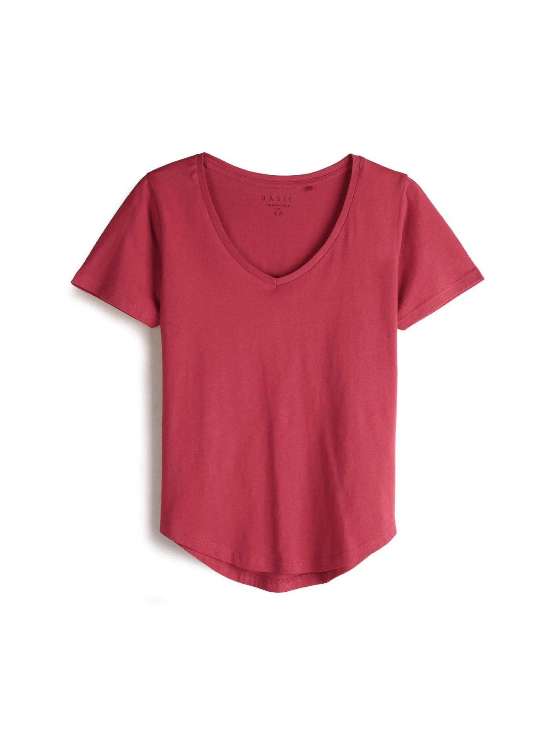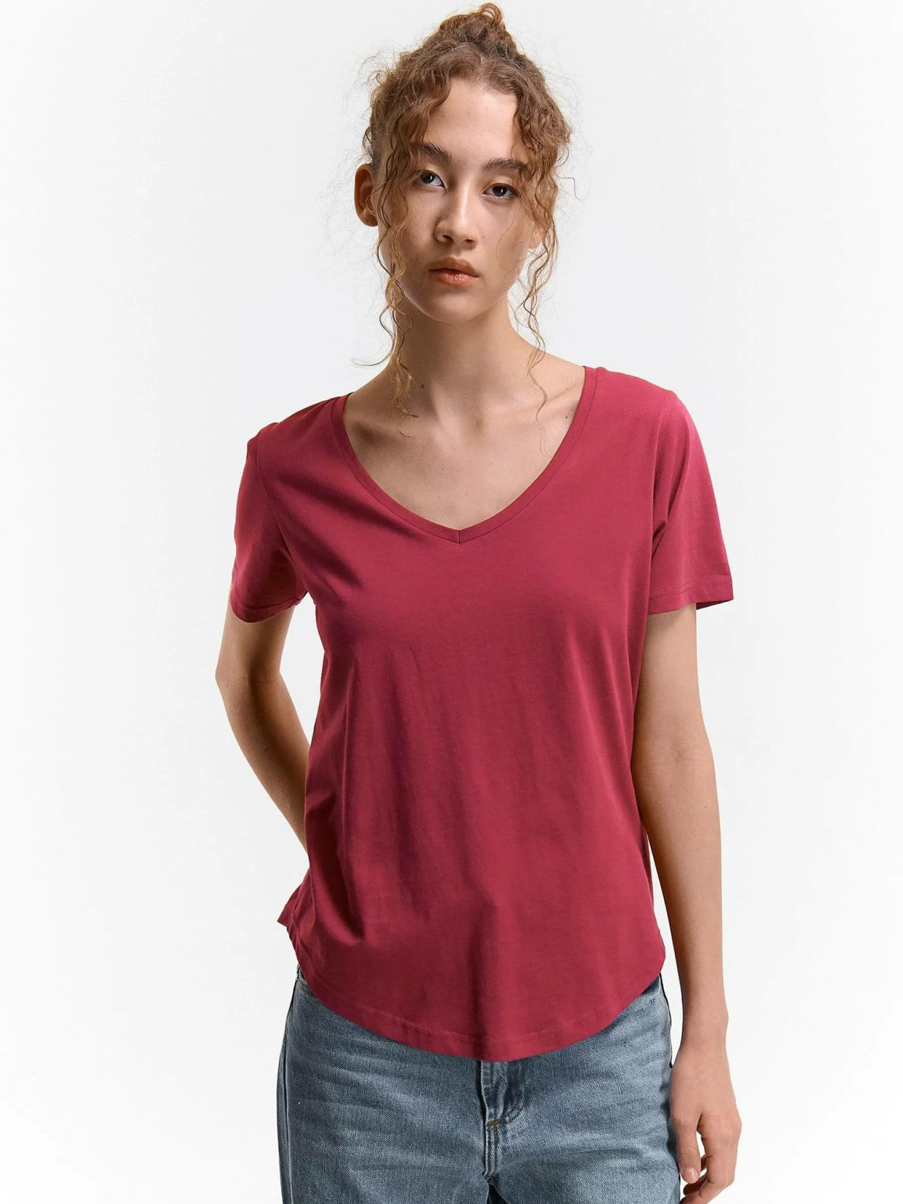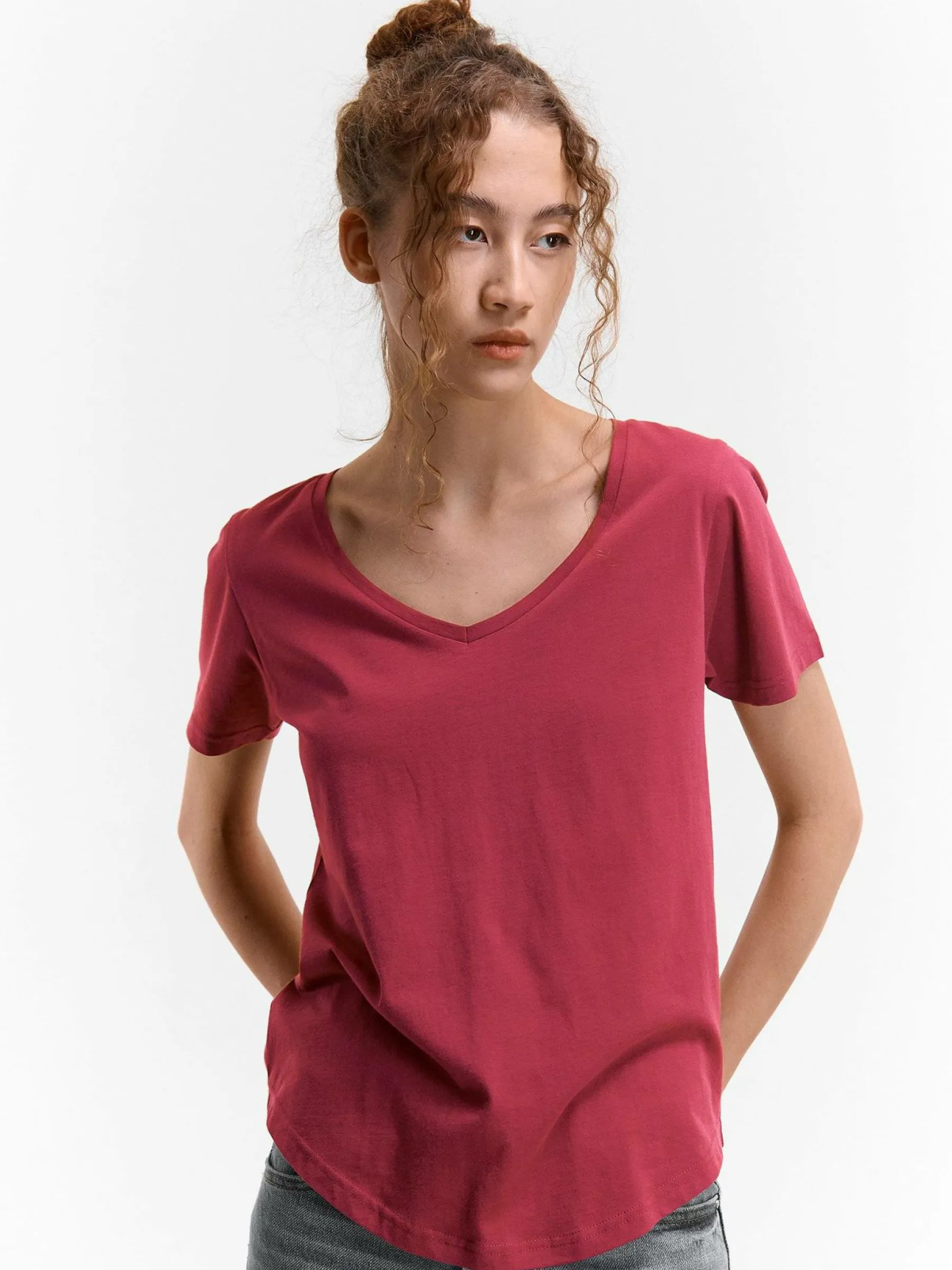 Kolor: burgundyKrój: regularTyp: koszulkaRekaw: krótki rękawDługość: krótkiPattern style: pojedynczy kolorDetal: …